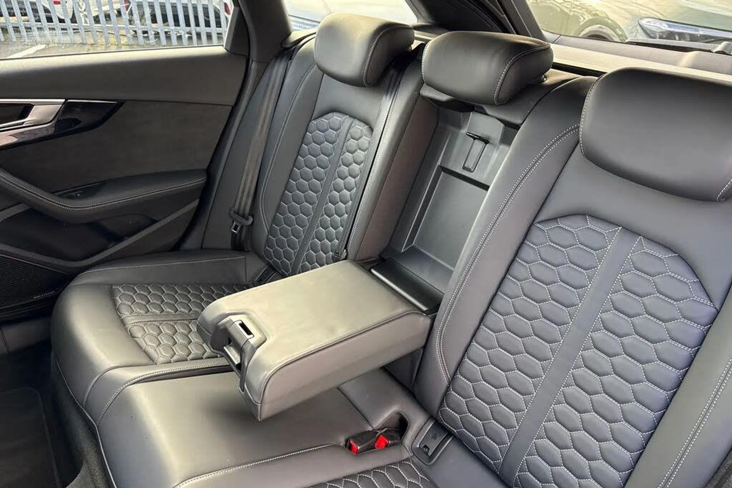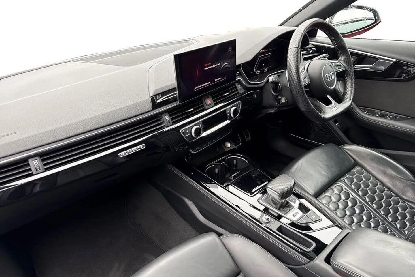 360? camera,Head-up display,Black Styling Pack,Driver Assistance Pack - Tour,City Pack,Red Brake Calipers,Camera and/or distance sensor (driver assistance system),Extended LED Interior Lighting Pack - multi-coloured,Camera-based traffic sign recognition,Vorsprung pack,Special control I/VP,RS Sport exhaust system,Disk brakes - rear,Disk brakes in front,Dynamic steering,RS sport suspension plus with dynamic ride control (DRC),Panoramic glass sunroof,Black roof rails,Heated front and outer rear seats,Advanced key,Audi rings and lettering glossy black,20" x 9.0J '5-segment-spoke Evo style' design Audi Sport alloy wheels in matt titanium look - high sheen finish with 275/30 R 20 tyres ,Front lip spoiler in high-gloss black,Inlays - Piano finish - black,Black door mirrors,Audi Active Lane Assist,Top speed restriction increase to 174mph*,Audi Pre-sense Rear,Park assist,Adaptive Cruise Control with Stop&Go and Traffic-jam assist,Two additional USB ports for rear passengers in the rear center console,Bang & Olufsen 3D Sound System,Equipment options subset for Great Britain