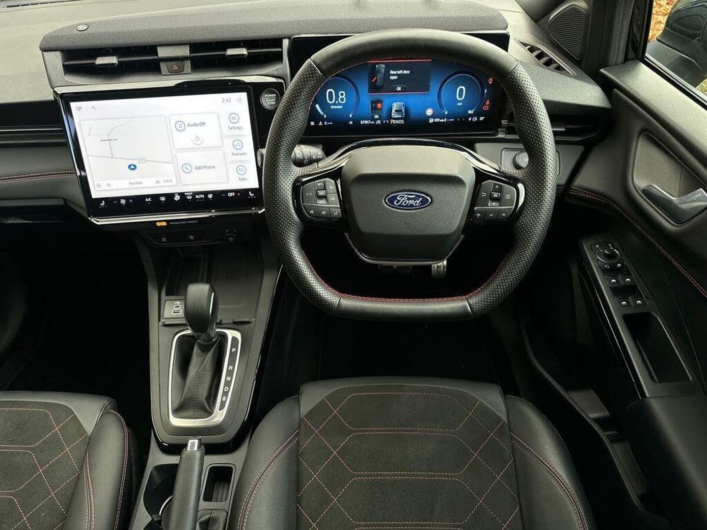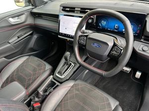 12in Landscape Touchscreen Display - Wireless Apple CarPlay and Android Auto - Premium B&O Audio System 10 Speakers - Ford SYNC Navigation - FordPass Connect and Emergency Assist, 18in Alloy Wheels - Machined Finish - Absolute Black, ABS - Anti-lock Braking System, Airbags - Driver and Front Passenger, Automatic Headlights with Rain-Sensing Wipers and Auto High Beam, Cruise Control with Intelligent Speed Assist, Drivers Manual 4-Way Seat Adjustment with Manual Lumbar Adjust, Electric Windows - Front and Rear, Electronic Automatic Temperature Control - EATC, Ford Keyfree System - Keyless Entry with Ford Power Starter Button, Ford MegaBox Extended Bootspace, Instrument Cluster - 12.8 Full Digital, LED Headlights with Daytime Running Lights, LED Rear Lights, Lane Keeping Aid with Lane Departure Warning, Passenger 4-Way Seat with Lumbar Adjustment, Power Lift Tailgate, Power Steering, Power-Foldable Heated Door Mirrors with Puddle Lamps and Puma Logo Projection, Pre-Collision Assist with Autonomous Emergency Braking and Pedestrian-Cyclist Detection, Privacy Glass - Rear, Quickclear Heated Windscreen, Rear View Camera with Rear Parking Sensors, ST-Line Body Styling Kit with Unique Grille and Large Body Colour Rear Spoiler, Selectable Driving Modes - Normal - Eco - Sport - Slippery and Trail, Sports Suspension, Tyre Inflation Kit, Wireless Charging Pad, Winter Pack, Premium Synthetic Leather - Synthetic Suede Inserts - Red Stitching - Black