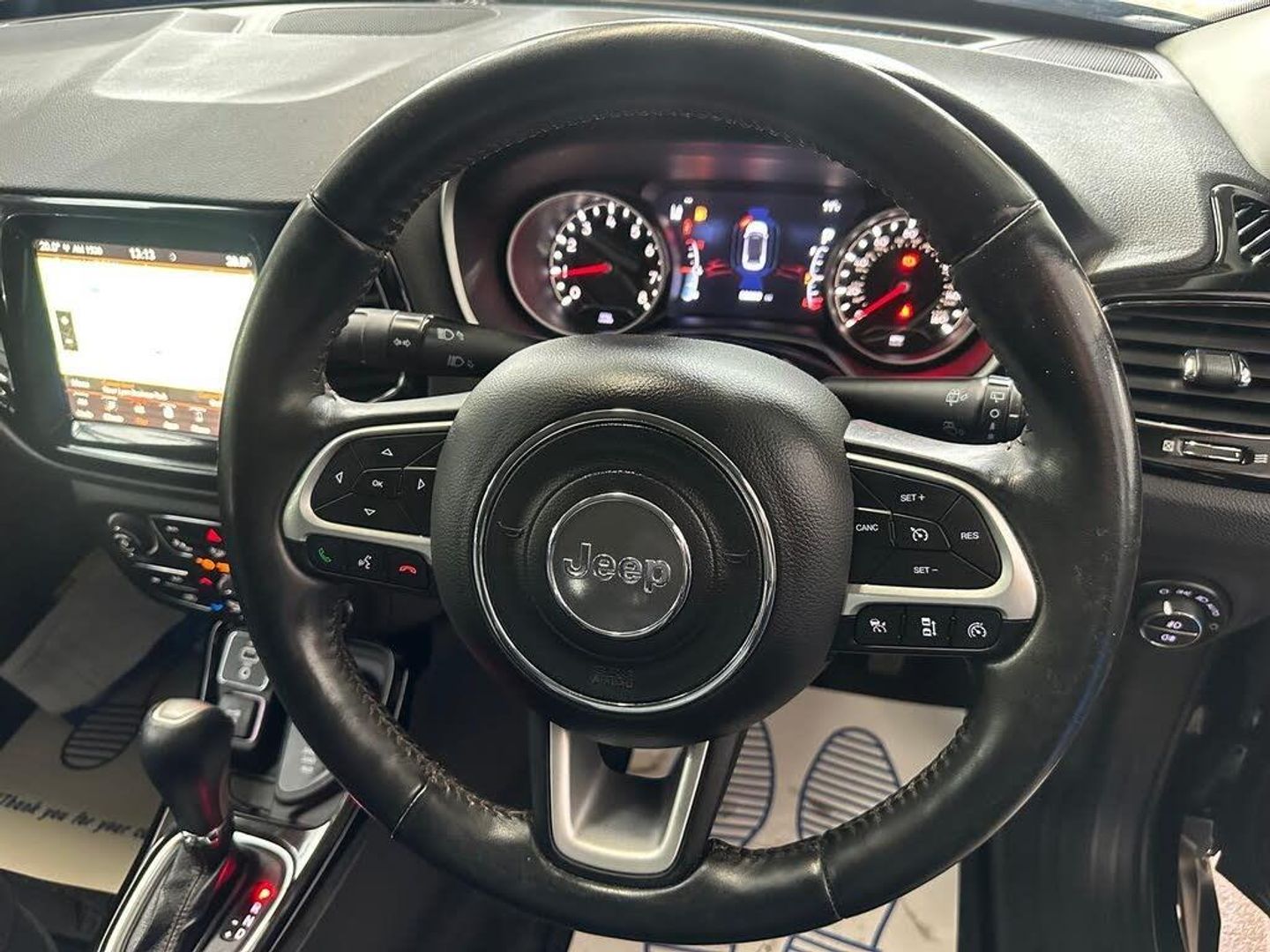 12V Auxiliary Power Outlet - Front, 18in Alloy Wheels - Silver and Tech Grey, 230v Auxiliary Power Outlet, 60-40 Rear Seat with Trunk Pass-Thru, Active Speed Limiting Device, Advanced Brake Assist, Airbags - Advanced Multistage Front - Front Side and Side Curtain Front and Rear, Alarm - Premium, All Speed Traction Control, All-Weather Floor Mats with Jeep Logo, Ambient LED Interior Lighting, Anti Lock 4 Wheels Disc Brake - ABS, Apple CarPlay and Android Auto Integration, Auto Dimming Rear View Mirror, Autonomous Emergency Braking, Auxiliary 12v Power Outlet In Cargo Area, Beats Audio 9-Speaker System, Black Roof Rails with Chrome Inserts, Black and Chrome Front Grille, Blind Spot Monitoring and Cross-Path Detection, Body Colour Exterior Mirrors, Body Coloured Door Handles, Child Seat Anchor System, Chrome Exterior Accents, Chrome Window Surrounds, Cruise Control, Deep Tint Sunscreen Glass, Door Mirrors - Power Folding, Dual Zone Climate Control, ERM - Electronic Roll Mitigation, ESC - Electronic Stability Control, Electric Power Steering, Electronic Park Brake, Exhaust Tailpipes - Chrome, Exterior Door Mirrors with Courtesy Lamps, Fog Lamp Bezels - Chrome, Forward Collision Warning Plus, Front Fog Lights with Cornering Lights, Front Height-Adjust Seatbelts, Front Passenger Forward Fold-Flat Seat and Storage Under Passenger Seat, Halogen Projector Headlamps, Heated Front Seats, Heated Steering Wheel, Hill Start Assist, Immobiliser, Instrument Cluster - 7in TFT Colour Display, Keyless Enter-N-Go, LED Signature Lighting, LED Tail Lamps, Lane Departure Warning Plus, Leather Wrapped Steering Wheel, Parallel and Perpendicular Park Assist and Camera, ParkSense Front and Rear Park Assist System, ParkView Rear Back Up Camera, Power 8-Way Driver - Passenger Seats with Lumbar Adjust, Power Windows - Driver and Passenger Express Up and Down, Pretensioning Seatbelts, Rain Sensitive Windscreen Wipers, Rear Air-Conditioning and Heater Vents, Rear Axle Disconnect, Rear Door Child Protection Locks, Selec-Terrain System, Shift Indicator Warning Lamp, Steering Wheel - Mounted Audio Controls, Trailer Sway Damping - Control, Tyre Service Kit, Uconnect 8.4in DAB Radio with Touchscreen USB AUX Satellite Navigation and Bluetooth, Uconnect Live, Windshield Wiper De-Icer, Premium Pack, Style Pack, Visibility Pack, Ventilated Front Seats, Leather - Black with Tan Accent Stitching