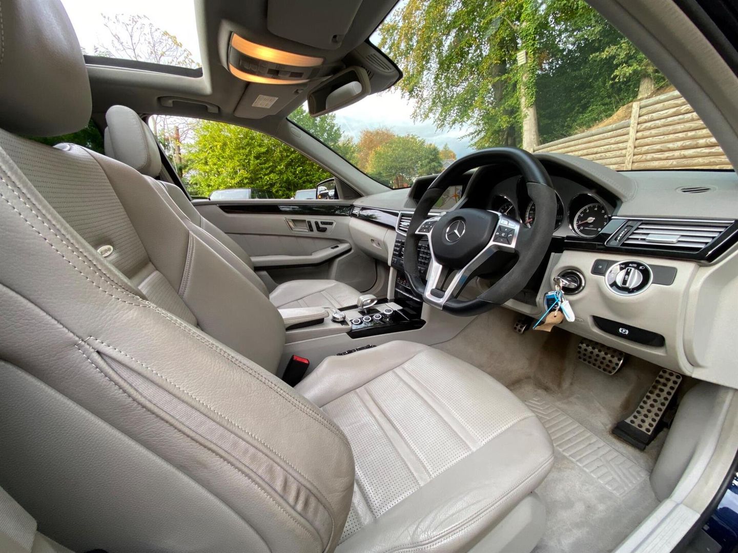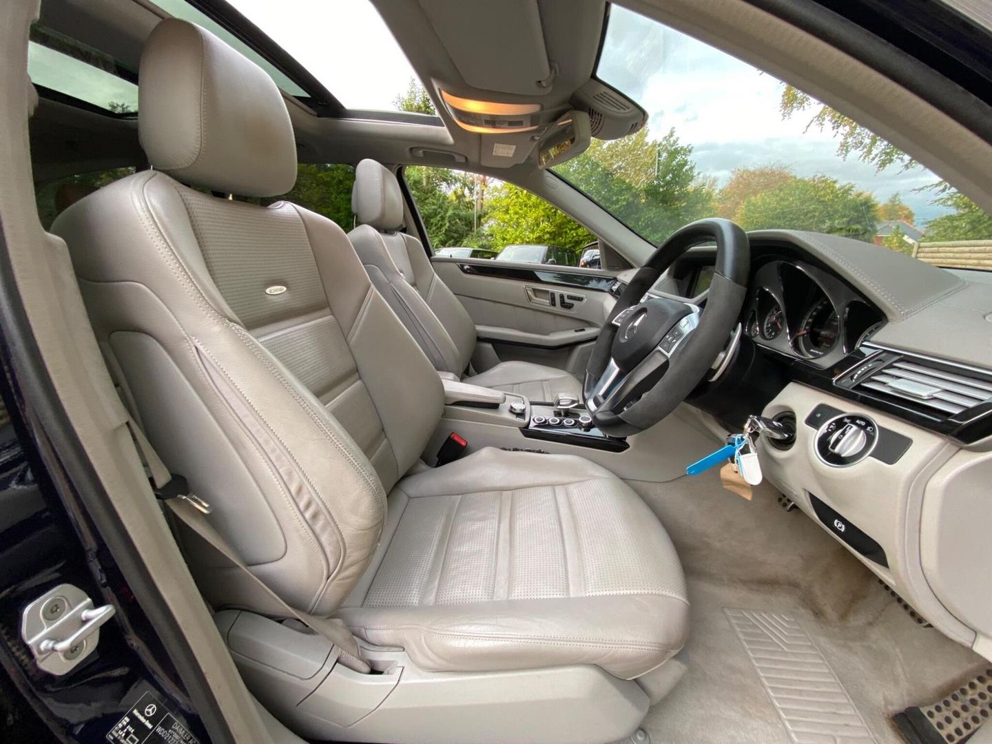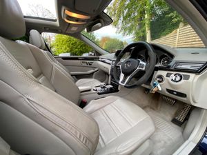 With a full Mercedes Benz service history, One former doctor owner and a factory options list worth over £12K, this 2012 Mercedes Benz E Class E63 V8 AMG presents a compelling proposition. This particular AMG model presented in metallic Cavansite blue with Designo Alpaca passion Nappa perforated leather electrically adjustable/heated/vented/massage/dynamic contour seats boasts a powerful 5.5 litre V8 petrol engine. For your convenience, it features the COMAND Online System with an integrated 6CD changer and telephone pre wiring with hands free facility.Factory optional extras are as follows; Driving Assistance Plus Package, Electric tilt/slide panoramic glass sunroof, Memory package, AMG Performance steering wheel, Front seat climate control, Dynamic seats, Universal Communications Interface, Designo headlining, Comand APS Navigation, DAB radio, Harman Kardon Sound System, Privacy glass, Comfort ventilated seats, Luxury climate control, Bluetooth interface, Light Package,The performance of this E Class is truly exceptional, achieving 0-60mph in a remarkable 4.4 seconds, a figure that sets it apart from many other vehicles in its class.The comprehensive service history, with the last service completed on 13th August 2025 at 116,161 miles with brake pads, AMG gearbox service carried out 14th August 2024 at 105,281 miles further underscores the care and attention this vehicle has received, offering peace of mind to its next owner.