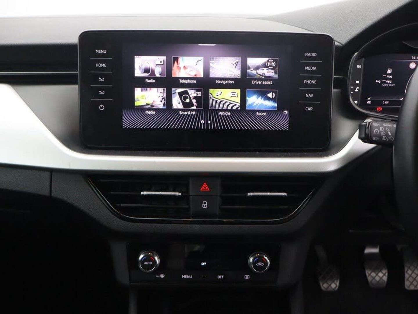 12V Socket on Central Console, 2 USB-C Ports, Bluetooth, Care Connect and Infotainment Online 1 Year, DAB Radio, e-Call, Satellite Navigation - Amundsen System, Skoda Proactive Services, Speakers x8, Wireless Smartlink for Apple CarPlay, 18in Alloy Wheels - Crator, Body Coloured Door Mirrors and Door Handles, Bumpers - Body Coloured, Chrome Moulding around Grille, Chrome Roof Rails with Chrome Window Surrounds, Electrically Adjustable Folding and Heated Door Mirrors, Front and Rear Electric Windows, Headlights - Range Adjustment, Heated Rear Windscreen, Privacy Glass, Rear Fog Lights, 2-Spoke Leather Multifunction Steering Wheel, Air Conditioning - Climate Control Dual Zone, Chrome Interior Door Handles, Front Centre Armrest, Gesture Control, Glove Compartment - Illuminated, Height Adjustable Driver and Front Passenger Seat - Manual, Keyless Start-Stop with SAFE System, Leather Gear Shift Lever, Light Sensors, Manual Lumbar Support for Front Seats, Manual Parking Brake, Overhead Glasses Storage Compartment, Reading Lights - Front and Rear, Seats - Front Passenger Height Adjustment, Silver Haptic Decorative Insert with Glossy Black Hot Stamping, Sun Visors with Illumination on Front Passenger Side, Third Rear Headrest, Virtual Cockpit, Basic LED Headlights with LED Daytime Running Lights, Black Magic, Microsuede - Black-Grey, Power Steering, Rear LED Lights with Dynamic Indicators - High Functionality, Speed Limiter, ABS - Anti-Lock Braking System, Airbags - Passenger Deactivation Switch, Alarm with SAFE Function for Central Locking, Cruise Control, Driver and Front Passenger Airbag, Front Assistant, HHC - Hill Hold Control, ISOFIX Child Seat Preparation - Front Passenger, ISOFIX Child Seat Preparation - Outer Rear, Lane Assistant, One Tone Horn, Rear Disc Brakes, Rear Parking Sensors, Seatbelt Reminder for Driver and Co-Driver, Side Airbags in Front with Curtain Airbags, Top Tether for Front Passenger Seat, TPMS - Tyre Pressure Monitoring System, Trip Computer - Black and White