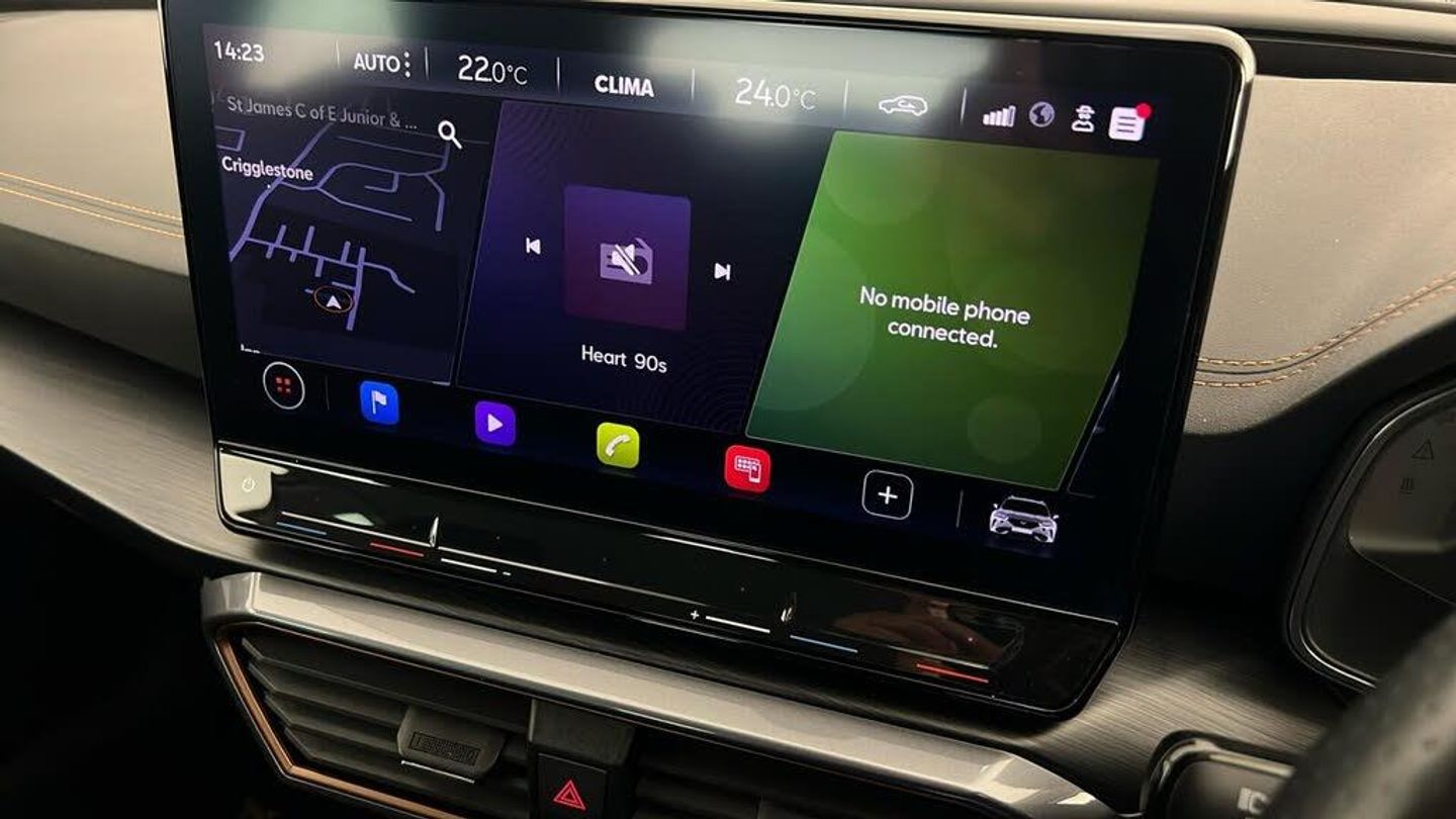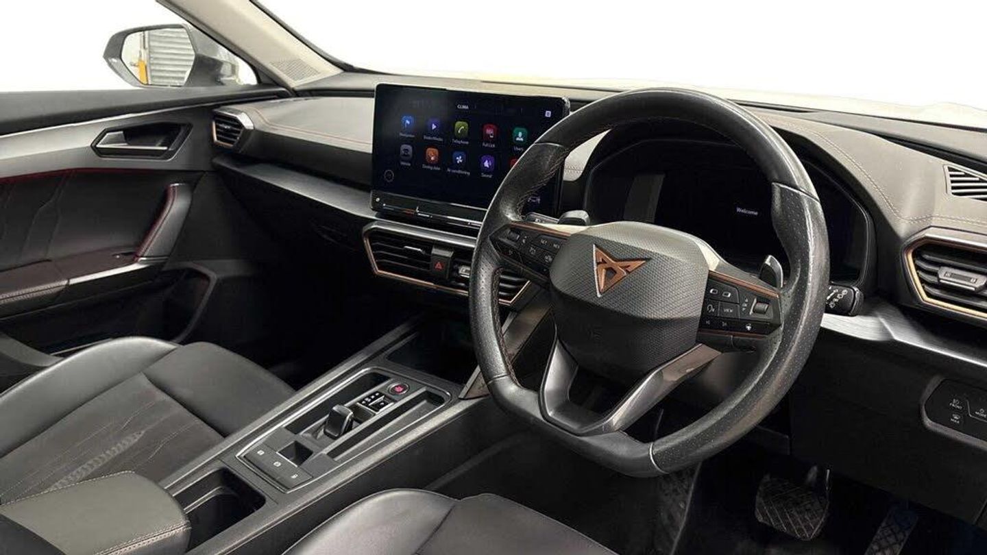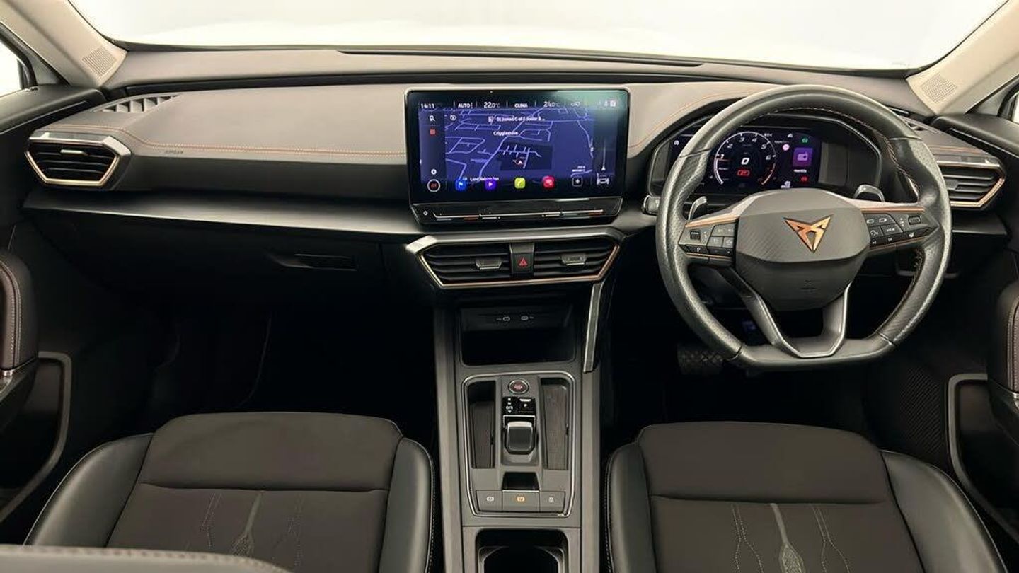 18in Alloy Wheels - Performance Machined Sport - Black and Silver, Digital Cockpit and Configurable Dashboard, Wireless Phone Charger, Tinted Rear Windows, Rear Parking Sensors, Navigation System, Lane Assist, 60-40 Rear Seats with Central Armrest and Mechanical Seat Release, ABS - Anti-Lock Braking System, Airbag on Driver and Front Passenger Side with Front Passenger Airbag Deactivation, Anti-Theft Alarm, Auto Dimming Rear View Mirror, Black Sports Seats with Copper Stitching, 12V Socket in Front, Breakdown Kit, CUPRA Connect - Safety - Service - Remote and Online, Copper and Aluminium Interior Detailing, Daytime Running Lights with Automatic Headlight Control and Coming-Leaving Home Lights, Door Mirrors Electrically Adjustable - Folding and Heated, Driver Alert System, Driving Profile Selection, Dynamic Headlight Range Control, Electric Window - Front, Electronic Locking Differential with Dynamic Traction Support, Electronic Parking Brake, Forward Collision Warning with Automatic Braking, Front Centre Armrest, Front Fog Lights with Cornering Function, Front Side Curtain Airbag, Front and Rear Head Restraints, Gloss Black Roof Rails and Window Surrounds, Headlining - Grey, ISOFIX, Illuminated Interior Front Door Sills, Illuminated Sunvisor with Mirror, Interior Ambient Lighting, Kessy - Keyless Entry and Start, LED Headlight, LED Taillights with Dynamic Indicator, Leather Multi-function Steering Wheel - Heated with Gear Shift Paddles, Leather Multifunction Steering Wheel, Locking Wheel Bolts, Manually Adjustable Height and Lumbar Support for Front Seats, Power Steering, Predictive Adaptive Cruise Control with Speed Limiter, Rain Sensing Wipers, Reading Lights - 2x Front - 2x Rear, Rear Diffuser with Black Simulated Exhaust Pipes, Safety and Driving Pack M, Seat Belt Reminder, Three Zone Climate Control with Control Panel in the Rear, Tyre Pressure Monitoring System, USB Type C x4 - x2 Front and x2 Rear, Variable Luggage Compartment Floor, Welcome Lights