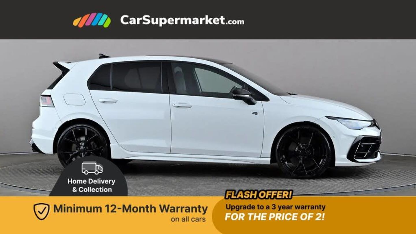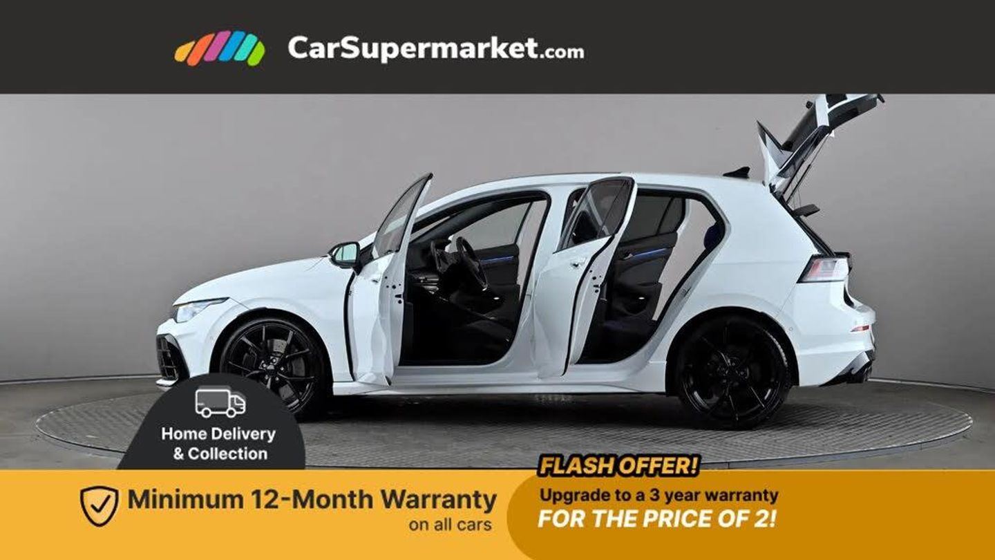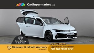 Activated carbon canister,Adaptive cruise control (ACC),Advanced driver attention and drowsiness monitor,Dynamic road sign display,E-Sim card for online connectivity,eCall emergency call system,Electronic maximum speed limit increased to 270 km/h, includes driving Modes 'drift' and 'special', larger roof spolier and GPS laptimer + G-Meter,Multi-color Digital cockpit pro, selection of different info profile possible,Multifunction front facing camera for distance control,Navigation system,Oncoming vehicle braking when turning including swerve support,Preparation for light assist system,Progressive steering,Side assist blind spot lane change system, rear traffic alert and exit warning system,Speed limiter,Speedo, rev counter, electronic odometer, trip, service interval display, exterior temperature and fuel gauge,Traffic jam assist,Voice enhancer and voice control,Warning signal and warning light for front and rear seatbelts not fastened,We connect plus preparation,We connect preparation,Wireless app connect,All wheel drive - 4Motion,Petrol Particulate Filter,Sports suspension,Start-stop system with battery regeneration (recuperation - energy recovery during braking),XDS electronic differential lock for improved traction and handling,2 USB C ports in front, 2 USB charging sockets on the centre console in the rear charging capacity upto 45W,Comfort telephony + wireless charging, without wireless aerial connection,Digital radio reception (DAB),Diversity antenna for FM reception,Gaming platform via car app,Infotainment system with 12.9" display,Mobile phone interface with inductive charging feature,3rd brake light,Auto dimming rear view mirror,Auto headlights,Automatic headlamp activation with Coming home and Leaving home feature,Black badge on B-pillar,Black mirror caps,Black strips on radiator grille and headlights,Body colour door handles,Darkened headlights,Darkened R Logos and VW logos in front, rear and on fender,Exhaust system with black tailpipe,Exterior ambient lighting with illuminated lighting animation and wake up/goodbye scenario,Exterior mirrors convex on the left and aspherical on the right,Front and rear electric windows,Front fog lamps and cornering light,Heat insulating windshield made of laminated glass,LED daytime running lights,LED matrix headlights with ambient light V2, advanced high beam, dynamic range contol with cornering, LED rear lamp with indicator, poor weather,R name plate,Rain sensor,Rear fog light on one side and reversing lights on both sides,Rear side wing doors,Rear tinted glass 65% light absorbing from B pillar backwards,Rear windscreen washer and wiper with interval delay,Remote electrically foldable door mirrors, puddle lights and reverse activated passenger's door mirror,Welcome light with surround lighting,12V socket in front centre console,12V socket in luggage compartment,3 rear head restraints,3 seat bench in 2nd row,30 colour ambient lighting, illuminated center console storage compartment in front,Air care climatronic 3 Zone automatic climate control with rear air conditioning control panel,Aluminium gearshift handle,Brushed stainless steel pedals,Front centre armrest,Integrated front head restraints,ISOFIX anchors for child seats on outer rear bench seats and on front passanger seat compatible for i-Size,Luggage compartment lighting,Rear cupholder and loadthough,Single front passenger seat,Soul black instrument panel,Split folding backrest with centre armrest and unsplit rear seat bench,Storm grey roof lining,Sun visors with illuminated vanity mirrors,Driver assistance pack - Golf DSG Estate/Hatchback,R styling pack - Golf,Technology park and comfort pro package - Golf Hatchback,3 point height adj front seatbelts + pretensioners,3 rear three point seatbelts,ABS,Autonomous emergency braking front assist with pedestrian and cyclist monitoring,Child locks on rear doors,Disc brakes in rear incl. brake calipers in black with darkened R-logo,Driver and front passenger airbag with front passenger airbag deactivation,Electronic parking brake with auto hold,ESC (Electronic Stability Control),Extended pedestrian protection measures,Hill start assist,Two tone horn,Tyre pressure loss indicator,Volkswagen roadside assistance,Anti theft wheel bolts,Preparation for alcohol interlock,Wheel hub cover with darkened R-logo,Pure White,Tilting and Sliding Panoramic Sunroof