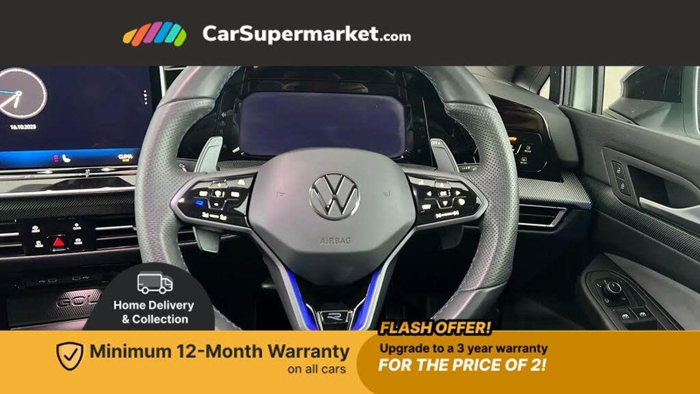 Cruise Control, Adaptive Cruise Control, Digital Cockpit, Sat Nav, Blind Spot Monitoring, Wireless Phone Charging, Digital Radio, Automatic Climate Control;This Volkswagen Golf TSI R Black Edition, registered in 2025, boasts a pristine history with only one owner and an MOT valid until March 2028, ensuring peace of mind. This striking R Black Edition variant is powered by a potent 2.0 litre petrol engine, delivering exhilarating performance through its four wheel drive system. Experience the thrill of rapid acceleration, reaching 0 to 62 miles per hour in an impressive 4.6 seconds, a figure that sets it apart from many others in its class.