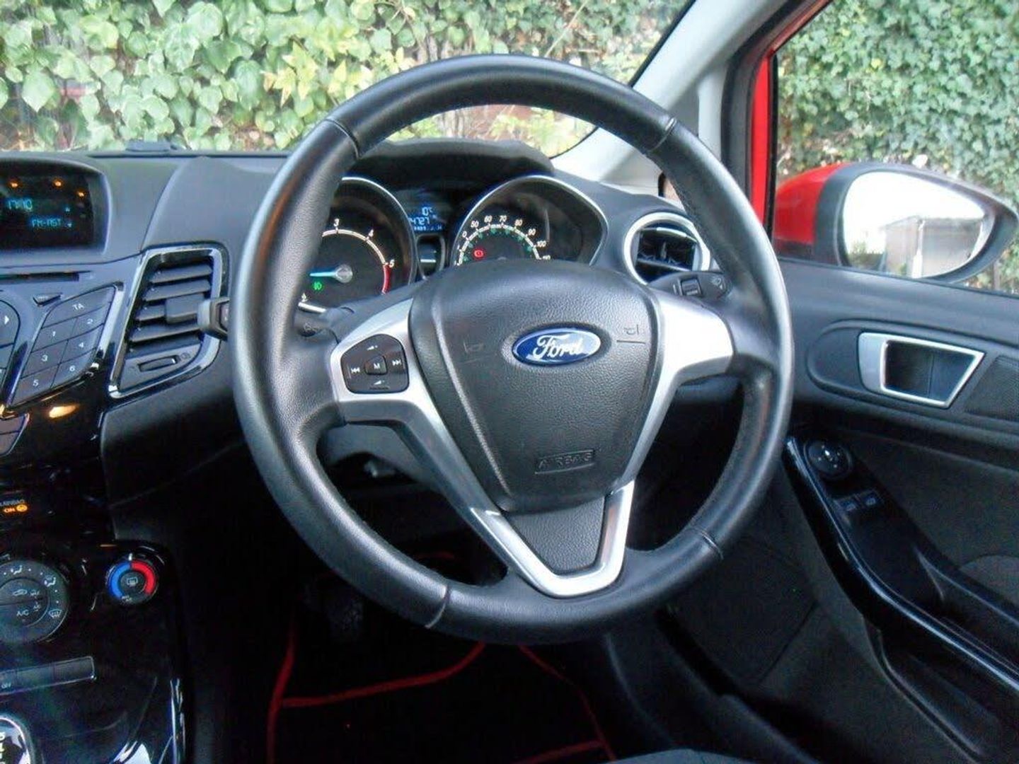 12V Power Socket - Front, 14in Alloy Wheels, 14in Alloy Wheels - 5x2 Spoke, ABS - Anti-lock Braking System, Adjustable Boot Load Floor, Aesthetic Lighting Package, Air Conditioning - Manual, Airbags - Curtain, Airbags - Driver Side Knee, Airbags - Front Passenger, Airbags - Head and Thorax, Airbags - Passenger Deactivation, Brake Warning Lights - Automatic Flashing of Brake Lights Under Heavy Braking, Bumpers - Front and Rear - Body Colour, Centre Console - with Trinket Tray - Two Cup Holders, Chrome Belt Line Finisher, City Pack, Courtesy Light - Overhead with Theatre-Style Dimming, Courtesy Lights with Map Reading Lights, Door Handles - Body Colour, Door Mirrors - Electrically Operated and Heated, Drivers Airbag, EBA - Emergency Brake Assist, EBD - Electronic Brakeforce Distribution, ECOmode, Electric Windows - Front with One Touch Lowering Drivers, Emergency Brake Warning - Automatic Hazard Warning Lights, EPAS - Electric Power Assisted Steering, ESP - Electronic Stability Programme, Ford AM-FM CD Audio System, Ford Easy Fuel Capless Refuelling System with Misfuel Inhibitor, Front Fog Lights - Chrome Bezel Rings, Front Lower Grille Insert and Surround - Black, Front Seatback Map Pockets - Driver and Passenger, Front Upper Grille - Chrome Finish Surround, Front Upper Grille Insert - Chrome bars, Gear Knob - Leather, Gearshift Indicator Light, Gearshift Knob - Leather-Trimmed with Chrome Finish Bezel, Glovebox - Illuminated, Handbrake Release Knob - Chrome, Head Restraints - 2-way Adjustment, Head Restraints - Rear 2-Way Adjustment, Headlights - Courtesy Delay, Headlights - Follow Me Home, Headlights - Halogen Projector with Silver Bezel, Headliner - Woven, Heated Front Windscreen, High-Mounted Rear Brake Light, Hill Start Assist, Interior Door Lever - Chrome Finish, IPS - Intelligent Protection System, Leather-Trimmed Handbrake, LED Ambient Courtesy Lighting, Lithos Cloth - Charcoal Black, Loadspace Compartment Light, Loadspace Floor Carpet, Locking Wheel Nuts, MyKey, Passenger Airbag Deactivation Indicator, Passengers seat manual 2-way adjustment, Perimeter Anti Theft Alarm, Pollen Filter, Race Red, Rake and Reach Steering Adjustable, Rear Centre Head Restraint, Rear Courtesy Lights, Rear Privacy Glass, Rear Seats Back - Carpet, Rear Spoiler - Body Colour, Remote Central Locking, Removable Package Tray, Seats - 60-40 Split Folding Back and Fixed Cushion, Seats - Drivers 4-Way Adjustment, Seats - Front Comfort Style, Seats - ISOFIX Mounting Brackets for Child Seats, Second Remote Ignition Key, Spare Wheel - 14in Steel, Steering Wheel - 3-Spoke - Leather Trimmed with Bezel, Steering Wheel - Multifunction, Stowage Pockets - Driver and Front Passenger Seatbacks, Suspension - Front Stabiliser Bar, Suspension - Lowered Ride Height, Tailgate Handle - Body Colour with Chrome Finisher, Trip Computer, USB and AUX Connection for External Music Devices