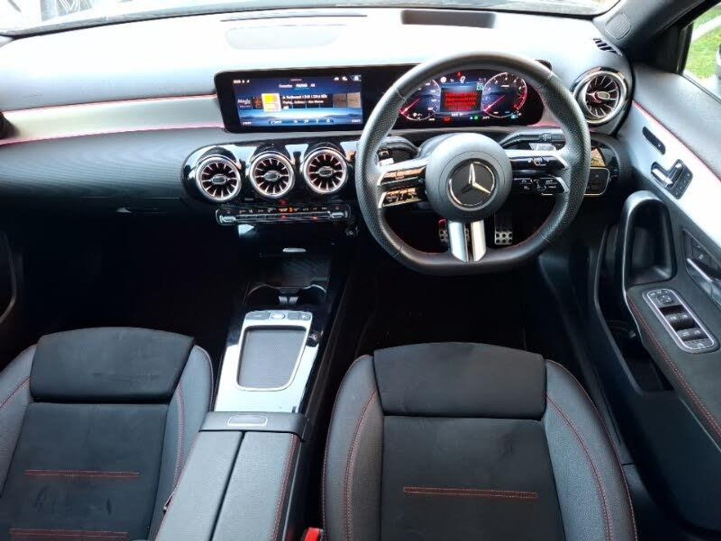 12 Months' Mercedes-Benz Approved Used Car warranty when purchased from this branch, Manufacturer Approved Used, Balance of warranty, 10.25 inch touchscreen central media display, Cruise control + speed limiter, DYNAMIC SELECT with a choice of driving modes (ECO, Comfort, Sport and Individual), Hey Mercedes Voice activation, Smartphone integration with Apple CarPlay and Android auto, Wireless charging, MBUX multimedia system, Exhaust system with 2 visible tailpipe trim elements and rear apron, Artico man-made leather upholstery, Interior lighting - 64 colour Ambient lighting, Guard 360 degree vehicle protection, Attention assist, Head up Display, Traffic sign assist, Mercedes Benz advanced sound system (225 W) with 10 speakers, 1 central speaker, speakers on doors, a tweeter on door,one sub woofer + boost amplifier, AMG body styling - AMG front apron with front splitter and AMG rear apron and visible exhaust tailpipe trim elements, LED daytime running lights, Multibeam LED headlamps with adaptive highbeam assist and cornering function, AMG floor mats, Light longitudinal grain aluminium trim, Mercedes me connect including emergency call system, accident recovery, breakdown and maintenance management, Lowered comfort suspension, 3 Spoke flat bottom leather multi function steering wheel with perforated leather in grip area, Brushed stainless steel sports pedals with rubber studs, Galvanished gear shift paddles on steering wheel, Sports seats with adjustable head restraints, Keyless go comfort pack - A Class, Night pack - A Class Sport, Parking pack with 360 degree camera - A Class, Seat comfort pack - A Class, 19" AMG multi-spoke light alloy wheels,aerodynamically optimised, painted in black with high sheen rim flange