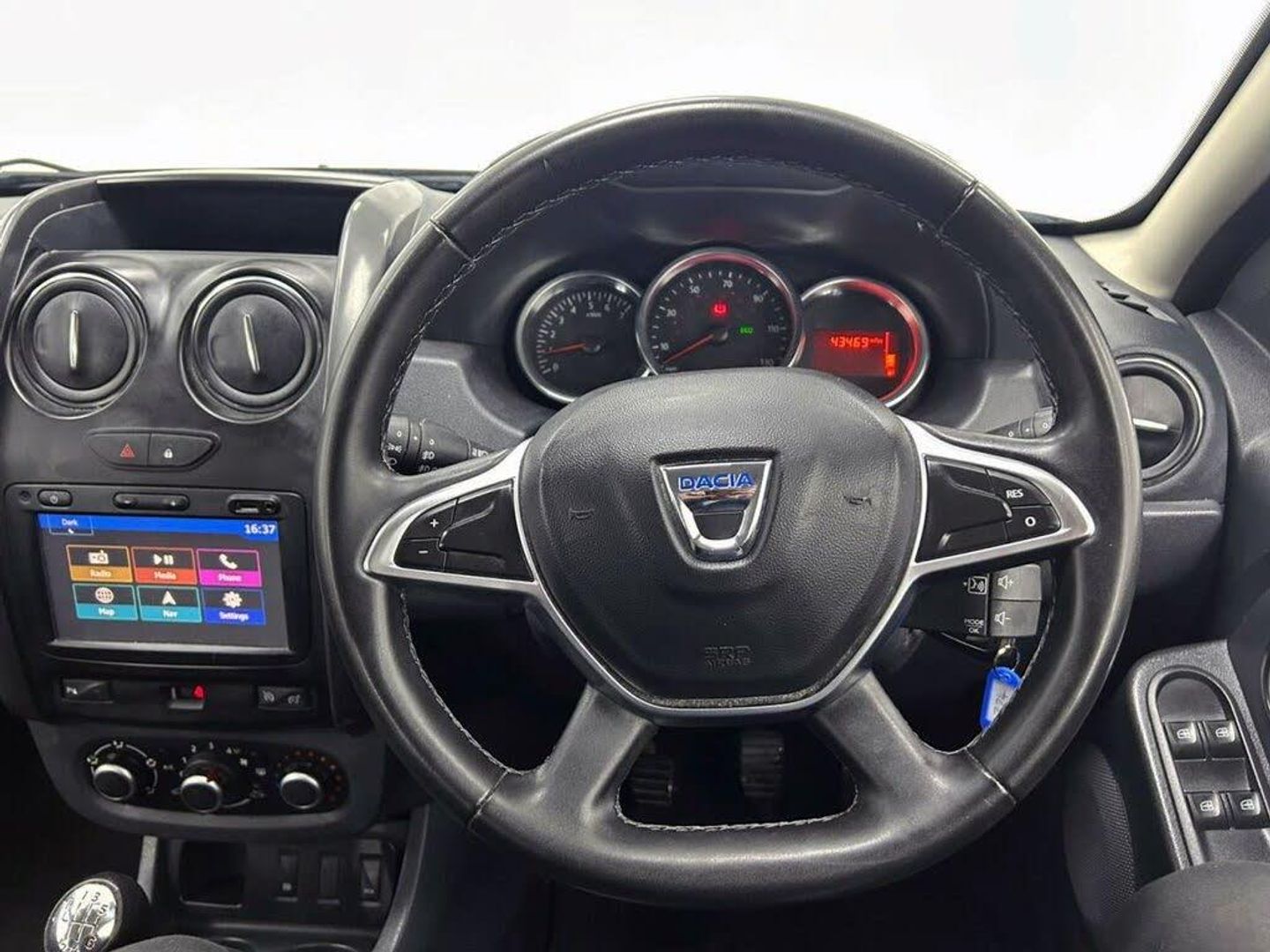 16in Alloy Wheels - Tyrol, 3-Point Rear Seatbelts x3, 3-Seat Rear Bench, 3-Speed Front Windscreen Wipers, 7-Function On-Board Computer, ABS - Anti-lock Braking System, ASR - Traction Control, AUX Input, Air Recirculation - 4-speed Heating and Ventilation, Air Vents - Chrome Surrounds, Airbag Disconnector, Airbags - Driver, Airbags - Front Passenger, Airbags - Front Side, Analogue Dashboard, Anti Gravel Protection, Audio Remote Control, Black Number Plate Surround with Satin Chrome Duster Inscription, Bluetooth Connectivity, Booster Emergency Braking, Boot Light, Bumpers - Front and Rear Lower Section in Black, Bumpers - Front and Rear Upper Section - Body Coloured, Central Locking - Remote, Centre Console Fascia - Matt Black, Centre Console Surround - Dark Carbon, Child Locks in Rear Doors, Chrome Front Grille, Cruise Control and Speed Limiter, DRL - Daytime Running Lights, Daylight - Nightlight Rearview Mirror, Decorative Inserts on Front and Rear Door Panels - Piano Black, Digital Radio, Door Handles - Body Coloured, Door Mirrors - Heated and Electrically Adjustable, Door Mirrors - Silver, Door Open - Visual and Audible Warning, Driver and Passenger Seatbelt Not Fastened - Visual and Audible Warning, Dust Kit, ECO Mode, ESP - Electronic Stability Programme, Electric Windows - Front, Electric Windows - Rear, Fabric Decorative Insert on Front and Rear Door Panels, Fixed Glazed Roof with Satiny Roof Bar, Folding Rear Seats, Front Door Sill Protection Strip, Front Fog Lights, Front Head Restraints, Front Passenger Reading Light, Front Seatbelt Pretensioners, Gear Lever Cap Insert - Satin Chrome, Gear Shift Indicator, Glovebox Light, Halogen Headlights, Headrests - Rear Height Adjustable x3, Heated Rear Window, Height Adjustment Passenger Seat, Height-Adjustable Drivers Seat, Height-Adjustable Front Seatbelts, High Level Third Brake Light, ISOFIX Points for Child Seats in Both Outer Rear Seats, Impact Protection, Indicators with Side Repeaters, Instrument Dial Surrounds - Satin Chrome, Insurance Telematics, Interior Door Handles - Satin Chrome, Lower Steering Wheel Insert - Satin Chrome, Manual Air Conditioning, Map Pockets on Front Seatbacks, Mapping Superior, Media Storage, MediaNav 7in Touchscreen Multimedia System, Multisense System, Power Assisted Steering, Rain Protection Kit, Rear Airbags, Rear Parking Sensors, Rear Passenger Reading Light, Rear Washer-Wipe, Rear Wiper, Rev Counter, Side Sills - Satin Chrome, Skid Plates - Front and Rear - Satin Chrome, Steering Wheel - Chrome Logo Surround, Steering Wheel - Leather, Steering Wheel Rake Adjustment, Steering Wheel Reach Adjustment, Sun Visor with Mirror Without Light, Superlocking, Tailgate Trim with Duster Inscription - Black-Satin Chrome, Thatcham Approved Engine Immobiliser, Tinted Windows, Tyre Pressure Monitor, Tyre Repair Kit, USB - iPod Interface, Wheel Arch Mouldings, Cosmos Blue