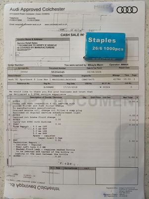 17in Alloy Wheels - 10-Spoke Design High Gloss, 6.5in MMI Display Screen in High-gloss Black - Manually Retractable, AMI - Audi Music Interface, AUX-IN Socket, Acoustic Parking System - Rear, Adaptive Brake Lights, Air Conditioning, Air Vent Sleeves - High Gloss Black, Aluminium Trim for Control Switches-Glove Compartment-Door Handles-Door Sills, Anti Theft Locking Wheel Bolts, Audi Drive Select, Centre Console with Two Cup Holders and 12V Socket, Cloth Headlining in Black, Concert Radio, Connectivity Package, Cruise Control, DAB Digital Radio, Door Mirrors - Body Coloured with Integrated Indicators, Door Mirrors - Electrically Adjustable and Heated, Door Sill Trims - Aluminium with S Line Logo, Driver - Front Passenger - Front Side and Head Airbag System, Driver and Front Passenger Seats with Manual Height-Forwards and Backwards Adjustment, Drivers Information System - DIS, ESC - Electronic Stabilisation Control, Electric Windows - Front and Rear, Electromechanical Power Steering, First Aid Kit, Front Floor Mats, Front Fog Lights, Front Passenger Airbag Deactivation Switch, Glovebox - Illuminated, Head Restraints - Rear, Headlights - Xenon, Heat Insulating Glass - Windscreen and Side Windows, Heated Rear Windscreen, Hill Hold Assist, ISOFIX Child Seat Mounting, LED Interior Light Package, LED Rear Lights, Leather Handbrake Grip and Sports Gear Knob with Aluminium Trim, Manually Adjustable Lumbar Support in Front Seats, Mobile Telephone Preparation - Bluetooth Interface, Polished Tailpipes, Rear Diffuser - Painted in Platinum Grey, Rear Fog Lights, Remote Central Locking with 2 Fold Away Keys, S Line Badges on the Front Wings, S Line Body Styling, S Line Roof Spoiler, S Line Sports Suspension, SD Card Reader, Satellite Navigation System - SD Card Based, Seat Belt Height Adjustment for Front Seats, Seat Belt Monitoring, Secondary Collision Brake Assist, Split Folding Rear Seat, Steering Wheel - 3-Spoke Leather - Multi-function - Sports, Steering Wheel - Height and Reach Adjustable, Thatcham Category 1 Alarm and Immobiliser, Three Rear Seats, Three-point Seat Belts, Tool Kit and Car Jack, Tyre Pressure Monitoring System, Tyre Repair Kit, USB Charging Adaptor, Voice Control of Key Telephone and Radio Functions, Warning Triangle, Washer Fluid Level Indicator