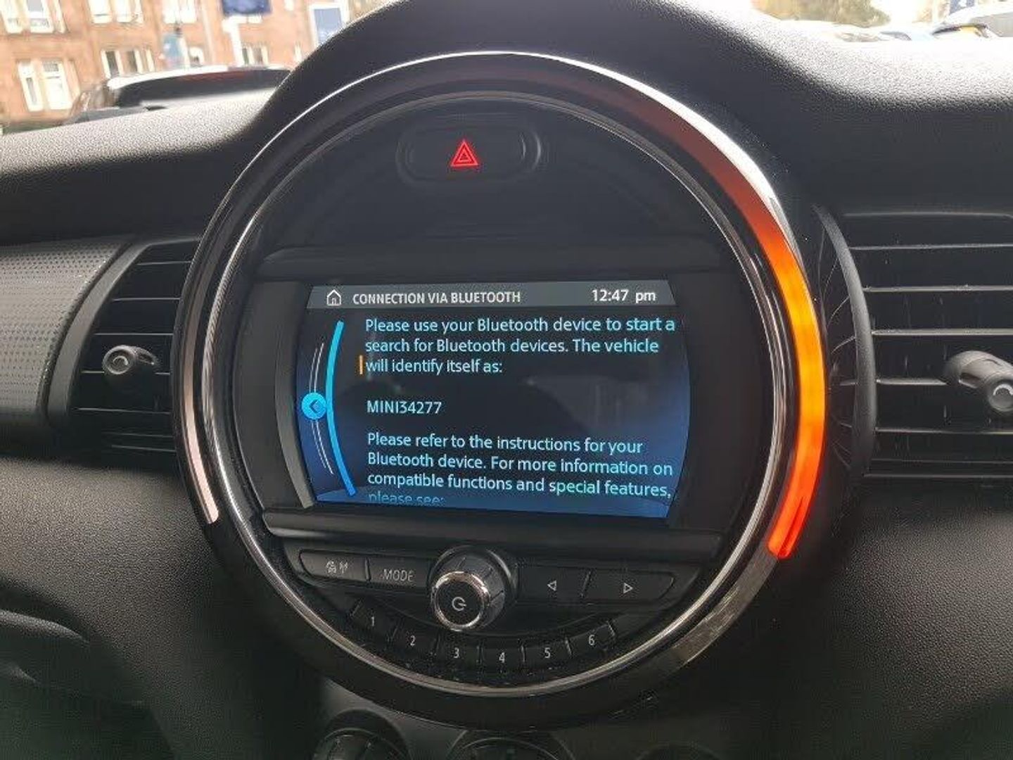 LED daytime running lights, LED Headlights, Steering wheel audio controls, Compatible mobile phone bluetooth with audio streaming, MINI TeleServices, 6.5" touchscreen with LED ring, Rear LED lights with union jack design, LED headlight with closed ring and daytime driving lights, Heated rear window, Automatic headlight activation switch, Interior lighting with 12 basic colours selectable via toggle switch in roof, Hill start assist, Start/stop toggle with keyless go
