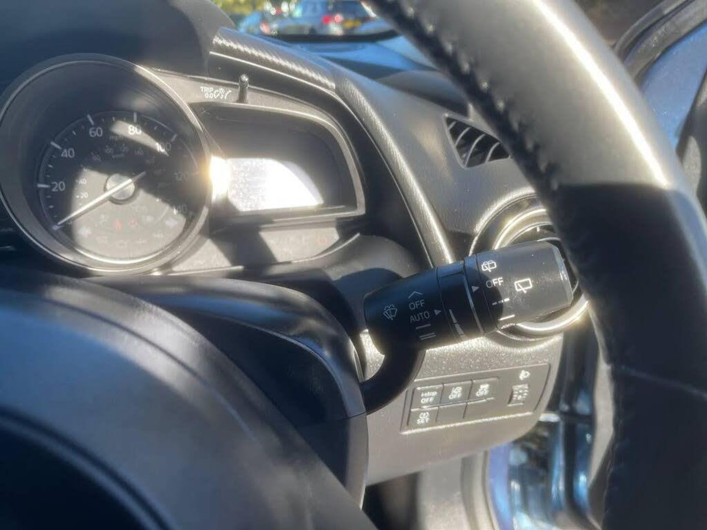 15in Alloy Wheels, 7in Colour Touch Screen Display, ABS - Anti Lock Braking System, AM-FM DAB Radio - Single CD Player-MP3 Audio System with 4 Speakers, AUX and 2 USB Inputs, Air Conditioning - Climate Control, Analogue Speedometer, Courtesy Light with Integrated Spotlight, Cruise Control with Adjustable Speed Limiter, Dashboard Panel - Black Gloss, Door Mirrors - Electrically Adjustable - Heated - Power Folding with Integrated Indicator Lights, Door Pockets - Driver and Front Passenger, Dual Front Airbags, Dusk Sensing Automatic Headlights, Dynamic Stability Control - DSC - with Traction Control System - TCS, Electric Windows - Front and Rear with One Touch Auto Up and Down on Drivers Side, Electronic Power Assisted Steering, Emergency Stop Signalling System - ESS, Engine Start-Stop Button, Front Fog Lights - LED, Front Passenger Airbag Cut-Off Switch, Front Passenger Seat - Manual Height Adjustment, Front Passengers Seat - Manual Slide and Recline Adjustment, Front Side Airbags, Front and Rear Curtain Airbags, G-Vectoring, Gear Knob - Leather, Gear Shift Indicator, Glovebox, Grab Handles - Front Passenger and Two Rear with Coat Hooks, Halogen Daytime Running Lights, Handbrake - Leather Wrapped, Headlights - Coming-Leaving Home, Headlights - Halogen with Manual Headlight Levelling, Hill Hold Assist, ISOFIX Child Seat Anchorage - Attached to Outer Rear Seats, Integrated Bluetooth System, Lane Departure Warning System, Luggage Compartment - Light, MZD-Connect, Multimedia Commander, Rain-Sensing Front Wipers, Rear Parking Sensors, Remote Central Locking with Deadlocking, SRS - Supplementary Restraint System, Satellite Navigation System, Seatback Pocket - Front Passenger, Seatbelt - Reminder Screen - Driver - Passenger and Rear Seats with Audible Warning, Seatbelts - Front - 3 Point - ELR x 2 with Pre-Tensioners, Seatbelts - Rear - 3-point - ELR x 2 with Pre-tensioners, Seats - 60-40 Split Folding Rear, Seats - Drivers Manual Slide-Recline and Height Adjustment, Self-Supporting Rigid and Torsion-Resistant All-Steel Body with Defined Crush Zones for the Front and Rear Sections - Stable Passenger Safety Cell with Side Impact Reinforcement in the Doors, Smart City Brake Support, Steering Wheel - Leather, Steering Wheel - Mounted Remote Audio Controls, Steering Wheel - Telescopic and Tilt Adjust, Sunvisors - Drivers and Front Passengers with Covered Vanity Mirror and Drivers Ticket Holder, Thatcham Category 1 Alarm and Immobiliser, Three Height Adjustable Rear Head Restraints, Trip Computer, Tyre Pressure Monitoring System, Tyre Repair Kit, Wipers - Front Adjustable Speed with Intermittent, Wipers - Rear Adjustable Speed with Intermittent, i-Stop Status, Cloth - Black