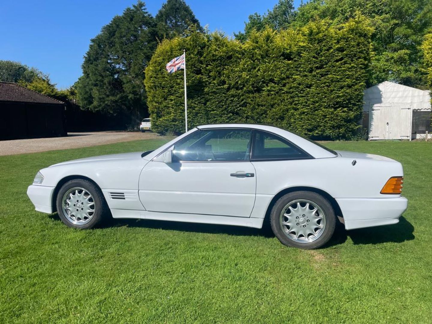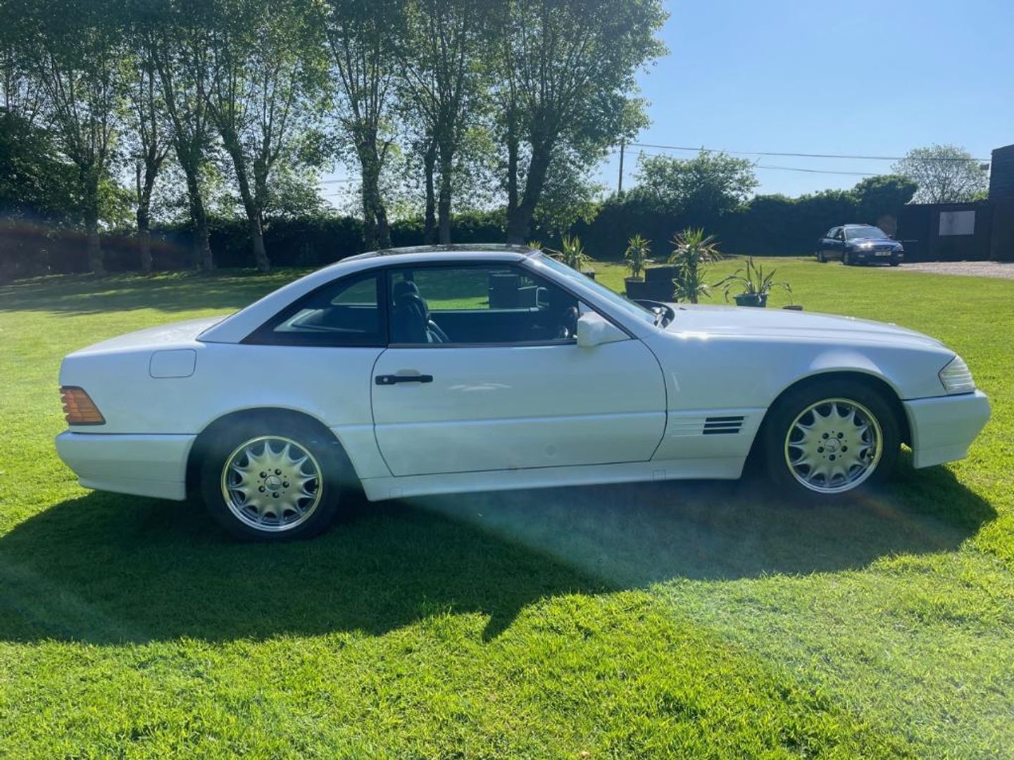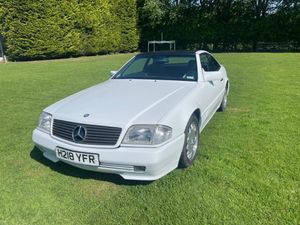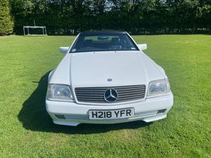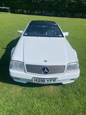 1990 Mercedes 300SL, Arctic White with full Navy hide interior, rare Factory Panoramic hard top, dark blue Mohair hooding, Mercedes leather wallet with all books inside, service record with main dealer stamps inside, upgraded Sony music and Italian OBA wood steering wheel, full electric seats, car drives very well, everything working, only 60,291 miles, the car is in superb condition, these R129 are starting to rise in value as collectors now realiseing what good value they are.