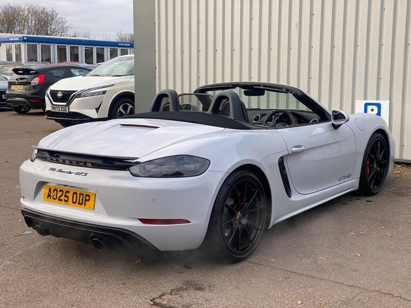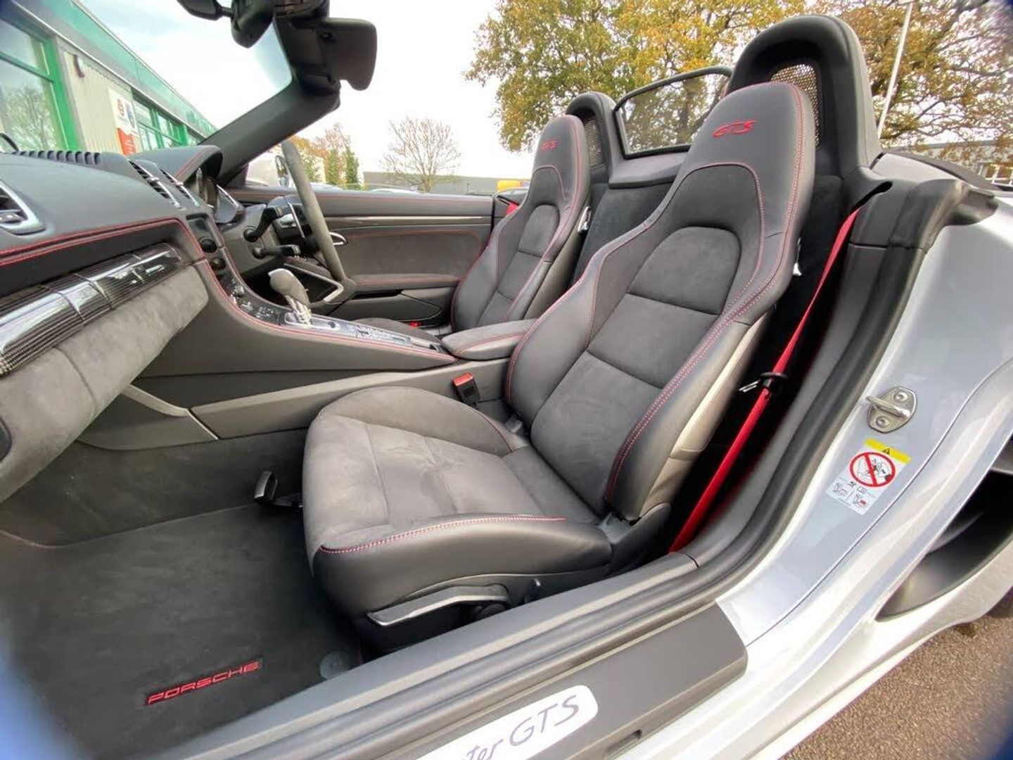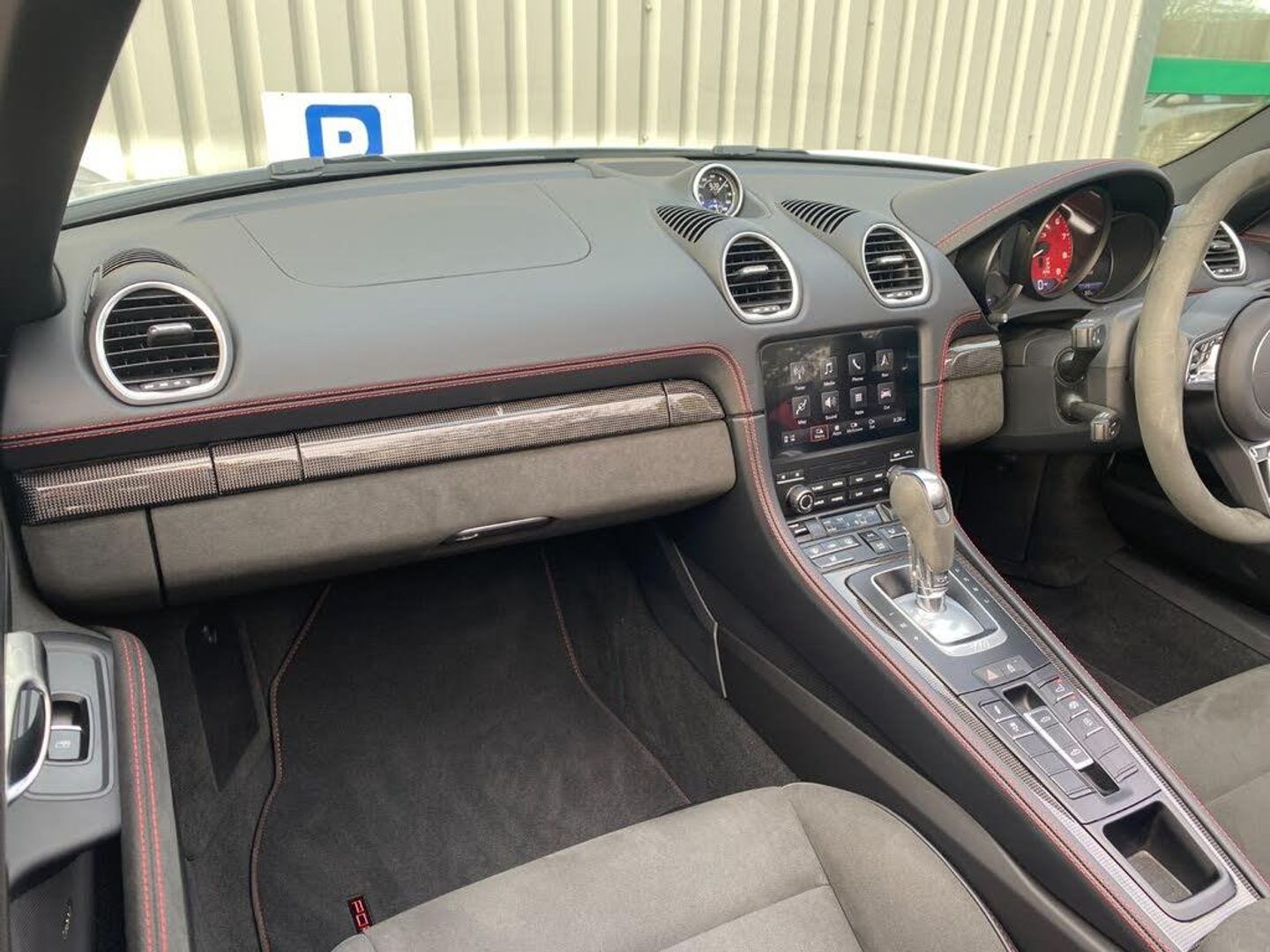 Auto start and stop system, Digital displays for vehicle speed, chosen gear, odometer, trip odometer and clock, eCall emergency call system, Instrument cluster with central rev counter and high-resolution 4.6 inch colour display, Porsche Communication Management (PCM) including online navigation module, mobile phone preparation, audio interfaces and voice control system, 64 litre fuel tank, Aluminium block and cylinder heads, Central cooler, Closed underbody panelling, Direct fuel injection (DFI), Dynamic gearbox mount system, Gasoline particulate filter, Integrated dry-sump lubrication with an on-demand oil pump, Porsche Doppelkupplung (PDK), Porsche Stability Management (PSM) with ABS, advanced brake functions, Porsche TORQUE Vectoring (PTV) with mechanical rear differential lock, Rear wheel drive, Two seater vehicle with mid mounted engine, Two three-way catalytic converters and on-board diagnostics for monitoring emission control system and coated particulate filter, Variable intake manifold with two switchable resonance valves, VarioCam (camshaft control for inlet and exhaust valves) and adaptive cylinder management, Water cooled with thermal management, DAB Digital radio, Integrated 4G/LTE compatible SIM including data for the Porsche Connect Services, Integrated compatible SIM including Porsche Connect Services, Navigation incl porsche + Apple Carplay, connect module, wireless internet access, carfinder, remote vehicle status, remote service and vehicle track, Wifi and music streaming, Auto deploying rear wing, Automatic headlight activation including welcome home lighting, Automatically extending rear boot spoiler, Body colour bumpers, Body colour door handles, Electrically adjustable heated exterior mirrors on door waist rails, aspherical on driver's side, Electrically folding exterior mirrors including courtesy lighting, Fully automatic fabric hood, electrically operated/heatable rigid glass rear screen, operable approx 31 mph and convenient operation by key remote, Green tinted heat insulating glass, Grey top tinted windscreen, Heated rear windscreen, Intelligent lightweight body in Aluminium/Steel composite construction, LED 3rd brake light, LED tail lights and integral 4 point brake lights and reversing lights, Net wind deflector, Power windows with one touch operation and door seal protection, Rain sensor, Rear boot, Separate tinted auxiliary lights in the front end with LED indicators and position lights, Side air intakes with one grille in black, Specifically designed GTS front and rear aprons partially painted in black, Twin tract sports exhaust system with two tailpipe in stainless steel high gloss black, Windscreen washer system with two wiper speeds and washer jets, 12V sockets in passenger footwell and centre console storage compartment, 718 logo on gear lever, Additional smooth finish leather with door panel armrest and centre console main storage compartment, Adjustable fan with air recirculation and defroster functions, Ascending centre console with uncovered storage compartment and closed storage compartment, Clothes hooks on front seat backrests, Footwell illumination, Front and rear luggage compartments, Front headrests, Heated seats, Hood lining in black fabric, LED reading lights, orientation, ignition lock, additionally luggage compartment and glove compartment lighting, Lockable glovebox, Seat centres in race tex, side bolsters, headrests in leather and headrests embroidered with GTS logo in black, Single front passenger seat, Storage compartments in each doors, Two individual cup holders (Passenger side, integrated into dashboard trim strip), Sport chrono package including mode switch - Boxster, 3 point automatic seatbelts, ASR, Electrically controlled parking brake, Front and rear lightweight spring strut axle, Front seatbelt pretensioners + load limiters, Full size driver and passenger airbags, Passenger airbag deactivate switch, Porsche side impact protection doors with thorax airbag in outer backrest side bolster and head airbag for driver/passenger in door panel, Tyre pressure monitoring system, Alarm system with interior surveillance, Anti-theft wheel bolts, Dashcam prep, Engine immobiliser with in key transponder, central locking and remote control, Tyre repair kit, Wheel centres with full colour Porsche crest