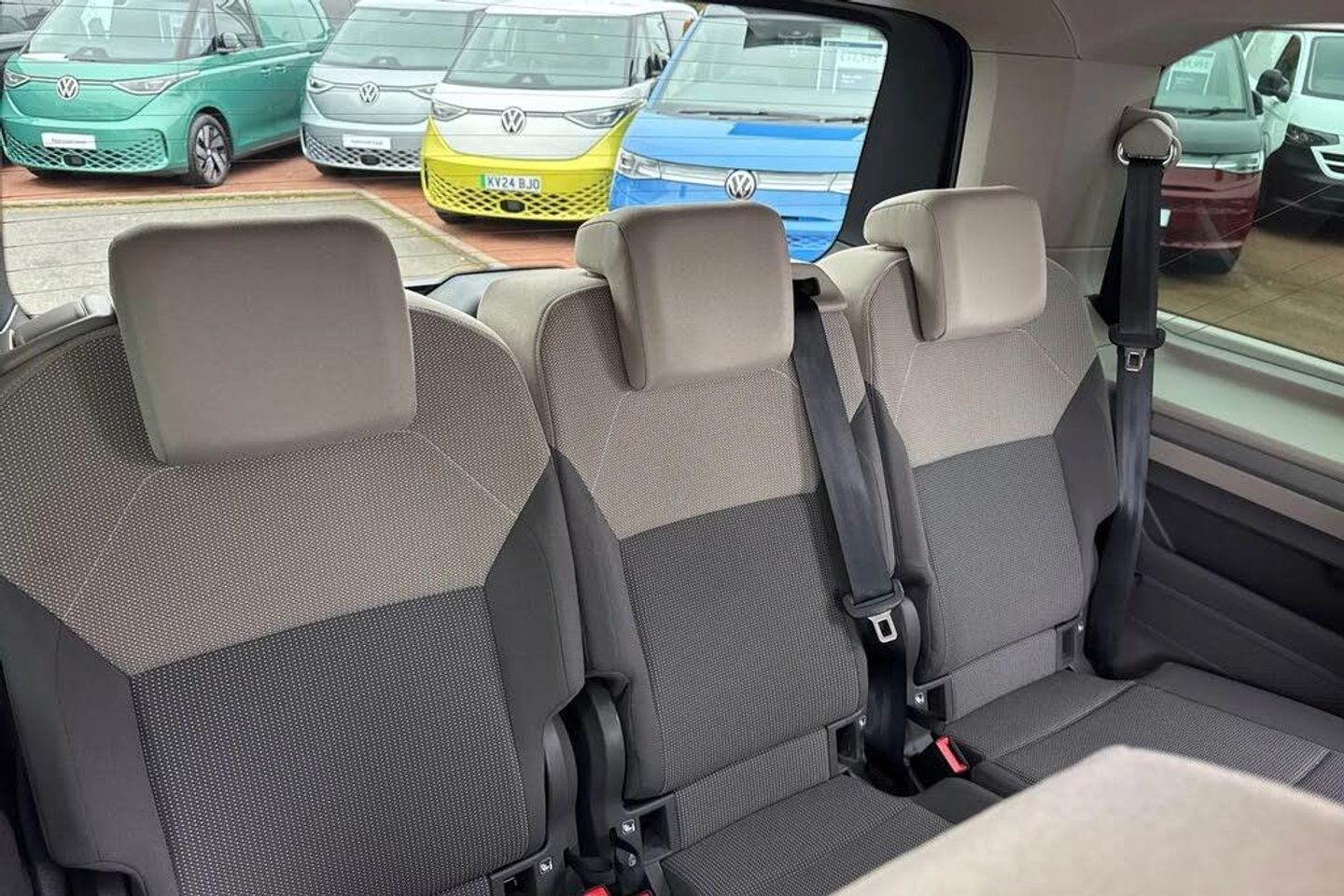 Special 2-Tone Factory paint-Mono Silver/Energetic Orange,Twin sliding side load doors,Privacy glass (90%),Chrome trim decorative strip mid-way on side and rear,Parking sensors front + rear,Rear view camera,Park sensors - front and rear park with park assist,High Beam Control,Park Assist,Adaptive Cruise Control,Lane Change Assist,Dynamic Headlamp Range Control,Poor Weather Lights,Ribella bi-colour fabric upholstery,Heated front seats,Multi-function table,Navigation system 'Discover Pro',App-Connect incl. App-Connect Wireless for Apple CarPlay and Android Auto,2 remote control folding keys,Parking Package,Assistance Package,Lighting Package,Two tone - Mono Silver/Energetic Orange,Ribella bi-colour fabric - Raven black/Sand,16" Syrakus silver alloy wheels with low rolling resistance tyres,Heated rear window with window wiper and washer system,Interior noise reduction measures,Laminated safety glass windshield,heat and sound insulating,Rear wiper,Windshield wiper intermittent control with rain sensor,Body coloured exterior door handles,Glossy black painted radiator grille with 2 chrome trims,Sliding door on left/right with power latching,Automatic headlight control with welcome home lights,Dynamic headlight range control (self adjusting),Front fog lights,LED 3rd brake lamp,LED main headlamps with LED separate daytime running light,LED rear combination lamps,ABS,Automatic post collision braking system,Autonomous emergency braking front assist with pedestrian and cyclist monitoring,Electronic stability control (ESC) and Electromechanical brake booster,ESP,Hill hold assist,Traction control,Adaptive cruise control with C2X including front assist and city emergency braking system,Driver alert system,Dynamic road sign display,Lane change system with side assist including blind spot monitor,rear traffic alert and exit warning system,Lane keeping system Lane Assist,PAS,Break away auto dimming rear view interior mirror,Electrically adjustable,heated and folding door mirrors,High gloss black exterior mirror housing,3x3 point rear seat belts,Driver and front passenger airbag with front passenger airbag deactivation,Electric childproof lock,First aid kit with warning triangle and safety vest,Seat belt warning for the drivers and all passengers seats if unfastened,Side and curtain airbags for driver and front passenger,curtain airbags for outer seats in rear,centre airbag in front,Single tone horn,Tyre pressure monitoring system,Carpet mats in cab,Reinforced carpet floor covering in passenger compartment,1 x 12V sockets on the dash panel,12V socket in passenger compartment,Grab handles on A pillar for access,on driver and front passenger side,Height and longitudinal adjustment steering wheel with gear shift paddles,Illumination lockable glovebox compartment,Load compartment partition to 20kg with bag hooks and luggage net,Luggage compartment lid power latching with unlatching from inside,Multifunction leather steering wheel with tiptronic,Slidable multifunction table/centre console with 3 cup holders,Storage compartment under the 2nd and 3rd row seat and two waste bins,Surround lighting in door area,LED luggage compartment lighting X 2,Electronic differential lock,Sun visors with illuminated vanity mirror,ticket holder on driver side with airbag warning label on sunvisor and B-pillar,Mobile phone interface,We connect preparation,2 USB-C ports in front and 4 USB-C ports in passenger compartment,eCall emergency system,Tailgate,Travel assist,Dark silver brushed decorative inserts,3 seat bench in 3rd row,7 single seats removable/movable,Front and rear head restraints,Height adjustable seats,ISOFIX (including i-size) and top tether in all seats in 2nd and 3rd rows,Removable armrests for front seats with power adjustable lumbar support and folding table for 2nd row passenger seats,Removable armrests in 2nd row passenger seats,Single,Heated Front Seats