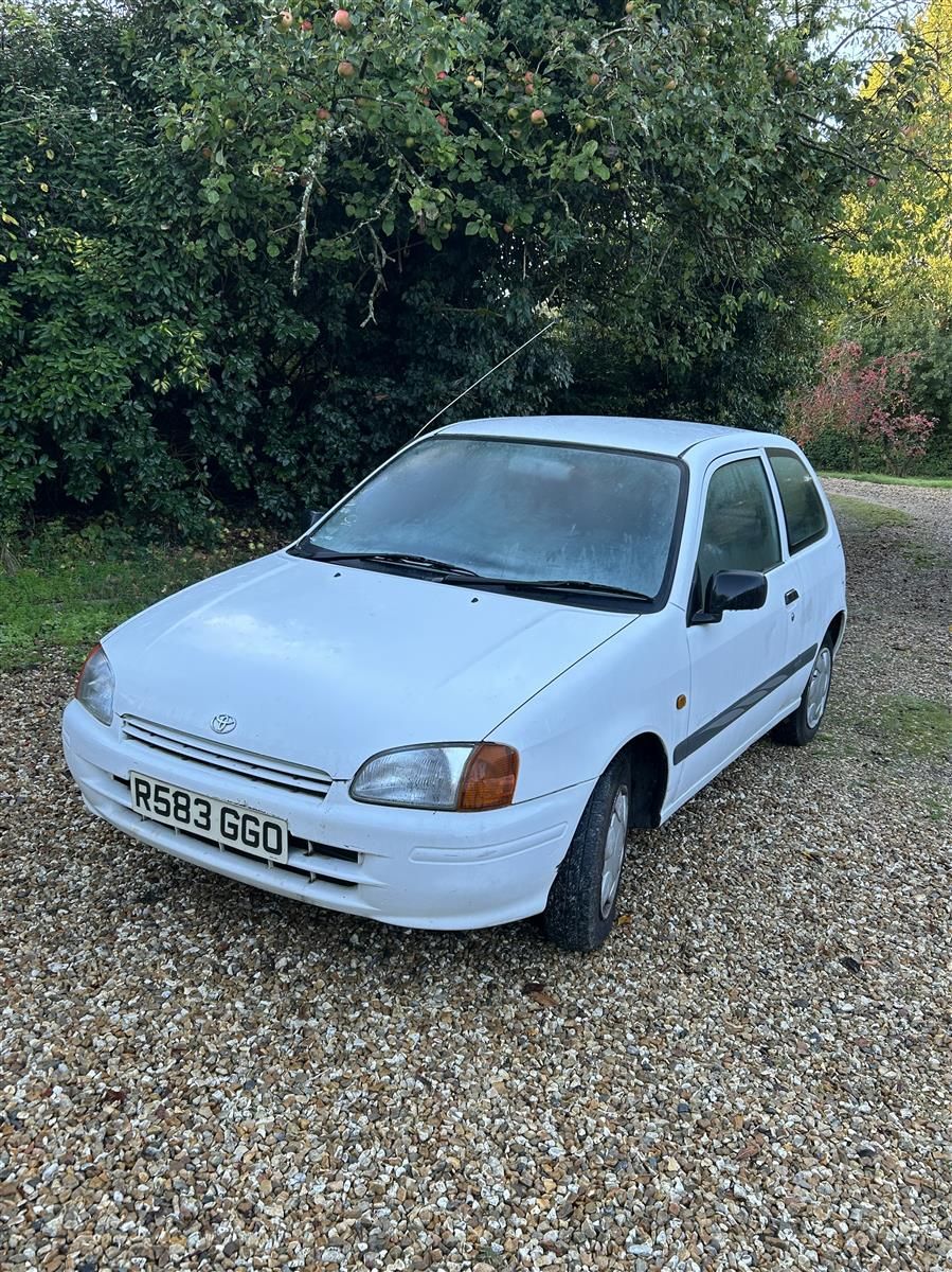White Toyota Starlet, lots of history and stamps in the service book.