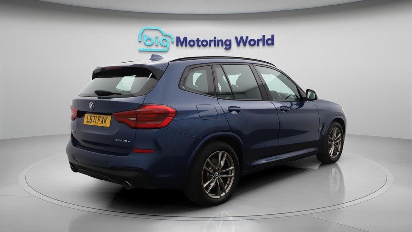 Leather Seats,Apple CarPlay-Our BMW X3 comes with optional extras worth £490. Specification includes a range of fantastic features including Leather Seats, Apple CarPlay, M Sport Bodykit, Android Auto, Professional Nav, Satellite Navigation, Heated Seats, Gesture Tailgate, Rear View Camera, Internet Specification information is supplied by CAPHPI and may vary to the actual car. This data does not form any part of a buying contact. Please check specification prior to purchase in-store. The MOT is valid until October 2026, visit bigmotoringworld.co.uk for more photos, a 360 tour, service history and a free HPI report.Were BIG on peace of mind and this Blue BMW X3 has completed our comprehensive 200 point inspection and passed all checks. Its ready for you to drive away with immediate collection in-store. We include a 90-day warranty as standard plus an option to extend for up to 3 years.Reserve this car exclusively for you, safely and securely at bigmotoringworld.co.uk, with a fully refundable £99 deposit. Test drive before you buy, with no commitment, no hassle and a completely haggle free experience. Still searching and want to see thousands more cars? We are BIG on choice with over 8000 cars to choose from.Visit our award winning web site bigmotoringworld.co.uk.Were Big Motoring World and were BIG on what matters to you.
