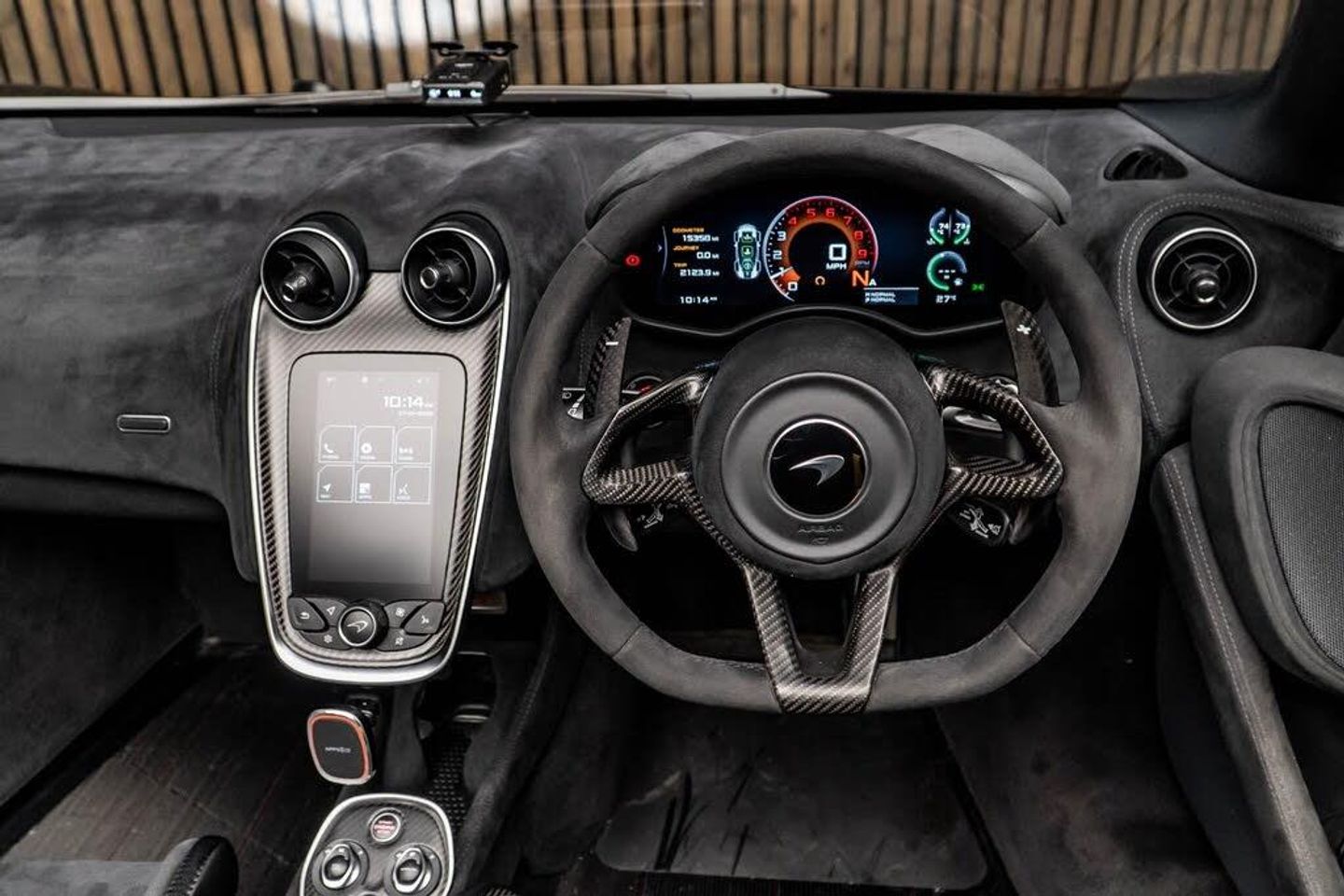 19in Front and 20in Rear Alloy Wheels - 10 Spoke Ultra-Lightweight Forged, 3x Handling Modes - Normal - Sport - Track, 7in Portrait Touch Screen Monitor, Adaptive Damping LT Tune with Lowered Ride Height, Alarm, Anti-Lock Braking System - ABS, Automatic LED Daytime Running Lights and Rear Lights, Automatic Lights and Rain Sensor, Black Seatbelts, Black Sparkle Metallic Interior Components, Body Colour Door Mirror Casings and Door Mirror Arms, Brake Calipers - Black with Printed McLaren Logo, Carbon Black Alcantara Steering Wheel, Carbon Ceramic Brakes with 6 Piston Calipers Front and 4 Piston Calipers Rear, Carbon Fibre Extended Side Intakes - Dark Palladium, Carbon Fibre Extended Side Skirts with Aero Winglets - Dark Palladium, Carbon Fibre Fixed Rear Wing - Dark Palladium with Matte Black Heat Shield, Carbon Fibre Front Splitter with Integrated Twin Endplates - Dark Palladium, Carbon Fibre Rear Bumper Aero Fins - Dark Palladium, Carbon Fibre Rear Bumper with Integrated Full Width Diffuser - Dark Palladium, Carbon Fibre Rear Deck with Integrated Exhaust Outlets - Dark Palladium, Central High Mounted Stop Lamp, Cruise Control, Dark Palladium Belt Moulding - Rear Fender Closures, Dark Palladium Exterior Door Inserts, Dark Palladium Rear Spoiler, Dark Palladium Service Cover, Dark Palladium Tonneau Cover, Dihedral Doors, Dual Function LED Rear Fog - Reverse Light, Dual Zone Climate Control, Dynamic Electronic Stability Control - DESC, Electrically Folding Heated Door Mirrors with Dip in Reverse Functionality, Electronic Parking Brake, Exposed Engine Bay, Follow Me Home Headlights, Full LED Headlights with Automatic Headlight Levelling, Hill Hold Assist, Keyless Entry and Lock - Keyless Start, LT Anti-Roll Bars, LT Exhaust Bezel - Dark Silver, Launch Control with Burnout Mode, Lockable Centre Console Bin, Manual Adjust Steering Column - Reach and Rake, McLaren Brake Steer, McLaren Track Telemetry (MTT), Natural Finish Wheel Arches, On-Board Memory, Open Differential, Open Door Stowage Bins - Net Stowage Protector, Pirelli P Zero Trofeo R Tyres, Plenum Cover - Natural Finish, Regular Fit Carbon Fibre Racing Seats with Fixed Passenger Seat, Retractable Hard Top Roof, Satin Chrome Brightwork, Silver Wheel Finish, Stealth Exhaust Finisher, Stiffened Engine and Transmission Mounts, Stowage in Driver-Side Seat Front Pocket, TPMS - Tyre Pressure Monitoring System and Tyre Temperature Gauge, Textile Headlining, Tonal Carbon Black Stitch, Top-Exit Stainless Steel Exhaust System, Traction Control - TC, USB Connectivity, MSO Defined Colour Seatbelts - McLaren Yellow, Rear View Camera, Front and Rear Parking Sensors, Security Pack, Vehicle Lift, BLK :10-Spoke U/L/W Wheel - Gloss Black, Brake Calipers - Yellow with Silver McLaren Logo, Carbon Fibre Interior Components