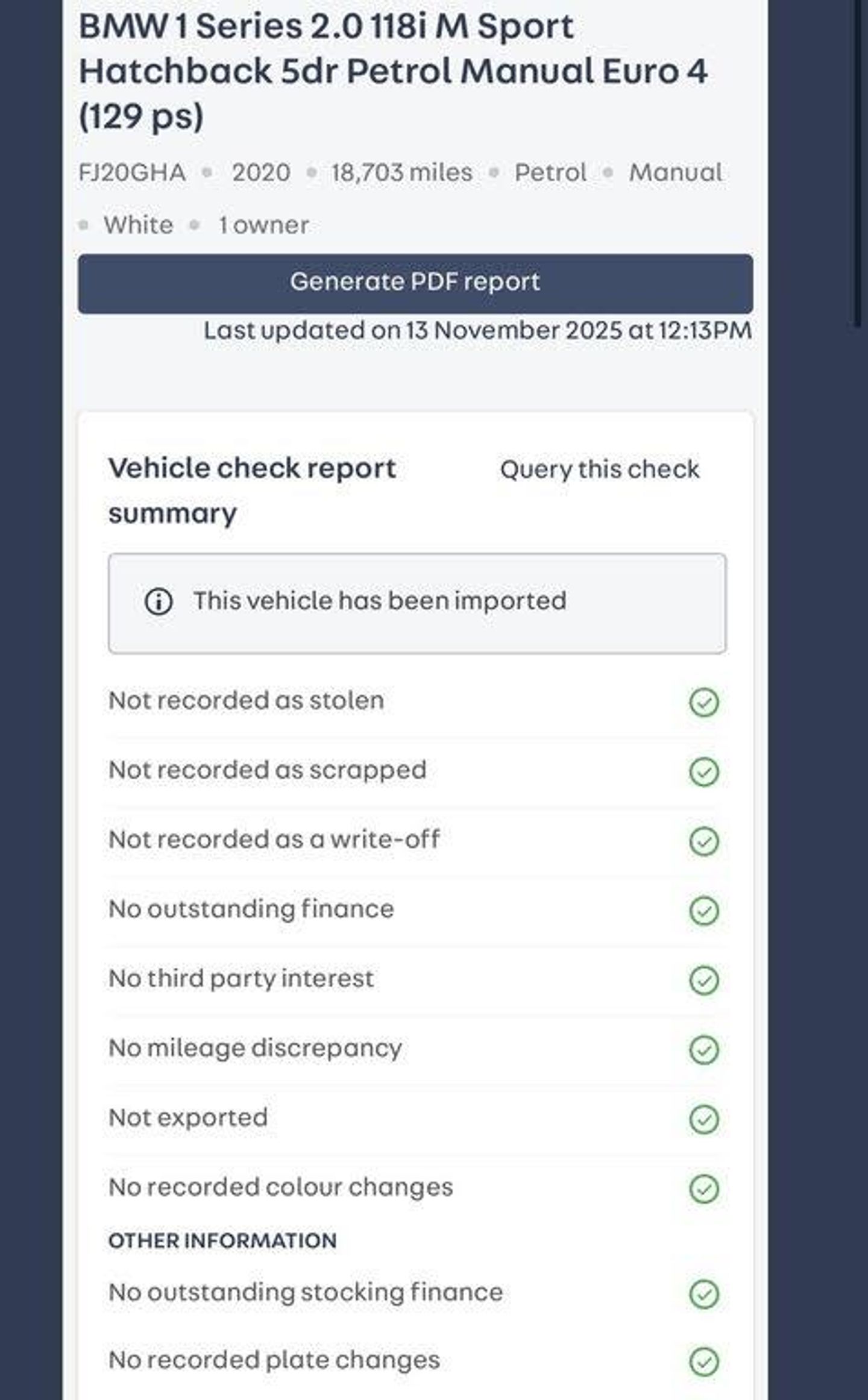 ***FINANCE AVAILABLE ***VIEWING BY APPOINTMENT ONLY***1 OWNER WITH MOT:SEPTEMBER 2026***FULL BMW SERVICE HISTORY***12 MONTHS PLATINUM WARRANTY WITH BREAKDOWN COVER INCLUDED***This 2020 BMW 1 Series 118i M Sport boasts exceptionally low mileage for its age, having covered just 17,685 miles. This Euro 6 compliant model features a responsive 1.5 litre petrol engine and is presented in the sporty M Sport trim. You'll appreciate the convenience of Bluetooth hands free with USB audio interface, cruise control with brake function and speed limiter, and park distance control for both the front and rear. The cabin offers automatic two zone climate control and a rain sensor that activates the headlights automatically.The BMW 1 Series 118i M Sport offers a compelling blend of performance and practicality. Its acceleration from 0 to 62 miles per hour in just 8.8 seconds demonstrates its lively performance, setting it apart from many other vehicles in its class. Furthermore, the generous boot space ensures you have ample room for luggage or shopping, making it a versatile choice for everyday use and longer journeys.-COMFOR PACK11+APPLE PLAY-VIEWING AND TEST DRIVE ONLY BY APPOINTMENTS,FINANCE AND ALL DEBIT/CREDIT ACCEPTED (t & c applies)