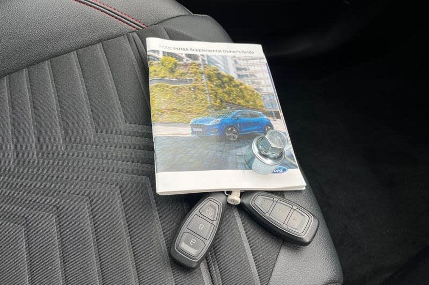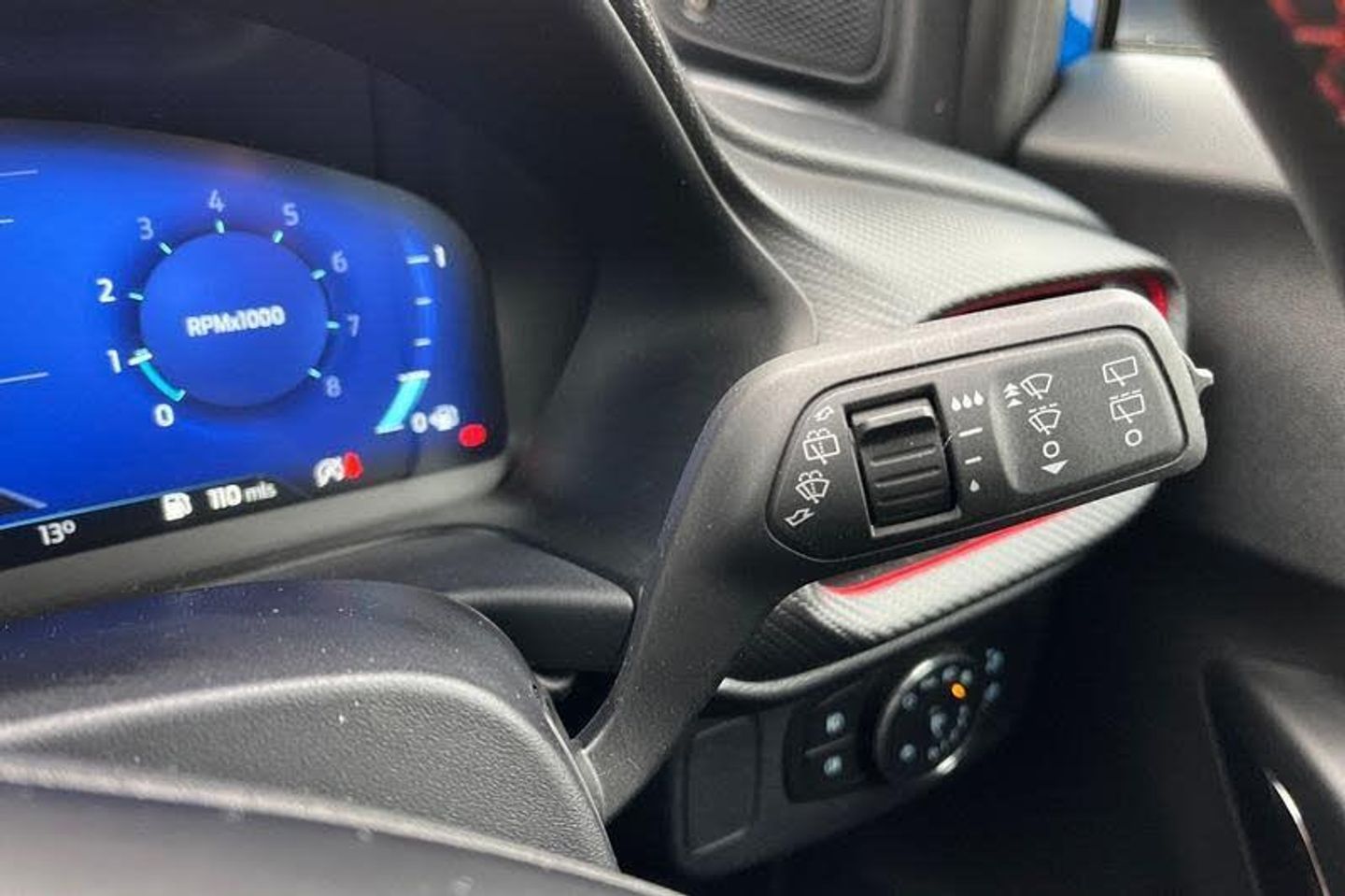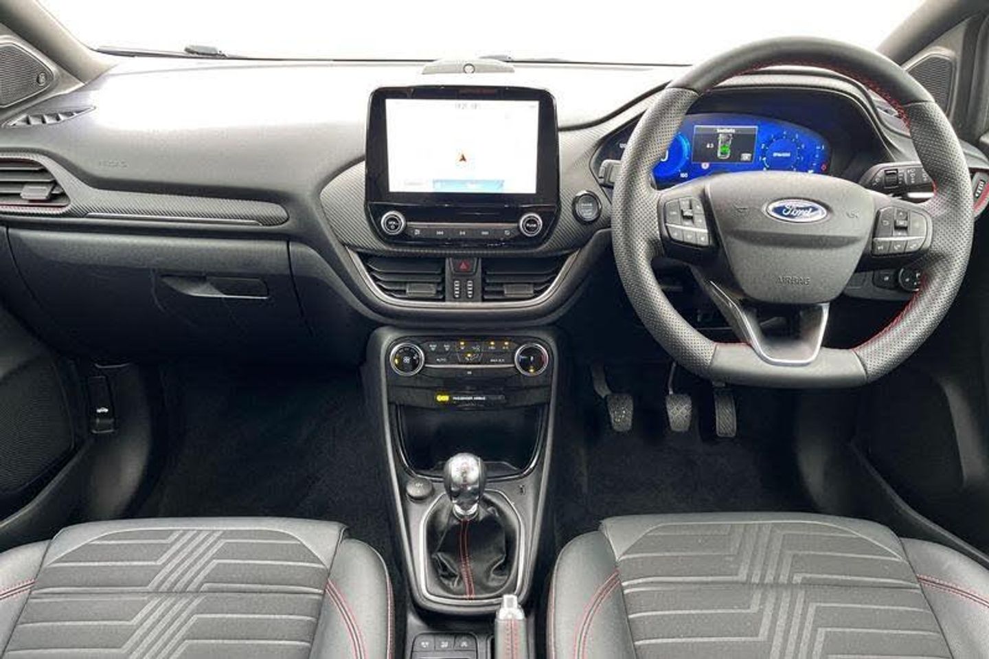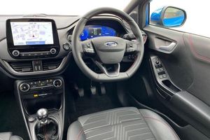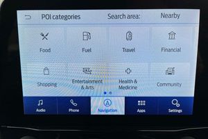 Driver impairment monitor, Emergency call service, Ford easy fuel, Full digital 12.3 instrument cluster, Lane keeping aid with lane departure warning, Power assist steering, Power start button, Rear parking sensor, Selectable drive modes(Normal, sport, Eco, trail, slippery), Speed sign recognition, Automatic headlights with auto high beam, Automatic rain sensing wipers, Front fog lamps, LED daytime running lights, LED rear lamps, Power foldable heated door mirrors with puddle lamps, Privacy glass to side rear windows and tailgate glass, Quickclear heated windscreen, Rear side wing doors, Rear wiper, ST-Line body styling kit with unique grille, Third brake light, 3 seat bench in 2nd row, Centre console with armrest and stowage, Ford megabox extended bootspace, Front and rear head restraints, Front floor mats, Manual 4 way driver seat adjust with lumbar adjustment, Manual 4 way passenger seat with lumbar seat adjustment, Sensico partial premium upholstery, Single front passenger seat, ST-Line flat bottomed sensico leather steering wheel with leather handbrake and aluminium gear knob, Wireless charging pad with electronic air temperature control (EATC), 3 rear seatbelts, Child safety lock, Electronic stability control (ESC) and hill start assist, Pedestrian/cyclist detection & post-collision braking, Pre collision assist system, Tyre pressure monitoring system (TPMS)