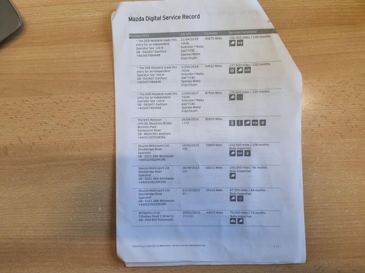 - Mileage