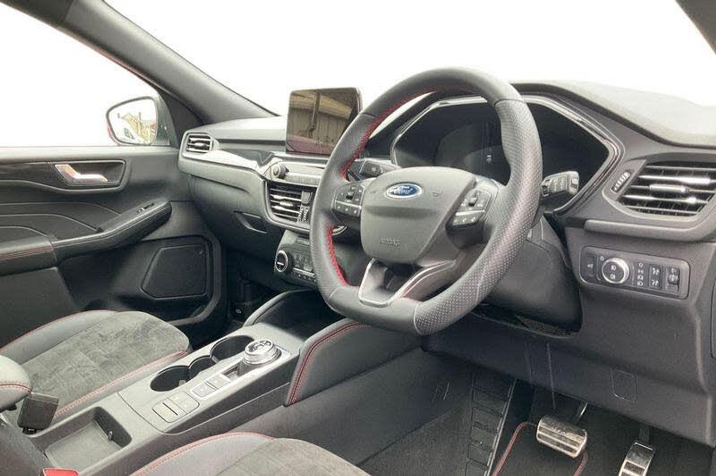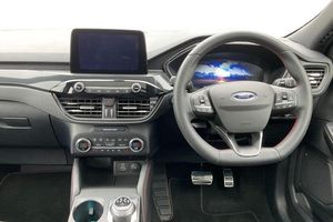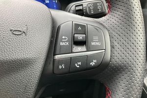 12.3 digital colour instrument cluster, Ford easy fuel, Ford SYNC 3 with 8 TFT LCD touchscreen, App Link, andriod auto/apple carPlay, emergency assistance and navigation with Ford pass connect, Front and rear parking sensors, Hands free power tailgate, Lane keeping aid with lane departure warning, Power assist steering, Rear view camera, Selectable drive modes, Service interval indicator, Auto headlamps with high and low beam, Black roof rails, Body colour bumpers, Day/night rear view mirror, Front LED fog lamps, Large rear roof spoiler, LED daytime running lights, LED rear lights, Power folding, electrically adjustable and heated door mirrors with puddle lights, Power front/rear windows with global close, Power opening panoramic roof, Quickclear heated windscreen, Rain sensing wipers, Rear privacy glass, Rear side wing doors, Rear wiper, ST Line body styling kit with unique front and rear fascia and bumper, rear painted diffuser, front painted skid plates, dark mesh upper grille, ST Line front scuff plates, Third brake light, Twin exhausts, 2nd row sliding seats with 60:40 split, Alloy pedals, Centre console with electronic parking brake, Dark headlining and pillars, Electronic automatic temperature control (EATC), Flat bottomed leather steering wheel in sensico with red stitching, Front and rear head restraints, Heated passenger and driver seats, Heated rear seats, Heated steering wheel, Partial premium touch Sensico with black cloth inserts and red stitching, Rear centre head restraint, Single front passenger seat, Sports seats, ST Line front and rear floor mats, 3x3 point rear seatbelts, Airbags - front driver/passenger, front and rear curtain, Drivers knee airbag, Electronic stability control (ESC) and ABS, Ford MyKey Gen 2 safety system, Manual child proof rear door locks, Post collision braking, Pre collision assist with autonomous emergency braking, Rear seat Occupancy alert, Red brake calipers, Tyre pressure monitoring system