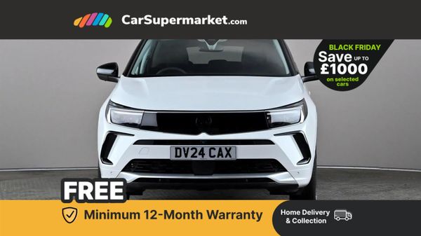 Bluetooth, Cruise Control, Parking Sensors, Lane Departure Warning, Sat Nav, Blind Spot Monitoring, Traffic Sign Recognition, Wireless Phone Charging, Apple CarPlay, Android Auto, Keyless Entry, 19" Alloy Wheels, Rear View Camera, Digital Instrument Cluster, Part-Leather Upholstery;This 2024 Vauxhall Grandland Turbo Ultimate is a standout choice, boasting a clear vehicle history and having had only one owner from new. This impressive SUV features a 1.2 litre petrol engine, meeting Euro 6 emission standards. For your peace of mind, the MOT is valid until July 2027. Notable features include keyless entry and start for effortless access, automatic lighting control that adjusts to ambient conditions, and side blind spot alert to enhance your awareness on the road.