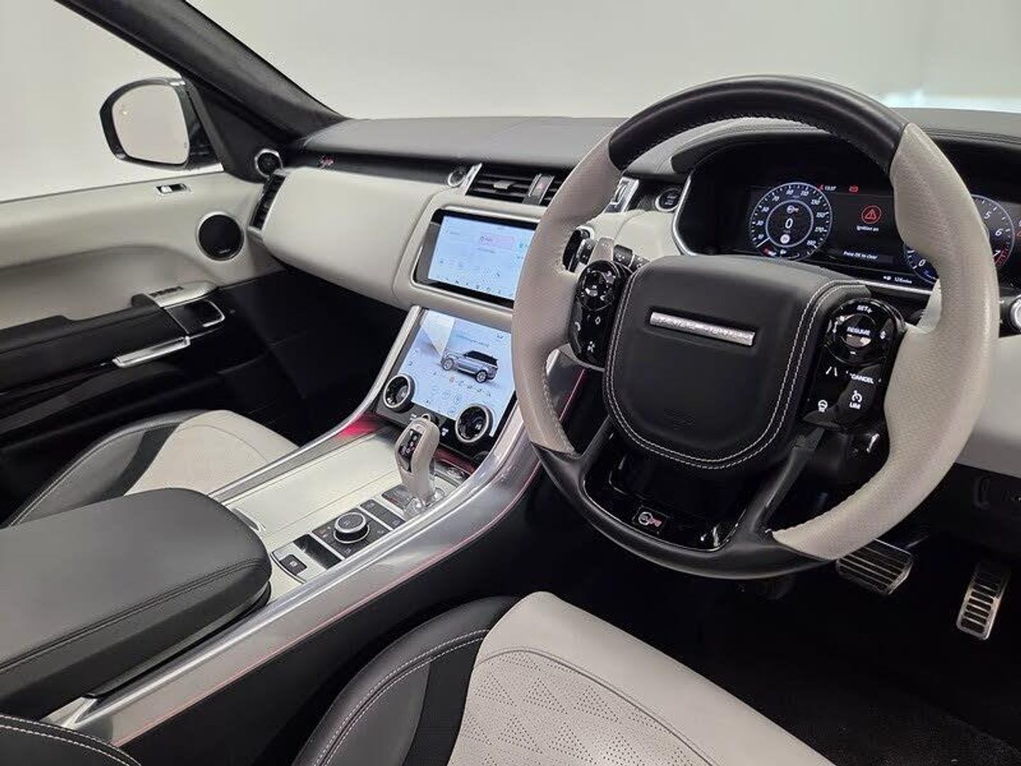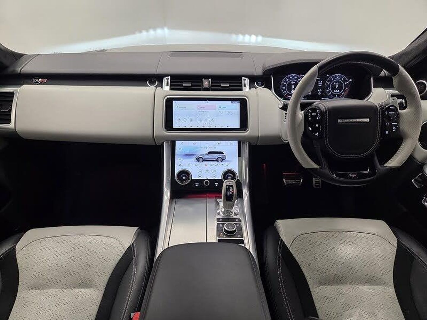22in Alloy Wheels - 5 Split Spoke Style 5083 with Gloss Black Finish,Eiger Grey,Four-Zone Climate Control,Headlining - Morzine - Cirrus,Perforated Windsor Leather with Suedecloth Inserts - Ebony- Cirrus,Privacy Glass,Sliding Panoramic Roof, 12V Power Socket, Android Auto, Apple CarPlay, Bluetooth Connectivity, DAB - Digital Audio Broadcast, InControl Apps, InControl Protect, Meridian Surround Sound System 825W, Navigation Pro, Pro Services and Wi-Fi Hotspot, Remote Premium, Secure Tracker Pro (12 Month Subscription From New), Smartphone Pack, Touch Pro Duo, 360 Degree Parking Aid, Adaptive Cruise Control with Stop and Go, All Terrain lnfo Centre, ATPC - All Terrain Progress Control, Blind Spot Monitor, Configurable Dynamics, Driver Condition Monitor, Lane Departure Warning, Rear View Camera, Terrain Response 2 with Dynamic Program, TPMS - Tyre Pressure Monitoring System, Traffic Sign Recognition and Adaptive Speed Limiter, 21in Alloy Wheels - 5 Split Spoke Style 5091 with Satin Polish Finish, Active Exhaust Control, Aluminium Bonnet, Auto-Dimming Power Fold - Heated Door Mirrors with Memory and Approach Lights, Body Coloured Side Sills and Bumper Corners, Contrast Painted Roof - Narvik Black, Electric Windows with One-Touch Open-Close and Anti-Trap, Front and Rear Recovery Eyes, Heated Rear Window, Heated Windscreen with Heated Washer Jets, Laminated Acoustic Front and Toughened Rear Side Glass, Lightweight Exhaust System, Locking Wheel Nuts, Rear Bumper with Integrated Quad Exhaust Finishers, Rear Fog Lights, Red SV Painted Brake Calipers, Side Repeater Indicators in Mirror, Standard Roof, SVR Badge, SVR Engine Cover, SVR Exterior Styling, Switchable Sports Exhaust, Tyre Repair System, Automatic Headlights, Follow Me Home Lighting, Pixel LED Headlights with Signature DRL, 60-40 Folding Rear Seats, Aluminium Gearshift Paddles, Auto-Dimming Interior Mirror, Bright Metal Pedals, Centre Console with Armrest, Configurable Interior Mood Lighting, Customer Configurable Single Point Entry, Electrically Adjustable Steering Column, Extended Leather Upgrade, Extended Satin Brushed Aluminium Trim Finisher, Front and Rear Cupholders, Front and Rear Grab Handles, Front Door Storage Space, Glovebox - Lockable, Heated Front and Rear Seats, Heated Steering Wheel, Illuminated Metal Treadplates with Brand-Name Script, Interactive Driver Display, Loadspace Compartment Light, Loadspace Cover, Loadspace Mounting Provisions, Non Smokers Pack, Powered Tailgate, Premium Carpet Mats, Push Button Start, Rain Sensing Windscreen Wipers, Rear Centre Armrest, Sunvisors with Vanity Mirrors, SVR Leather Steering Wheel, SVR Performance Seats, Three-Zone Climate Control, Adaptive Dynamics, Electronic Active Differential with Torque Vectoring by Braking, EPAS - Electronic Power Assisted Steering, Gradient Acceleration Control - GAC, Sports Suspension with Dynamic Response, Twin Speed Transfer Box - High-Low Range, ABS - Anti Lock Braking System, Brake Pre-fill, CBC - Cornering Brake Control, Clear Exit Monitor, Customer Configurable Autolock, Driver and Passenger Airbags, DSC - Dynamic Stability Control, EBA - Emergency Brake Assist, EBD - Electronic Brake-Force Distribution, Emergency Braking, EPB - Electronic Park Brake, ETC - Electronic Traction Control, Gradient Release Control, HDC - Hill Descent Control, High Speed Emergency Braking, Hill Launch Assist, Intrusion Sensor, ISOFIX Child Seat Anchor Points, Keyless Entry, Low Traction Launch, Power Operated Child Locks, Rear Traffic Monitor, RSC - Roll Stability Control, Seat Belt Pre-Tensioners, TSA - Trailer Stability Assist
