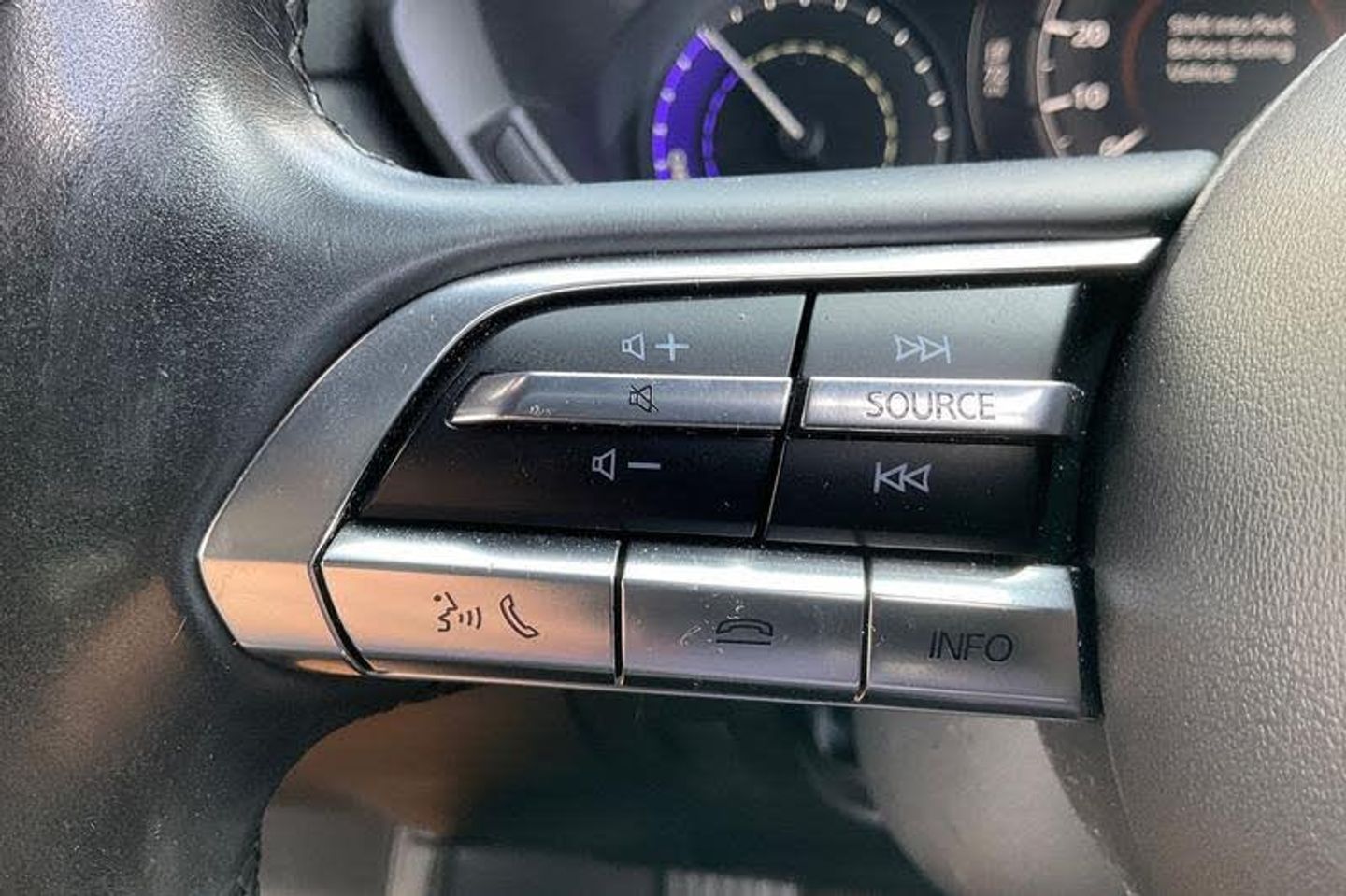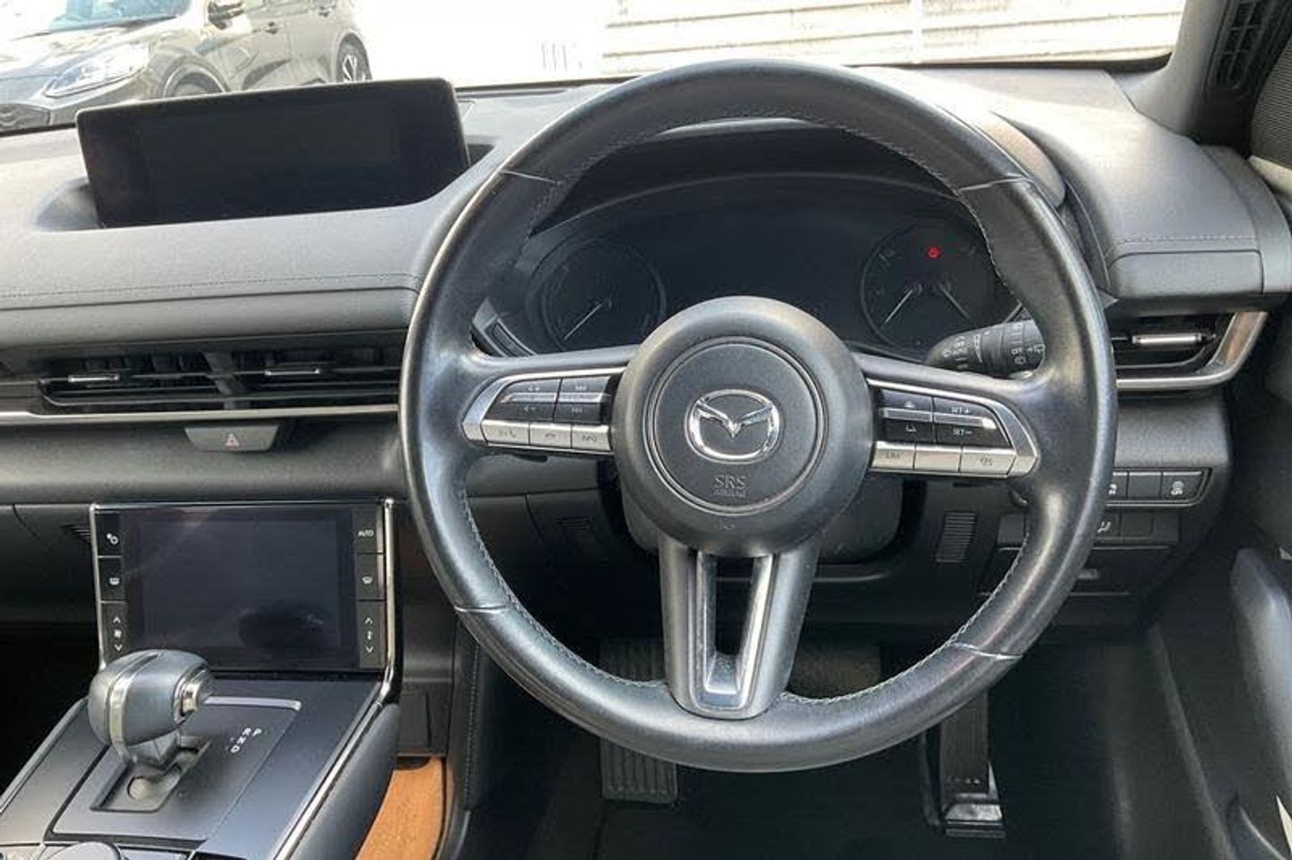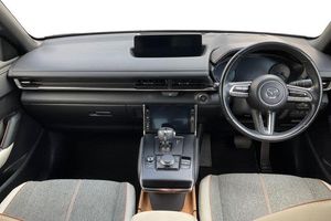 7 TFT Colour driver instrument panel display, 8.8 Colour centre touch screen display with Mazda Connect infotainment, Adaptive cruise control (Mazda radar cruise control) features stop and go, Apple car play/Android Auto, Blind spot monitoring with rear cross traffic alert, Driver attention alert system, E-call with GPS, Engine start/stop button, Front and rear parking sensors, Head up Display, Integrated bluetooth, Integrated Mazda navigation system, Lane keep assist system (LAS) with Lane departure warning system (LDWS), PAS, Reversing camera, Service indicator, Trip computer, Window projected colour active driving display (head up display) with traffic sign recognition, Auto dimming driver's door mirror, Black front grille, Body coloured bumpers, Brilliant Black roof, Dusk sensing headlights, Electric front windows with one touch auto up/down, Electrically adjustable door mirrors, Frameless auto dimming interior rear view mirror, Grey metallic side panels, Heated and auto power-folding door mirrors in black with integrated indicator lights, High beam assist, LED daytime running lights, LED Headlights, LED rear combination lights with LED rear turn lights, Piano Black window trim, Privacy glass (rear side windows and rear screen), Rain sensing front wipers with adjustable speed and intermittent wipe, Rear side wing doors, Rear wiper, Satin Trim on D Pillar, 3 seat bench in 2nd row, 60/40 split fold down rear seats, 7-inch colour touch-screen for climate control settings, 8-way power adjustable driver seat with memory linked to door mirror and Active Driving Display, Chrome interior trim accents with steering wheel centre bezel, surround of engine start / stop button and glove box handle, Climate control air conditioning, Cloth/leatherette upholstery, Folding rear centre armrest with two cup holders, Front and rear (x3) head restraints, Front and rear centre armrest, Heated front seats with 3 stage setting, ISOFIX child seat anchorage points attached on outer rear seats, Leather wrapped steering wheel with telescopic and tilt adjustment, Paddle shifter, Passenger seat manual height adjustment, Power driver lumbar support, Single front passenger seat, Tonneau cover, USB and 12V Outlet, 3 point ELR front seat belts x2 with pretensioners, 3 point ELR rear seat belts, Anti-lock braking system (ABS), Collision avoidance braking, Driver/Front Passenger airbags, Drivers knee airbag, DSC - Dynamic Stability Control, Electric G-Vectoring control plus, Electronic parking brake with auto disengage function and auto hold function, Front and rear curtain airbags, Front passenger airbag cut-off switch, Front side airbags, Front Smart Brake Support with Pedestrian Detection, Hill hold assist, Rear door child safety locks, Regenerative braking system, Seatbelt reminder for driver/front passenger and rear seats, Smart Brake Support with Turn-Across Traffic, Traction control system (TCS), Tyre pressure monitoring system (TPMS)