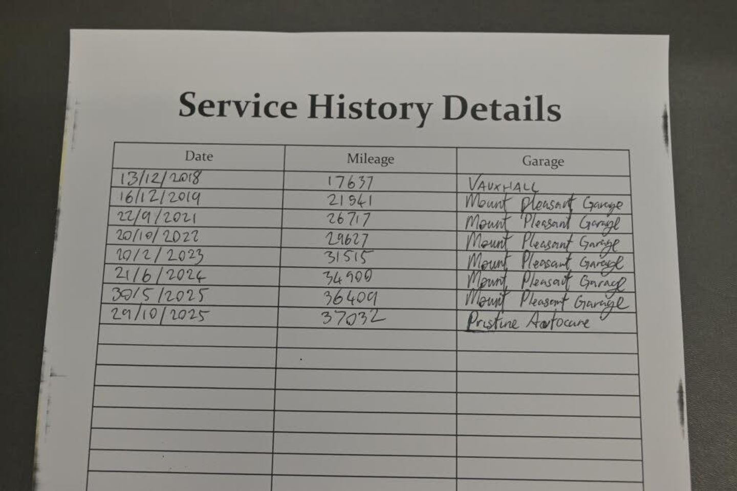 - Mileage