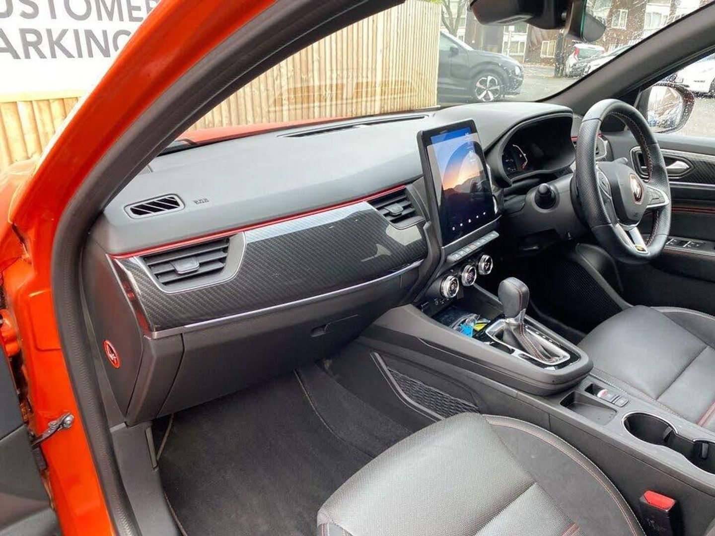 18in Alloy Wheels - Silverstone Diamond with Red Inserts, 7in TFT Driver Information Display, ABS with EBA - Emergency Brake Assist, Active Emergency Braking System - AEBS, Adaptive Cruise Control with Speed Limiter, Airbags - Deactivation - Front and Side - Driver and Passenger, Anti Drill Door Locks and Locking Fuel Cap, Auto Dimming Rear View Mirror, Automatic Climate Control with Combined Filter - Humidity Sensor - Air Quality Sensor, Automatic Headlights, Automatic Windscreen Wipers with Rain Sensors, Black Interior Roof Lining, Black Side Door Protection with Gun Metal Insert, Blind Spot Warning, Bluetooth - DAB Radio and USB Ports, C-Shaped LED Front Signature Lighting, Carbon Style Soft Touch Dashboard, Central Console with Storage, Central Door Locking, Chrome Decopart on Wing - Fender Molding - with RS Line Badge, Deadlocking, Distance Warning Alert, Door Mirrors - Electrically Adjustable and Foldable with Defrosting and Temperature Sensor, Double Chromed Exhaust Tailpipes Elements, Driver and Passenger Front - Side - Head and Curtain Airbags, Driver Seat Belt Height Adjustable, Easy Link 9.3in Portrait Touchscreen with Navigation - Google Search - Traffic Information, EBD - Electronic Brake Distribution, ECO Mode Function, Electric Windows - Front and Rear, Electronic Parking Brake with Auto-Hold Function, ESC - Electronic Stability Control, Extra Tinted Windows - Rear and Tailgate, Frameless Rear-View Mirror, Front and Rear No Seatbelt Warning Sound, Front Bumper with F1 Blade and Honeycomb Front Grille, Front Driver Window with One Touch Facility and Anti-Pinch Function, Front Grille with Chrome on Upper Part, Full LED Headlights, Gear Change Indicator, Gun Metal Front and Rear Skid Plates, Hands Free Parking, Handsfree Keycard - Keyless Access and Start, Headlights - Automatic High-Low Beam, Heated Steering Wheel, HSA - Hill Start Assist, ISOFIX Child Seat Fixing Points on Rear Outermost Seats, LDW - Lane Departure Warning, LED Front and Rear Rooflights, LKA - Lane Keep Assist, MULTI-SENSE - 3 Driving Modes and 8 Ambient Lighting, Parking Pack, Parking Sensors - Front and Rear, Pedals - Aluminium, RAID - Renault Anti Intruder Device - Automatic Door Locking, Rear Air Vents, Rear Door and Window Child Locking Function - Front Driver Door Control Panel for Rear Door, Rear Seats - 60-40 Split and Fixed Base, Rear Wiper, Rear-Cross Traffic Alert, Rear-View Camera, Renault Automatic Emergency Assist, Seats - Drivers Height Adjustment, Seats - Passenger Height Adjustment, Shiny Black Shark Fin Antenna, Smartphone Integration with Apple CarPlay and Android Auto, Steering Wheel - Height and Reach Adjustable, Steering Wheel - RS Line Perforated Leather with Red-Black Harmony and RS Line Badge, Traffic Sign Recognition with Overspeed Prevention, Trip Computer, Tyre Inflation Kit, Tyre Pressure Warning Light, Valencia Orange, Variable Power Assisted Steering - Electrical, Winter Pack, Wireless Charging for Smartphone