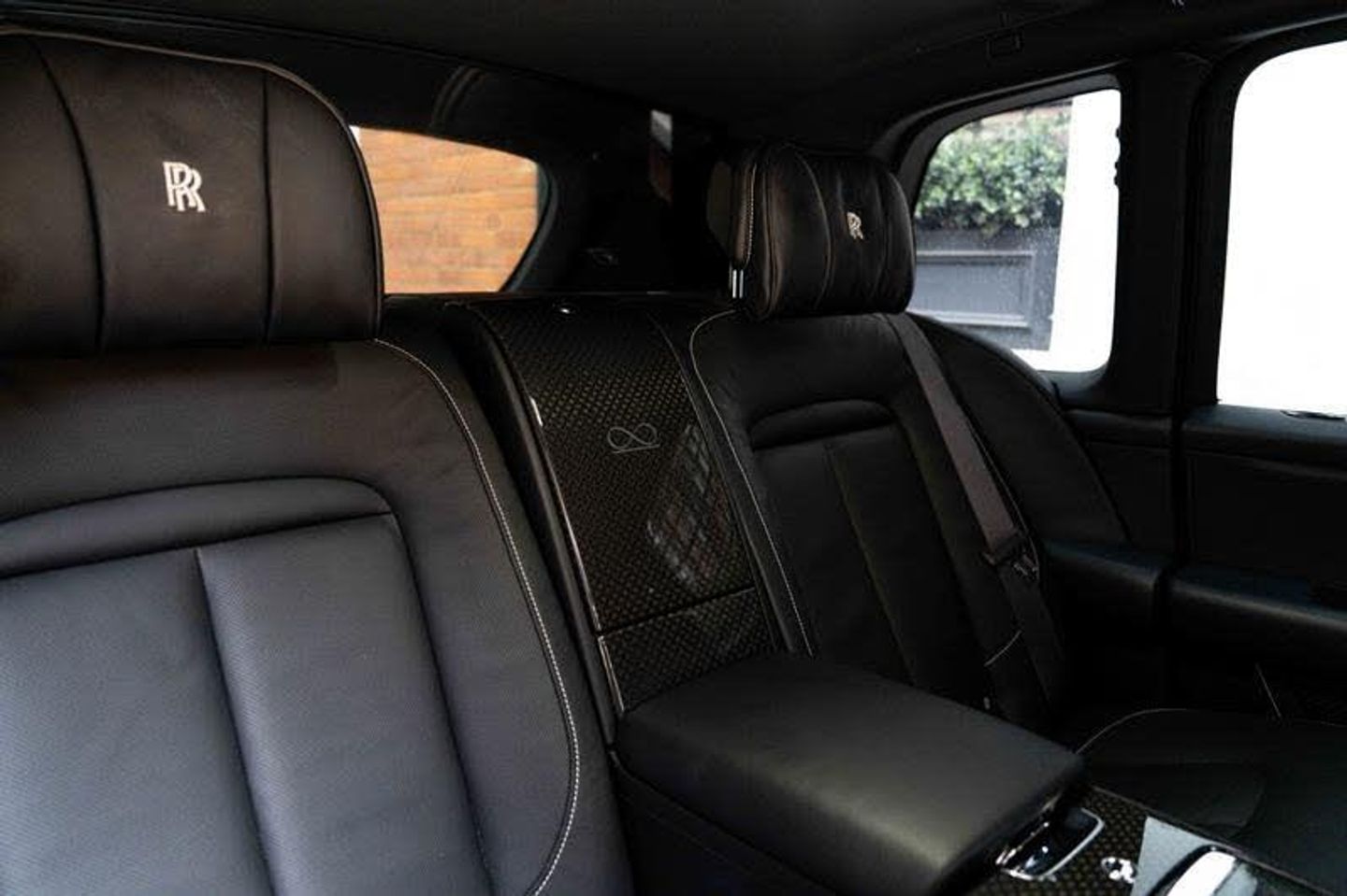 Tyre Pressure Monitor, Universal Garage Door Opener, Comfort Entry System, Panorama Sunroof, Rear Privacy Glass, Front Ventilated Seats, Front And Rear Ventilated Seats, Individual Seat Configuration, Ambient Air Package, Rear Massage Seats, Front Massage Seats, Park Distance Control (PDC), High-Beam Assistance, Driving Assistant, Active Cruise Control With Stop & Go, Surround View, Park Assistant, Stolen Vehicle Tracking, TV Function, Navigation System, Head-Up Display, DAB Tuner, Intelligent Emergency Call, Teleservices, Connected Drive Services, Real Time Traffic Information, Apple CarPlay, Rear Theatre Configuration, Telephony With Wireless Charging, Night Vision With Pedestrian Recognition, WiFi Hotspot Preparation, Signature Key - Black, RR Monogram To All Headrests - Seashell, Coloured Stitching - Seashell, 22inch Part Polished Black Badge Wheel, Lambswool Footmats, Extended Leather Headlining, Automatic Door Close, Dark Chromed Spirit Of Ecstasy, Rolls-Royce Bespoke Audio, Fixed Rear Seat Middle Console, Veneer - Fibre Black Badge, Driver Assistance Systems, Immersive Seating With Centre Console, Illuminated Black Badge Treadplates, Red Brake Calipers, Thicker Black Steering Wheel