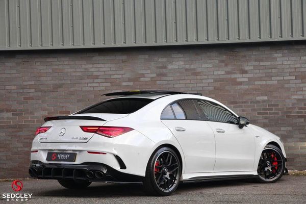 2020 MERCEDES CLA 45S PLUS AMG FINISHED IN DIGITAL WHITE (VIDEO ATTACHED IN PHOTO SECTION), FULL MERCEDES SERVICE HISTORY, ELECTRIC PANORAMIC GLASS SUNROOF, BURMESTER PREMIUM SURROUND SOUND SYSTEM, EXCLUSIVE BAHIA BROWN LEATHER INTERIOR, AMG AERODYNAMIC PACKAGE WHICH INCLUDES REAR DIFFUSER, REAR BOOT SPOILER, FRONT SPLITTER, FRONT CANARDS AND SIDE SKIRT, AMG SWITCHABLE SPORTS EXHAUST, PERFORMANCE BUCKET SEATS, AMG DRIVER'S PACKAGE, ELECTRIC FRONT HEATED SEATS WITH MEMORY FUNCTION AND ADJUSTABLE LUMBAR SUPPORT, 19'' AMG FORGED CROSS SPOKE GLOSS BLACK ALLOYS WITH RED AMG BRAKE CALLIPERS, REVERSE CAMERA WITH PARK ASSIST, AMG HIGH PERFORMANCE BRAKING SYSTEM, ACTIVE LANE KEEPING ASSIST, KEYLESS ENTRY AND KEYLESS GO, LIGHT AND SIGHT PACKAGE, AMG DYNAMIC SELECT, AMG NIGHT PACKAGE, BLIND SPOT MONITORING ASSIST, CRUISE CONTROL WITH LIMITER, PRIVACY GLASS, MULTI BEAM LED HEADLIGHTS WITH ADAPTIVE HIGH BEAM ASSIST PLUS, AMG PERFORMANCE 4MATIC PLUS WITH TORQUE CONTROL, ATTENTION ASSIST, ELECTRIC ADJUSTABLE HEATED DOOR MIRRORS WITH INTEGRATED LED INDICATORS, ALARM SYSTEM WITH IMMOBILISER, THERMATRONIC LUXURY TWO ZONE CLIMATE CONTROL, BRAKE PAD WEAR INDICATOR, ADAPTIVE BRAKE ASSIST WITH HOLD FUNCTION, CRASH SENSOR, AUTOMATIC HEADLAMP ACTIVATION, HEY MERCEDES VOICE ACTIVATION, HIGH LEVEL THIRD BRAKE LIGHT, ILLUMINATED MERCEDES AMG DOOR SILLS, 10.25'' SCREEN DISPLAY, 64 COLOUR INTERIOR AMBIENT LIGHT PACKAGE, SMARTPHONE INTEGRATION WITH APPLE CARPLAY AND ANDROID AUTO, TRAFFIC SIGN ASSIST, TYRE PRESSURE MONITORING SYSTEM, WE ARE AN AWARD WINNING DEALERSHIP, GREAT PART EXCHANGE PRICES PAID, CERAMIC DETAILING PACKAGES AVAILABLE, GHOST IMMOBILISER AND TRACKER INSTALLATION AVAILABLE, NATIONWIDE DELIVERY, ALL VEHICLES ARE HPI CLEAR, £199 ADMIN FEE APPLIES, FOLLOW US ON INSTAGRAM @SEDGLEYGROUP, PLEASE CALL US ON 0161 750 6070 OR 07555 658 658.-PANROOF|EXCL LEATHER|BURMESTER-5 DAYS INSURANCE PROVIDED - HPI CLEAR - CREDIT DEBIT CARDS ACCEPTED - WE ALSO DELIVER NATIONWIDE