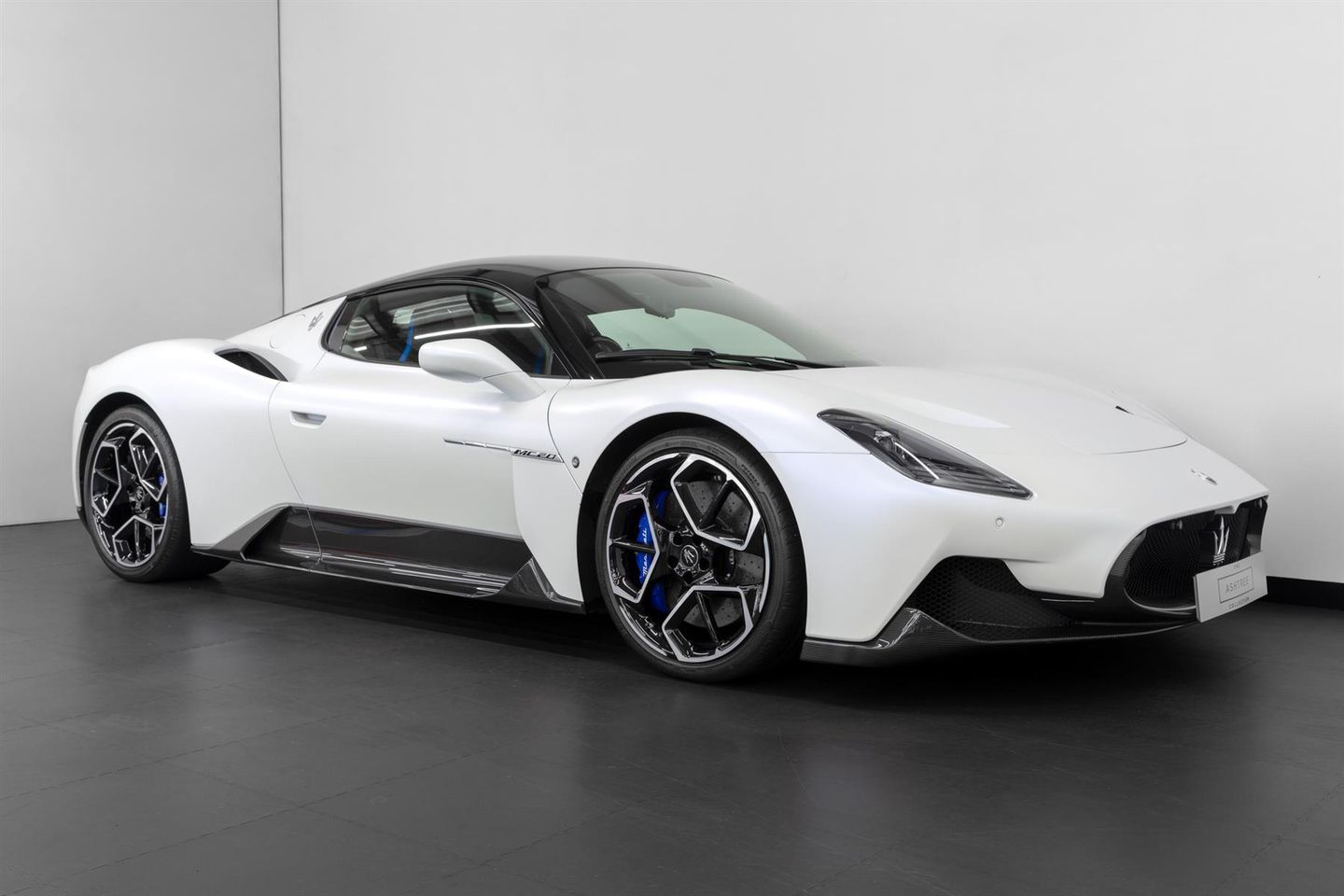 We proudly present this stunning Maserati MC20 Coupe, finished in Bianco Audace Matt paintwork with extended Alcantara interior trim with contrast stitching and Laser effect Nero with Blu Cielo.