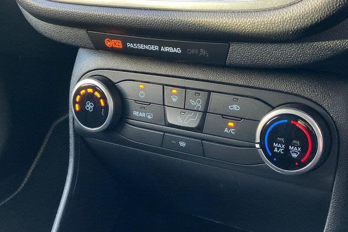 4.2 Colour TFT Ice blue illumination analogue cluster, Driver alert system, Electric power steering, Ford easy fuel, Lane keep assist, Lane keeping aid, Rear parking distance sensors, Selectable drive modes (Normal, Sport, Track), Trip computer, 3rd brake light, Auto high beam, Automatic headlights, Body colour bumpers, Body coloured electrically operated with side indicators, Electric front windows/one touch facility, Electric rear windows, High gloss chrome surround with satin grille insert, Quickclear heated windscreen, Rain sensing wipers and auto dimming rear view mirror, Rear privacy glass, Rear side wing doors, Rear wiper, 3 rear headrests, 3 seat bench in 2nd row, Adjustable head restraints, Centre console with opening armrest, 2x cupholders, 12v and USB, Cloth upholstery with metal grey stitching, Leather gear knob, Manual 2 way passenger seat adjust, Manual 4-way driver seat adjust, Manual air conditioning, Premium floor mats, Sensico wrapped steering wheel, Single front passenger seat, 3 point seatbelts on all rear seats, Electronic stability control with hill start assist, Front and rear seat belt warning, Manual child lock in rear doors, Tyre pressure monitoring system