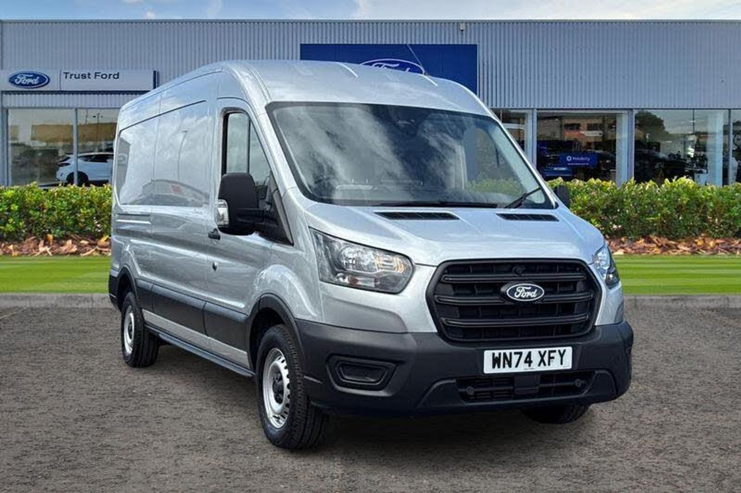 LANE KEEPING AID uses forward looking cameras to detect if youre unintentionally drifting out of a lane - Lane keeping alert then warns you and if you dont respond the vehicle provides steering torque assistance to help guide you safely back into the right lane, HILL START ASSIST temporarily stops you rolling backwards or forwards when making a hill start - maintaining pressure to the braking system for an extra 25 seconds giving you more time and control as you move your foot from the brake to the accelerator, REAR PARKING SENSORS are designed to help you park more confidently helping you judge the distance between your vehicle and obstacles, BLUETOOTH HANDS FREE WITH VOICE CONTROL allows you to operate both your mobile phone and Ford audio system - controlling several functions using a set list of simple voice commands, CRUISE CONTROL provides extra comfort on longer journeys allowing you take your foot off the acceleration whilst just focusing on steering the vehicle, Automatic windshield wiper, Daytime running lights, Curvature Control, Vehicle maintenance monitor, ABS + ESP + Hill start assist, Selectable drive mode, Intelligent Speed Assist, Electronic dynamic cornering control, Auto start/stop system, PAS, Single rear wheels, Rear mudflaps, Trip computer, Warning lights, Reach and rake adjustable steering column, High mounted stop lamp, Front passenger airbag deactivation, Audio controls mounted on steering wheel, 2 x 12V power outlets, Cold start (-20), Water in fuel filter with sensor, Gearshift indicator light, Easy fuel capless refuelling system, Tyre pressure sensors, Paddle shift, Side wind mitigation, DAB Radio, Emergency assistance, Electric parking brake, Rear fog lights, Overhead console, Emergency brake warning, Radio with remote stalks, Rear axle Alt A - Narrow track, Integrated indicators on door mirrors, Driver one touch up/down power windows, Polyurethane gear shift knob, Header courtesy lights, Driver and passenger seatbelt reminder, Partial rubber inside floor cover, Speed dependent power lock group, Partial molded headliner, Quad beam headlamps, Passenger airbag restraint, Storage box under dual passenger seat, Driver large head/short arm mirror, Load compartment tie down loops, Auto high headlamp, Rain sensing windscreen wipers, Self coloured door handles, Plastic rear bumper, Wrong way alert, Driver front seatbelt buckle pretensioner, 4 radio speakers, Roof mounted radio antenna, 16 steel wheels x 6.5, 8 Part digital instrument cluster, Wireless beltminders, Lane centering assist, Rotary gear shifter, Model badge, 2 litre twin facia mounted bottle holder, Body coloured upper front bumper, Self coloured lower front bumper, Self coloured rear bumper with integral step, Self coloured front grille, Wide bodyside self coloured mouldings, Self coloured cargo door handle, 4 spoke polyurethane steering wheel, Front independent MacPherson struts, linear rate coil springs, stabiliser bar, gas pressurised shock absorbers and rear leaf springs, EURO 6, ULEZ COMPLIANT, ULEZ, LONG WHEEL BASE, MEDIUM ROOF