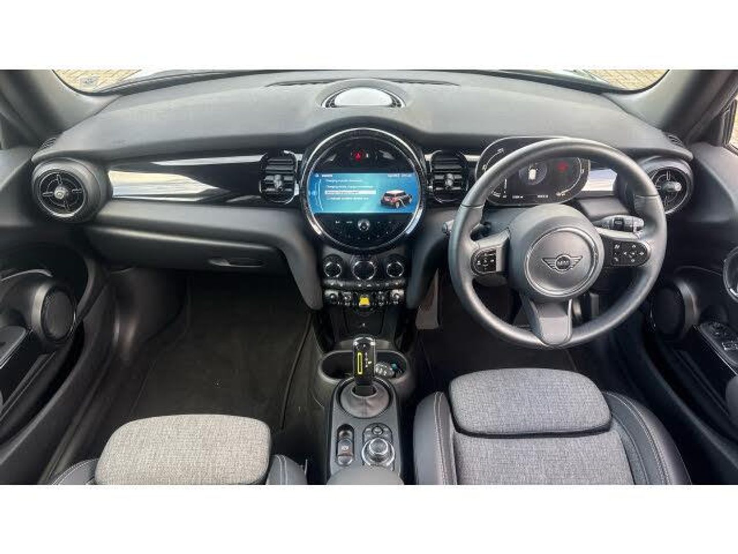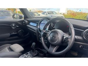 Black velour floor mats, Electric front+rear windows, Heated rear window, Heated windscreen washer jets, Rear window wiper, Rain sensor window wipers, DSC - Dynamic Stability Control, Electronic parking brake, Anti-lock Braking System (ABS), Front and rear disc brakes, Compatible mobile phone bluetooth with audio streaming, Flexible car sharing preparation, Rear park distance control, Rear view camera, MINI Driving Modes - centre toggle switch to control driving setting (sport, mid and green), Electro-mechanical speed dependant steering assistance, Brake energy recuperation toggle switch with two settings, On board computer, Service interval indicator, Digital cockpit, Digital instrument cluster, Digital dashboard display, Auto dimming and folding door mirrors, Piano black interior trim, Surface chequered black interior trim, Electric front motor installed drives front wheels, FM tuner and DAB digital radio