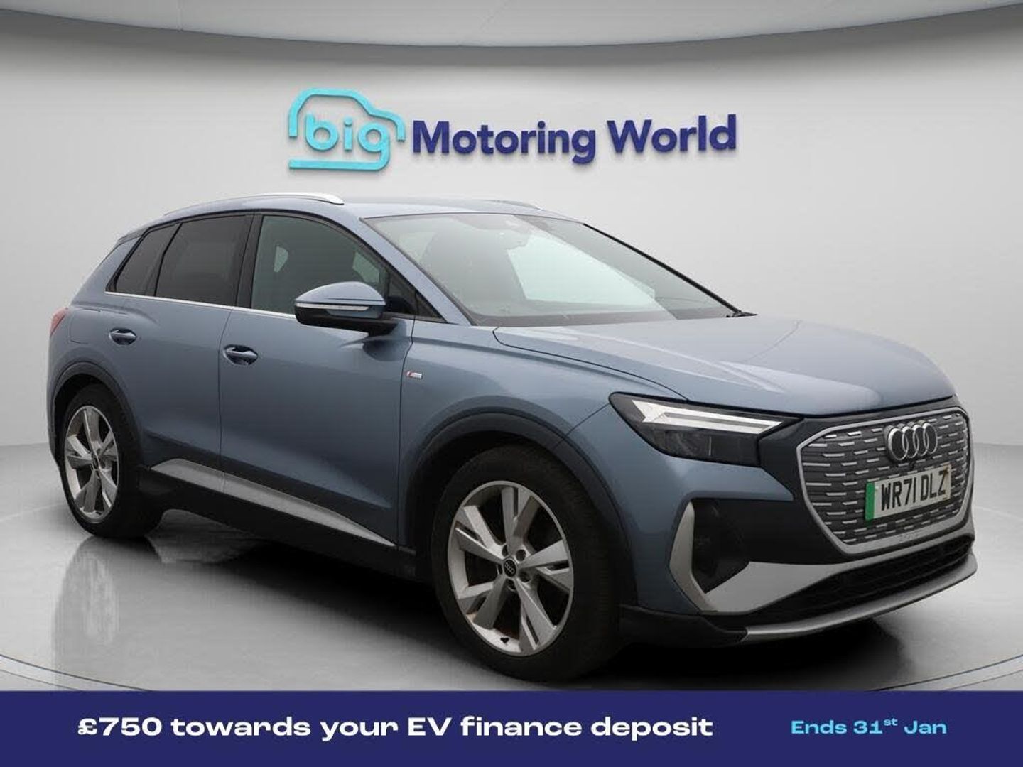 Apple CarPlay,Android Auto-Our Audi Q4 e-tron is finished in Blue. Specification includes a range of fantastic features including Apple CarPlay, Android Auto, Satellite Navigation, Privacy Glass, Heated Seats, Virtual Cockpit, Rear View Camera, Bluetooth, Audi Connect, 2 Zone Climate Specification information is supplied by CAPHPI and may vary to the actual car. This data does not form any part of a buying contact. Please check specification prior to purchase in-store. The MOT is valid until October 2026, visit bigmotoringworld.co.uk for more photos, a 360 tour, service history and a free HPI report.Were BIG on peace of mind and this Blue Audi Q4 e-tron has completed our comprehensive 200 point inspection and passed all checks. Its ready for you to drive away with immediate collection in-store. We include a 90-day warranty as standard plus an option to extend for up to 3 years.Reserve this car exclusively for you, safely and securely at bigmotoringworld.co.uk, with a fully refundable £99 deposit. Test drive before you buy, with no commitment, no hassle and a completely haggle free experience. Still searching and want to see thousands more cars? We are BIG on choice with over 8000 cars to choose from.Visit our award winning web site bigmotoringworld.co.uk.Were Big Motoring World and were BIG on what matters to you.