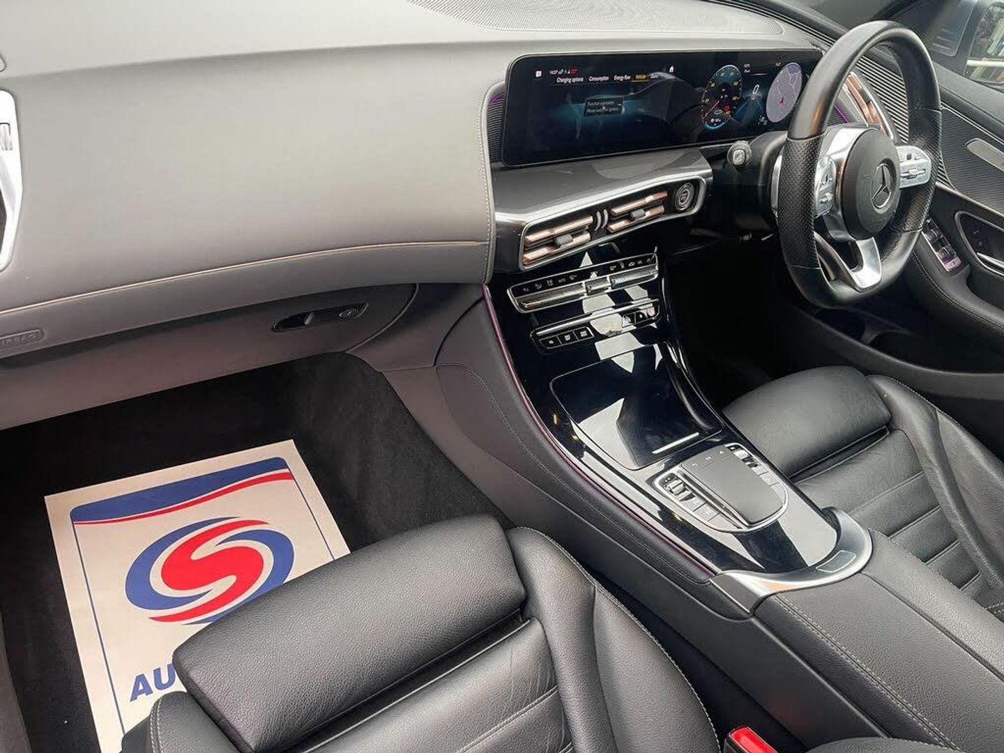110kW DC On-board Charger, 12V Socket in Load Compartment, 20in Alloy Wheels - Multi-Spoke Aero Design - Painted Black with a High-Sheen Finish, 7.4kW On-board Charger, ABS - Anti-Lock Braking System, AMG Brushed Stainless Steel Sports Pedals with Black Rubber Studs, AMG-Specific Front Apron in a Jet-Wing Design, AMG-specifc Rear Apron with Visible Air Outlets, AMG-specific Black Panel Radiator Grille in a Twin-blade Design and Surround in High-gloss Black, Active Brake Assist, Active Lane Departure Warning, Airbags - Driver and Front Passenger, Aluminium - Running Boards, Ambient Lighting, Anti-Theft Protection Package, Badge on the Wing in High-Gloss Black with Chrome Stripes and Blue EQC Lettering, Blind Spot Assist, CCS-2 Connector - Combined Charging System - Compatible with AC and DC, Charging Cable for Wallbox and Public Charging Stations - Type 2 Mode 3 - 4m, Cruise Control, Dashboard in ARTICO, Digital Radio, Dynamic Select, EASY-PACK Powered Tailgate, EQ Navigation Services, Electric Windows - Front and Rear, Exterior Mirrors in Vehicle Colour, Floor Mats - AMG, Front and Rear LED Light Bands, Hard-Disk Navigation, Heat and Noise Insulating Acoustic Glass, Heated Front Seats, IONITY 1 Year, Interior Lighting Package, KEYLESS-GO Comfort Package, Live Traffic Information, MBUX - Mercedes-Benz User Experience - Infotainment System, MBUX Multimedia System with 10.25-inch Instrument Display and 10.25-inch Media Display with Touchscreen, MULTIBEAM LED Headlights, Mercedes Me Connect - Vehicle Monitoring, Mercedes Me Connect - Vehicle Set-Up, Mercedes-Benz Sound System - 225 W, Mirror Package, Parking Package Including Active Parking Assist and Reversing Camera, Power Assisted Steering, Privacy Glass, Roof Lining - Black Fabric, Seat Comfort Package, Seats - Rear Split Folding 40-20-40, Steering Wheel - Flat-Bottomed Multifunction Steering Wheel in Nappa Leather, Stowage Package, Summer Tyres, TIREFIT, Trim - Anthracite Carbon-Fibre Look Trim with High Gloss Black Centre Console