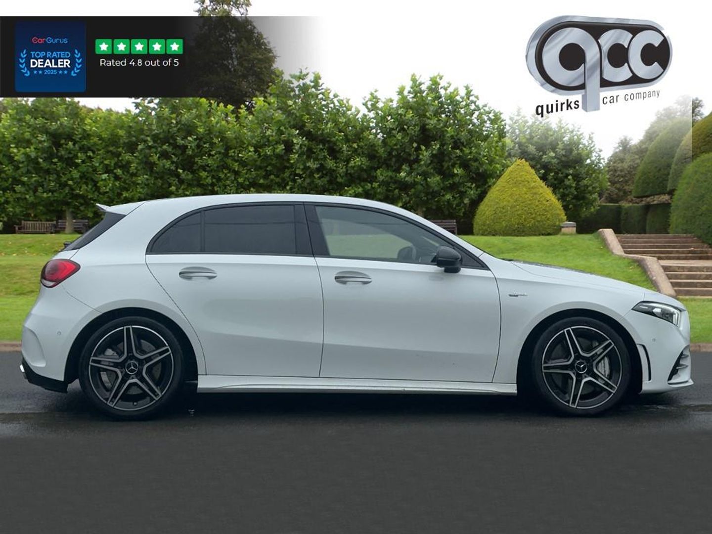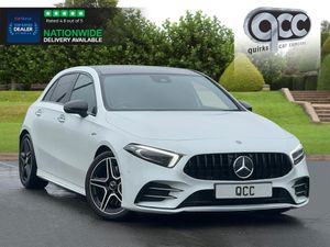 NATIONWIDE DELIVERY AVAILABLE! THIS MERCEDES A35 2.0 AMG FINISHED IN DIGITAL WHITE METALLIC WITH GREY LEATHER BENEFITS FROM THE FOLLOWING SPECIFICATION, PREMIUM PLUS PACK, ELECTRIC PANORAMIC GLASS SUNROOF WITH ELECTRIC BLIND, AMG EXCLUSIVE PACKAGE, 18" ALLOYS, BLACK PANAMERICANA FRONT GRILLE, BURMESTER SOUND SYSTEM, TOUCH SCREEN WITH SAT NAV, REAR VIEW REVERSE CAMERA, DIGITAL DASH, DYNAMIC DRIVING MODES, M/F/S/WHEEL WITH CRUISE CONTROL, PADDLE SHIFT AND VOICE CONTROL, ELECTRIC HEATED MEMORY SPORTS SEATS WITH LUMBAR SUPPORT, BRUSHED ALUMINIUM INTERIOR TRIM, ELECTRIC FOLDING EXTERIOR MIRRORS, FRONT AND REAR PARK DISTANCE CONTROL, DUAL ZONE AIR CON CLIMATE CONTROL, AUTOMATICALLY DIMMING REAR VIEW MIRROR, AUTOMATIC HEAD LIGHTS, AUTOMATIC HIGH BEAM CONTROL PLUS (IHC+), AMBIENT LIGHTING, BLUETOOTH PHONE PREP, APPLE CARPLAY, ANDROID AUTO, PRIVACY GLASS, ISOFIX POINTS, CENTRE ARM REST, PAN ROOF, QUIRKS CAR COMPANY ARE VERY PROUD WINNERS OF RUNNER UP FOR AUTOTRADER RETAILER OF THE YEAR 2021, WINNERS OF AUTOTRADER HIGHLY RATED FOR OUR CUSTOMER SERVICE 2021/20, AND WINNERS OF CAR GURUS TOP RATED DEALER 2021/20/19. WE USE THIRD PARTY SOURCES TO OBTAIN STANDARD AND OPTIONAL FITTED FEATURES AND SPECIFICATIONS. WE CANNOT BE HELD LIABLE FOR ITS ACCURACY SO PLEASE VERIFY THESE DETAILS WHEN VIEWING THE VEHICLE PRIOR TO PURCHASE. YOU MUST PHYSICALLY CHECK THE SPECIFICATION OF THE VEHICLE ON SITE PRIOR TO PURCHASE.