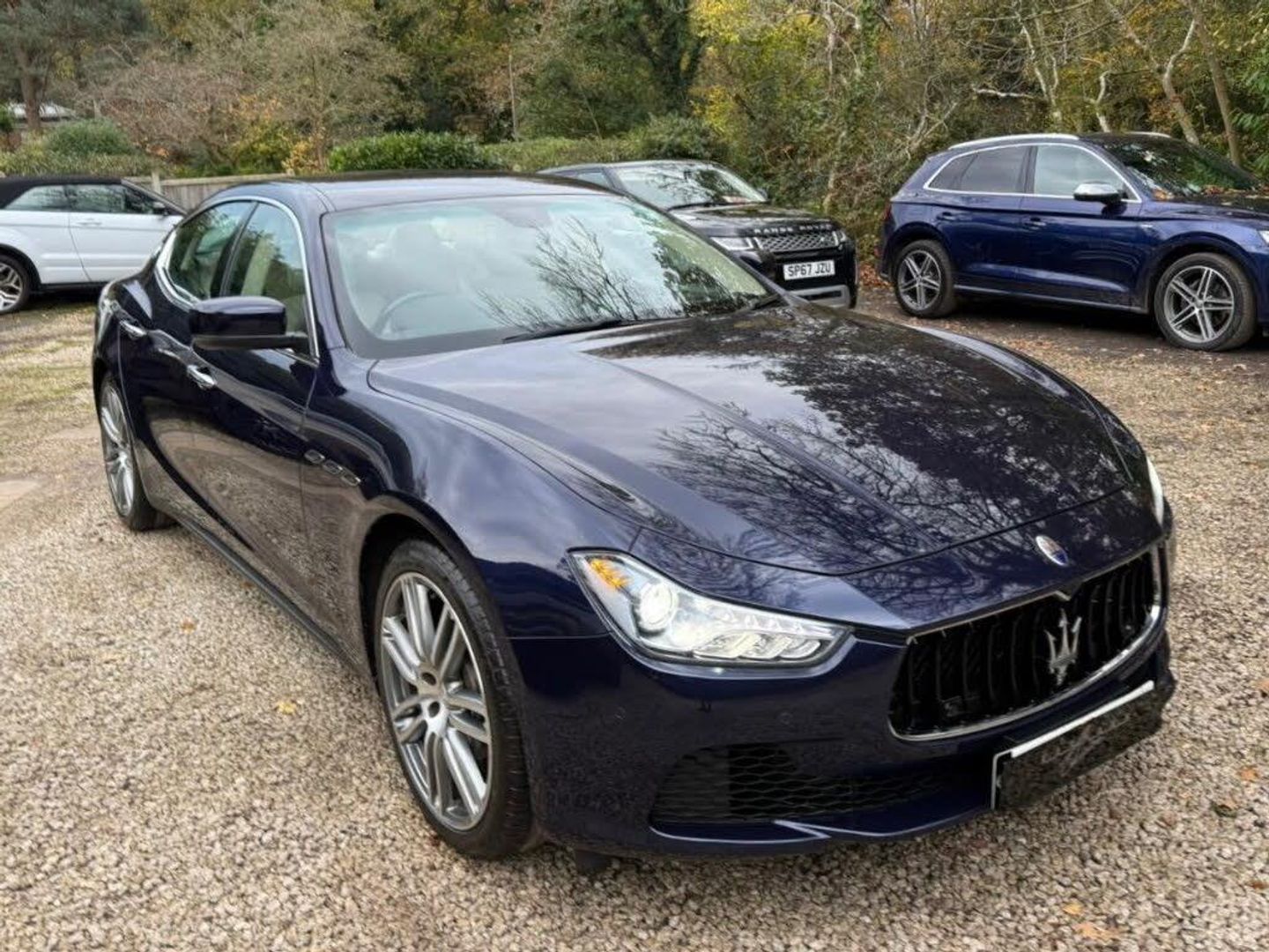 Blue interior.1 OWNER,FSH,20" Alloys,ULEZ & Lovely,Just Arrived From Stratstones As A PX This Fabulous Example Of A Maserati Ghibli 3.0 Turbo Diesel,20k Warranted Miles & Supported With A Full Service History,Lovely Specification,Presented In BLUE PASSIONE PEARL Complimented With Champagne Cream Leather & Champagne Twin Stitch,MASERATI EMBOSSED SEATS,Secondary Hide In Ebony Leather,Ebony Carpets-Compliments The Champagne Cream Leather & Easy To Keep Clean,Ebony Luxury Carpet Overmats Piped In Ebony Leather,Extended Leather Package Throughout Cabin,Sports Seats,Fully Electric Memory Seats,Heated Seats,Isofix Seats,Champagne Seat Belts,Twin Opening Arm Rest,Cupholders,3 Spoke Multi-Function Sport Steering Wheel In Ebony Leather With Ally Inlays,Electric Steering Wheel Rake Adjust,Paddle Shift Gears,Automatic Dual Climate Control,Cruise Control,Front & Rear Parking Aids,Power Release Trunk,Rain Sensor Wipers,On Board Trip Computer,Smart Key,Push Button Start,Auto Bi-Xenon Lights With Dynamic Control & Cornering Function,Headlight Wash System,DRL Daytime Running Lights,LED Rear Tail Lights,Electric Windows,Electric Power Folding Mirrors-Open & Close Upon Locking,Burr Walnut Dash Inlays,Ally Dash Inlays,Digital Display,Ambient Lighting To Cabin,Stainless Steel Door Entry Plates,Model Branding,Maserati Dash Clock,Factory Satellite Navigation,Touch Screen Control,DAB Hi-Fi,AUX Input,Mobile Phone Preparation,6 CD,Reverse Camera,Upgrade Sound Package,Voice Recognition & Audio Processing-Sounds Good! Heated Screens,Start Stop Function,Traction Control,EXTERIOR LUSSO PACKAGE,Exterior Bright Chrome Package,Ally Maserati Wing Flutes/Rear Quarter Maserati Emblems/Door Handles/Window Surrounds/Bright Finish Front Grille/Boot Strip & Model Branding,Stainless Steel Quad Exit Exhaust Tips,Sports Exhaust-Sounds Awesome For A Diesel,20" 7 Twin Spoke Alloys In Chrome Finish,Recently Replaced Tyres,Bright Finish Wheel Centres,Gloss Black Brake Callipers With White Maserati Branding,LOVELY WITH NO PRIVACY GLASS,Fabulous Colours,Fabulous Specification,HPI CLEAR,2 Keys,Private Plate Included,Full Service History,20k WARRANTED MILES! Will Be Supplied With 1 Year Warranty,1 Year MOT,Full Service,Full Tank Of Fuel,Will Be Valeted With Teflon Detail,Videos Available,Delivery Arranged,Finance Arranged,May Consider A PX,FANTASTIC PERFORMANCE & MPG,SUCH AN AMAZING MOTOR CAR,A LOT OF FLASH FOR LITTLE CASH! ULEZ APPROVED,KARMANN CLASSIC CARS,MODERN DAY KLASSICS,RIPLEY,SURREY,CLASSIC CARS & PORSCHE ALSO PURCHASED
