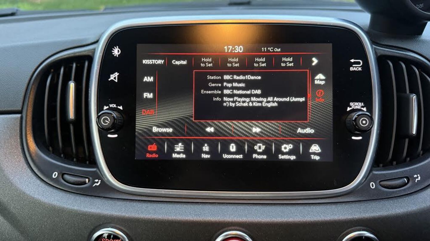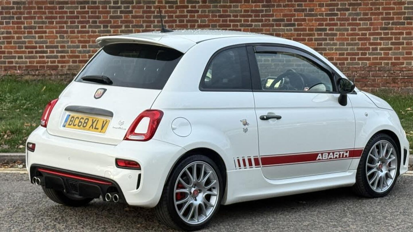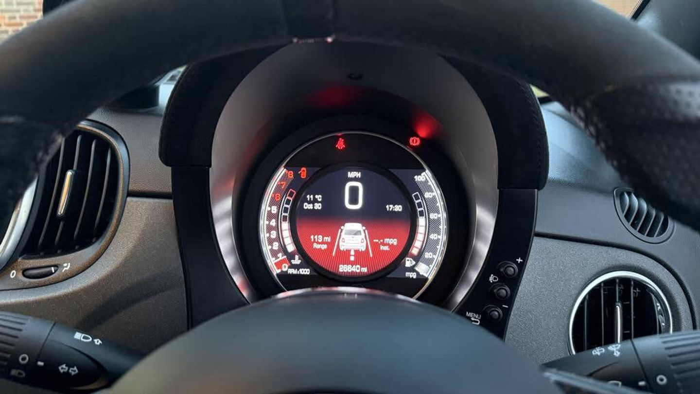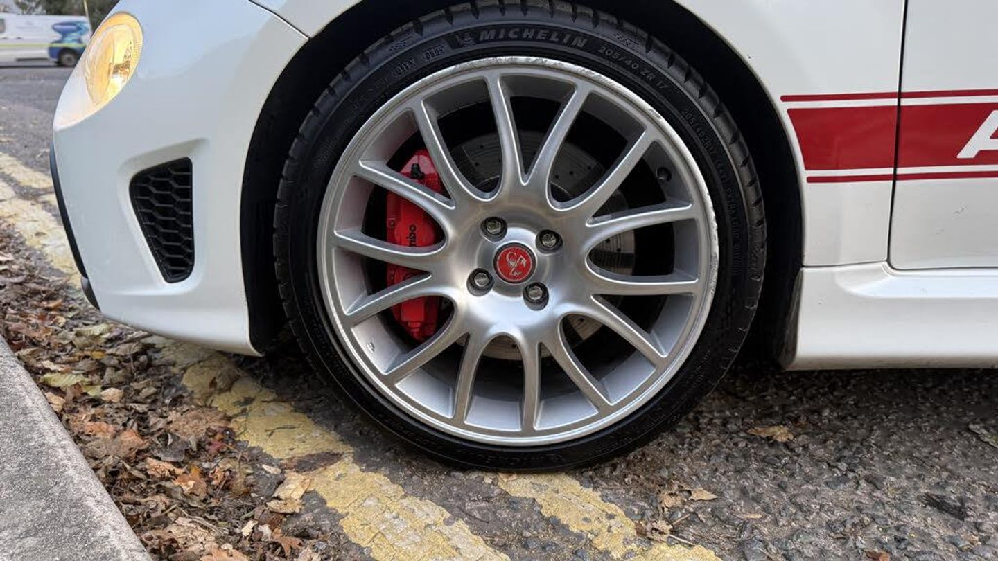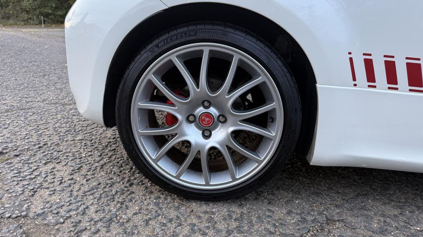 Dualdrive PAS, Rear parking sensors, Sports button, TFT display screen, Trip computer, U-connect access via mobile, Koni rear suspension with FSD technology (Frequency Selective Damping), Sports suspension, Torque transfer control (TTC), Bluetooth audio streaming, Anthracite bumper inserts, Body coloured bumpers, Dark tinted rear windows, Dual mode record monza exhaust system with four tailpipes, Electric front windows, Front fog lights, LED daytime running lights, Rear wiper, 12V socket, Abarth corsa front seats by sabelt in fabric, Aluminium gear knob, Aluminium sports pedals, Auto climate control, Front head restraints, Glovebox, Height adjustable steering wheel, High performance BMC air filter, Interior stowage net, Rear headrests, Sports alcantara leather multifunction steering wheel with carbon fibre detailing, 3x3 point rear seatbelts, ABS, Brembo brakes, Drilled and ventilated front brake discs, Drilled rear brake discs, Driver and passenger airbags, Drivers knee airbag, ESP + ASR/MSR + HBA + Hill holder, Tyre pressure monitoring system, Window airbags, Alarm, Central locking, Immobiliser, Remote central locking, Fix and go kit