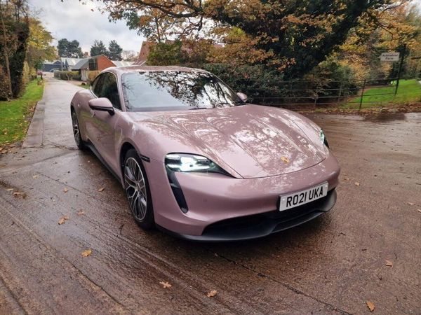 Electrically Folding Exterior Mirrors, LED Matrix Main Headlights in Glacier Ice Blue Including Porsche Dynamic Light System Plus, Frozen Berry, ParkAssist Including Surround View, Sport Chrono Package, Power Steering Plus, Porsche Electric Sport Sound, Seat Belts - Blackberry, Ioniser, 4+1 Seats System, 20in Alloy Wheels - Taycan Turbo Aero, 11kW AC On-Board Charger, 12v Electrical Socket in Rear Luggage Compartment, 12v Electrical Socket in the Centre Console Storage Compartment, 16.8in Curved Display, 19in Alloy Wheels - Taycan Aero, 2 USB-C Charge Ports in the Rear, 2 USB-C Connectivity and Charge Ports in the Centre Console Storage Compartment, 3-Point Automatic Seat Belts with Pre-Tensioners - Front and Outer Rear Seats and Front Force Limiter, 4-Point LED Daytime Running Lights, 50kW DC On-Board Charger for use of Public Charging Stations with a voltage of 400V, ABS - Anti-lock Brake System, Accent Package in Black, Active Bonnet System, Active Carbon Fine Dust Filter, Advanced 2-Zone Climate Control, Aluminium Double-Wishbone Front Axle, Aluminium Multi-Link Rear Axle, Auto-Deploying Door Handles, Automatic Headlight Activation including Welcome Home Lighting, Automatic Hold Function, Automatic Tailgate, B-Pillar Clothes Hook on Driver and Passengers Side, Brake Calipers - Black, Brake Pad Wear Indicator, Bumpers Comprising High-Strength Cross Members and Two Deformation Elements Each with One Threaded Fixture Point for Towing Eye Contained in On-Board Tool Kit, Cable between Charger and Vehicle - 7.5m, Centre Console with Direct Touch Control, Charge Port on Driver and Front Passenger Side, Collision and Brake Assist, Comfort Seats - Front with 8-way Electrical Adjustment of Seat Height - Seat and Backrest Angle and Fore-aft Position, Cruise Control including Adaptive Speed Limiter, Curtain Airbags Along Entire Roof Frame and Side Windows from the A-Pillar to the C-Pillar, DC Charging at Public Charging Stations with Voltage of 800V, Digital Radio, Door Sill Guards - Black, Driver Personalisation, Electric Parking Brake, Electric Windows - Front and Rear, Electrically Adjustable and Heated Exterior Mirrors - Aspherical on Drivers Side, Engine Bonnet - Rear Tailgate - Doors - Side Panels - Roof and Front Wings in Aluminium, Engine Immobiliser with Remote Central Locking and Alarm System with Radar-Based Interior Surveillance, Exterior Mirror Lower Trims Including Mirror Base in Black, Floor Mats, Four-Piston Aluminium Monobloc Fixed Brake Calipers at Rear, Front Centre Console Armrest with Integrated Storage Compartment, Front Side Airbags, Full Size Airbags for Driver and Front Passenger, Full Surface Aerodynamic Underbody Panelling, Fully Galvanised Steel-Aluminium Hybrid Lightweight Bodyshell, Heat Pump, Heated Rear Window with Auto-Off Function, ISOFIX Mounting Points for Child Seats on Outer Rear Seats, Illuminated Vanity Mirrors for Driver and Front Passenger, Integrated Front Headrests, Integrated Porsche 4D Chassis Control, Keyless Drive, Knee Airbags for Driver and Front Passenger, LED Headlights, LED Interior Lighting Concept, Lane Keeping Assist including Traffic Sign Recognition, Light Strip, Lower Valance in Black, Luggage Compartments at Front and Rear, Manual Adjustment of Seat Belt Height for Driver and Front Passenger Seats, Model Designation on Tailgate in Silver Colour, Multi-Collision Brake, Multi-Function Sports Steering Wheel in Leather, ParkAssist - Front and Rear with Visual and Audible Warning, Parking Pre-Climatisation, Performance Battery Plus, Porsche Active Aerodynamics with Active Air Intake Flaps and Adaptive Rear Spoiler, Porsche Communication Management PCM Includes Navigation Module Mobile Phone Preparation Audio Interface and Voice Control System, Porsche Connect with Apple Carplay, Porsche Intelligent Range Manager, Porsche Logo in Glass Look Integrated into Rear Light Strip, Porsche Stability Management - PSM Including ABS with Extended Brake Functions, Porsche Vehicle Tracking System Plus, Power Steering, Range Mode for the Activation of Efficiency-Orientated Settings, Rear Diffuser in Louvered Design in Black, Rear Seats with 2 Seats in Single-Seat Look - Fold out Armrest and Split Folding Backrests 60-40, Rollover Detection for Activation of Curtain Airbags and Seat Belt Pretensioners, Roof Lining in Fabric, Roof in Aluminium Contoured Design with Dynamic Recess Profile, Seat Belt Warning System for Driver - Front Passenger and Rear Seat System, Seats - Heated Front, Side Impact Protection Integrated into Doors, Side Window Trims - Black, Sideskirts in Black, Six-Piston Aluminium Monobloc Fixed Brake Calipers at Front, Sound Package Plus, Sport Mode for the Activation of Dynamic Performance Settings Including Launch Control, Steel Coil Spring Suspension with Porsche Active Suspension Management - PASM, Storage Compartment, Sun Visors for Driver and Front Passenger, Supply Cable for Domestic Electrical Socket, Supply Cable for Industrial Electrical Outlet - 230V-32A, Tailgate Button, Taycan Badge on the Centre Console, Thermally Insulated Glass All Round, Third Brake Light, Two Integrated Cupholders Front and Rear, Tyre Pressure Monitoring - TPM, Upper Valance with Vertical Air Intakes - Air Curtain, Wheel Centres with Monochrome Porsche Crest, Windscreen Wiper System Including Rain Sensor and Washer Jets