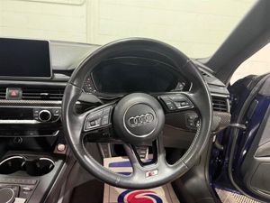 19in Alloy Wheels - 5-Spoke Cavo Design - Contrasting Grey - Partly Polished,2 x SDXC Card Readers,2 x USB Charging Ports and 1 x AUX-IN,4-Way Electric Lumbar Support,6-Airbag System,Aluminium-Effect Door Mirror Housings,Anti Theft Locking Wheel Bolts,Anti-Theft Alarm,Audi Connect Infotainment Services - 3 Month Trial,Audi Connect Safety and Service - e-call,Audi Drive Select,Audi Smartphone Interface,Audi Sound System,Auto-Dimming Rear-View Mirror,Bluetooth Interface,Brake Calipers Painted in Black with S5 Logo at the Front,CD Drive,Cloth Headlining in Black,Cruise Control with Speed Limiter,DAB Digital Radio Reception,Deluxe 3-Zone Electronic Climate Control,Door Handles - Chrome Inserts,Door Mirrors - Electrically Adjustable and Heated with Built-in LED Indicators,Driver Information System - 7in Colour Display,Driver and Front Passenger Airbag with Front Passenger Airbag Deactivation,ESC - Electronic Stabilisation Control inc ABS - ASR and EDL,Electric Boot Lid Release,Electric Windows - Front,Electrically Adjustable Front Seats,Electromechanical Parking Brake,Electromechanical Power Steering,Extended Interior Upholstery Pack,First Aid Kit and Warning Triangle,Fixed Rear Seat Bench with Storage Tray in Seat,Front Centre Armrest,Front and Rear Floor Mats,Gear-lever Knob in Black Leather,Gear-lever with Diamond S Badge,Headlight Washers,Heat-Insulating Glass - Side and Rear Windows,Heated Front Seats,High Gloss Package,High Multi-Function 3-Spoke Leather Steering Wheel,High-Beam Assist,ISOFIX Child Seat Mounting and Top Tether,Illuminated Door Sill Trims with S Logo,Inlays - Matt Brushed Aluminium,Key with S5 Logo,Keyless Go,LED Headlights with LED Rear Lights and Dynamic Rear Indicators,LED Interior Light Package,Leather Door Armrests and Knee Pad,Light and Rain Sensor,Luggage Compartment Mat,Lumbar Support - Pneumatically Adjustable with Massage Function,MMI Navigation Plus,MMI Radio Plus with 7in Colour MMI Screen,MMI Touch Control Panel,Model and Engine Technology Badges at Rear,Multi Collision Brake Assist,Non-Smoking Package,Parking System Plus,Pedals and Footrest - Stainless Steel,Pop-Up Bonnet for Pedestrian Protection,Pre-Sense City,Rear Grille - Black Grained,Rear Spoiler,Remote Central Locking,S Instrument Dials,S Model Enhanced Braking System,S Radiator Grille in Twilight Grey - Matt with Dual Struts in Aluminium,S Rear Diffuser in Twilight Grey - Matt with Diffuser Trim in Matt Aluminium and Honeycomb Grill in Black,S Specific Air Inlet Horizontal Inlay in Matt Aluminium,S Specific Air Inlets in Titan Black - Matt,S Specific Dual-Branch Chrome Tailpipes with Twin Oval Pipes Each on Left and Right,S Specific Front and Rear Bumpers,S Sport Suspension,S5 Badges on Grille - Front Wing Panels and Rear,Seat Belt Monitoring,Space Saver Spare Wheel,Sun Visors including Vanity Mirrors,Tool Kit and Car Jack,Tyre Pressure Warning Light,Variable Restraint System,Voice Control System,Windscreen with Acoustic Glazing,Privacy Glass,Audi Virtual Cockpit,Comfort and Sound Package,Electrically Adjustable Front Seats with Memory Function for Drivers Side,Inlays - Carbon Atlas