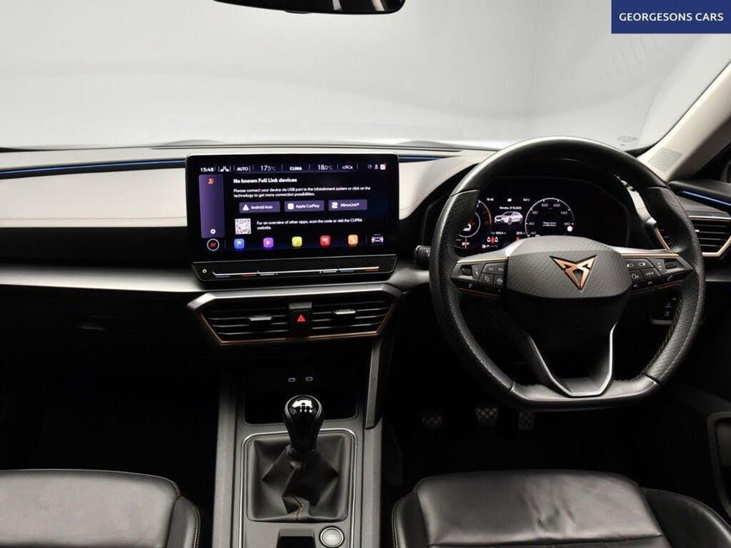 The Cupra Formentor 1.5 TSI V2 combines a responsive 1.5-litre turbo petrol engine with 150hp, delivering 0-62mph in 8.9 seconds and up to 44.8mpg in this front-wheel-drive setup with a precise 6-speed manual transmission. The V2 trim offers a refined blend of sporty style and practicality with 18-inch alloy wheels and a dynamic interior for engaging SUV driving. With one owner and five services, this Formentor is in excellent condition. Ambient lighting creates a sophisticated interior atmosphere, while integrated satellite navigation, Apple CarPlay, Bluetooth, and DAB radio ensure seamless connectivity on every journey. Parking is a breeze thanks to the reverse camera, parking sensors, and park assist, providing comprehensive visibility and confidence in tight spaces. Stay comfortable with dual-zone climate control, offering personalized cooling year-round. Heated seats provide warmth for cooler days, while adaptive cruise control with speed limiter and lane assist enhance safety and relaxation on highways. Paddle shift gears and selectable drive modes provide precise control and tailored performance, whether for efficiency or dynamic driving. Start-stop technology improves fuel economy in traffic. The spacious five-door SUV design includes a 450-litre boot for practicality Georgesons Cars, one of the leading used car dealerships near me, has been serving Liverpool and the wider Merseyside area since 1955. As a third-generation family-run business, we offer a wide variety of cars for sale, including over 300 quality used cars in Liverpool. Whether you're searching for cars for sale in Liverpool or reliable auto used cars, our inventory is price-checked daily, ensuring competitive pricing. Rated 5-stars on TrustPilot, Georgesons Cars proudly upholds the AA dealer promise and Chartered Trading Standards approval. Contact us today to explore our full range of cars for sale and let our team help you find your next car!