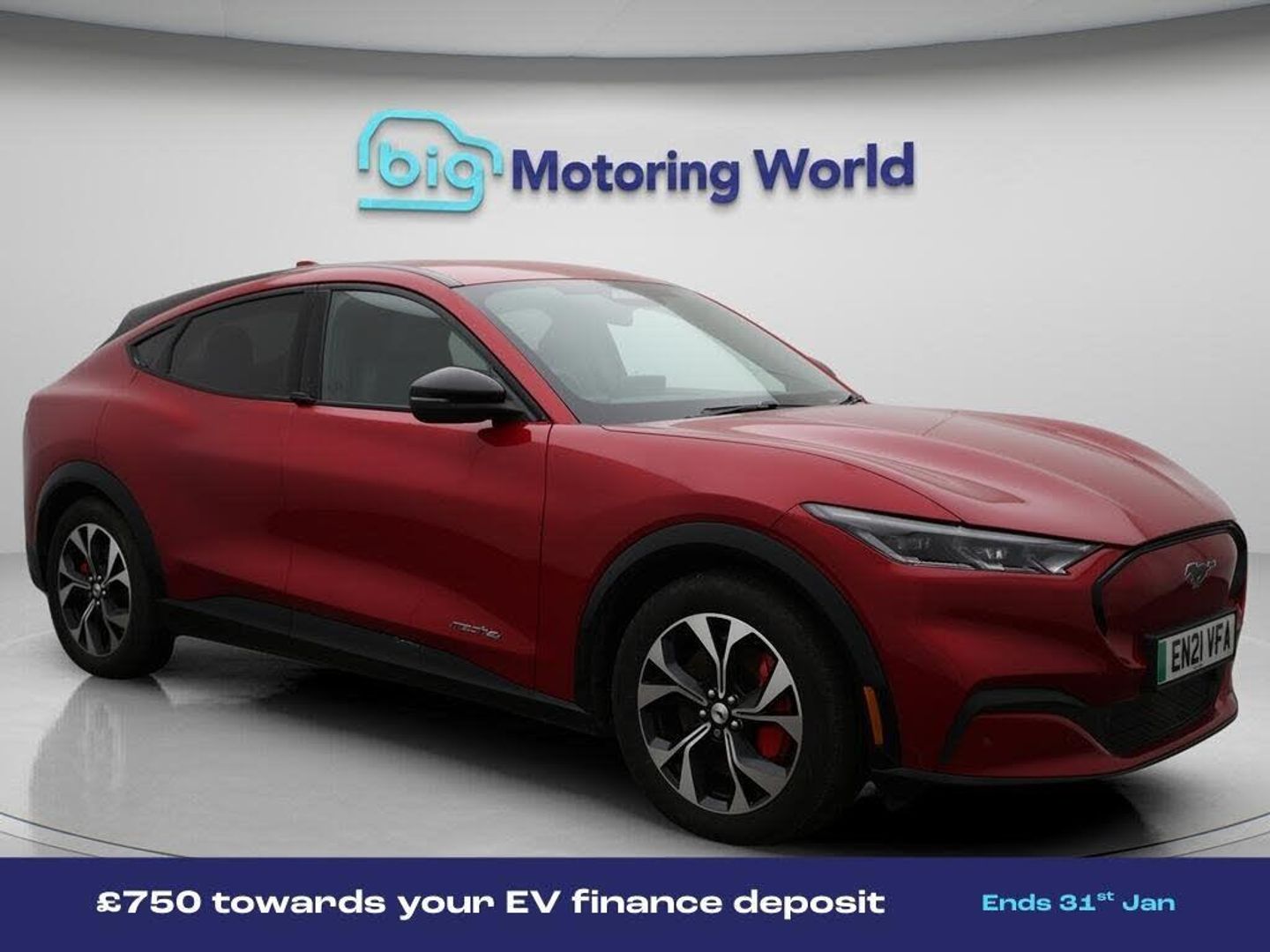 £750 towards your finance depo-Our Ford Mustang Mach-E comes with optional extras worth £1,150. Specification includes a range of fantastic features including £750 towards your finance deposit, All Wheel Drive, 19'' Alloy wheels, Leather Seats, Apple CarPlay, Adaptive Cruise Control, Android Auto, Satellite Navigation, Ford SYNC, Privacy Glass Specification information is supplied by CAPHPI and may vary to the actual car. This data does not form any part of a buying contact. Please check specification prior to purchase in-store. The MOT is valid until July 2026, visit bigmotoringworld.co.uk for more photos, a 360 tour, service history and a free HPI report.Were BIG on peace of mind and this Red Ford Mustang Mach-E has completed our comprehensive 200 point inspection and passed all checks. Its ready for you to drive away with immediate collection in-store. We include a 90-day warranty as standard plus an option to extend for up to 3 years.Reserve this car exclusively for you, safely and securely at bigmotoringworld.co.uk, with a fully refundable £99 deposit. Test drive before you buy, with no commitment, no hassle and a completely haggle free experience. Still searching and want to see thousands more cars? We are BIG on choice with over 8000 cars to choose from.Visit our award winning web site bigmotoringworld.co.uk.Were Big Motoring World and were BIG on what matters to you.