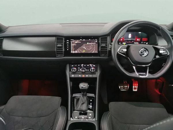 Experience the stylish black Skoda Kodiaq SportLine, designed for family adventures with seven seats. Enjoy the comfort of heated Alcantara seats, electric adjustable driver seat with memory, and keyless entry for added convenience. Navigate effortlessly with Skoda Columbus touchscreen navigation and stay connected via Apple CarPlay and SmartLink. LED headlights and a handy reversing camera enhance safety and visibility. Perfect for those seeking space, technology, and a touch of luxury in their next SUV. 3 services recorded, last serviced on 13/10/2025 at 26,068 miles. MOT to 15/10/2026. Visit our website for service history, online valuation, full vehicle specification plus multiple images. Any feature/option specified here is from 3rd party data. We cannot guarantee the accuracy of any specification supplied by a 3rd party. We recommend that you physically check the specification of the vehicle on site prior to purchase. This information does not form part of the buying contract. Terms & Conditions apply. We have over 2,000 cars available from our 10 national branches, check our website to see all our stock. Our Trustpilot rating is 4.4/5 with over 9,000 reviews.