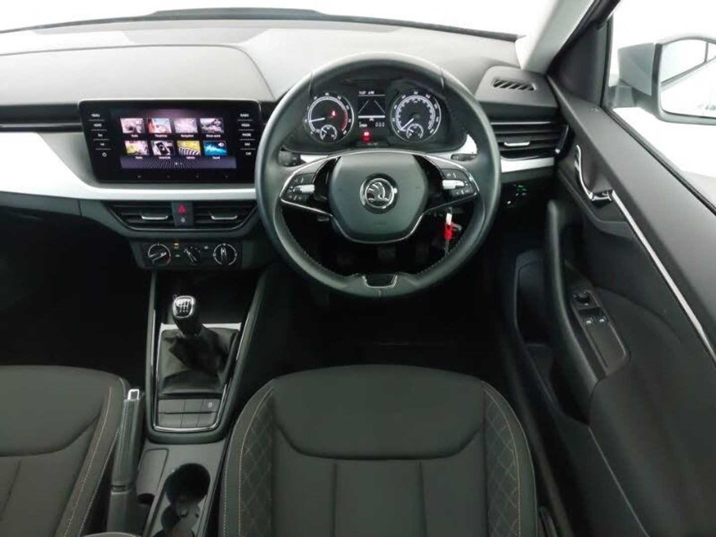 Amundsen satellite navigation with 9.2" touchscreen display, web radio and voice control, Front assist system, Speed limiter, Wireless SmartLink for apple car play, android auto and mirrorlink, DAB Digital radio, 8 Speakers, Basic LED headlights with LED daytime running lights, LED rear lights - low functionality, Light sensors, Privacy glass, ISOFIX on front passenger seat, Manual lumbar support for front seats, Hill hold control, Anti-theft alarm system with interior monitoring, backup horn, towing protection and remote central locking with SAFE system