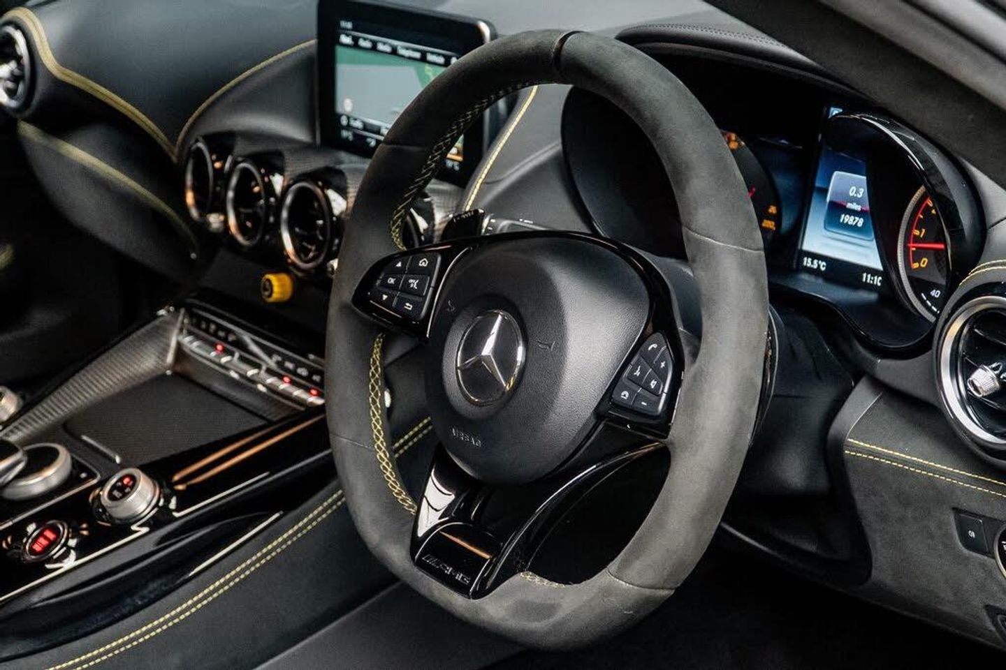 19in Front-20in Rear Alloy Wheels - AMG Forged 5-Twin-Spoke - Titanium Grey, 3-Stage Electronic Stability Programme - ESP, 4 Transmission Modes - C - Comfort - S - Sport - S Plus - Sport Plus - Race, ABS - Anti-Lock Braking System, AMG Carbon Fibre Roof, AMG Door Sill Panels in Brushed Stainless Steel with AMG Lettering, AMG Drive Unit, AMG Emblem Embossed in Front Centre Armrest, AMG Floor Mats with AMG Lettering, AMG High-Gloss Black Trim Package, AMG High-Performance Composite Braking System, AMG Instrument Cluster - Twin-Tube Look with TFT Multi-Function Colour Display - Red Colour Highlights and Speedometer Scaling In Orange, AMG Interior Night Package, AMG Performance Exhaust System - Switchable with Titanium Rear Silencers, AMG Performance Steering Wheel in Black DINAMICA Microfibre, AMG RIDE CONTROL Sports Suspension with Adaptive Adjustable Damping, AMG Rear Axle Limited-Slip Differential Lock - Electronically Controlled, AMG Rear Axle Steering, AMG Sports Bucket Seats with Integrated Head Restraints and Optimised Lateral Support, AMG Track Pace - Records Lap Times on the Racetrack, AMG Traction Control, ASR - Acceleration Skid Control, ATTENTION Assist, Active Aerodynamics, Active Air Control System, Active Brake ASSIST, Adaptive Brake Assist with Hold Function - Hill-Start Assist - Priming and Dry Braking in the Wet, Adaptive Brake Lights, Airbags - Driver and Front Passenger, Anti-Theft Protection Package, Armrest for Driver and Front Passenger, Automatic Child Seat Recognition Sensor, Bluetooth Interface for Hands-Free Telephone, Brake Calipers - Yellow with AMG Lettering, Braking - BAS-Brake Assist with Brake Servo Assistance when Emergency Braking is Detected, COMAND Online System with Media Interface, Cruise Control with SPEEDTRONIC Variable Speed Limiter, DAB Digital Radio Tuner, Dividing Net for Luggage Compartment Partition and Occupant Protection, Double Cup Holder in Centre Console, Electric Parking Brake with Automatic Release when Moving Off, Electric Windows - 2 - with One-Touch Control and Obstruction Sensor, First Aid Kit, Glove Compartment Illuminated and Lockable, Headlamp Assist - Automatic Headlamp Activation, Heated Rear Window with Timer Control, Interior Lighting, KEYLESS-GO Starting Function, Kneebag for Driver and Front Passenger, LED High Performance Headlamps with Adaptive Highbeam Assist, LED Indicators Integrated in Exterior Mirrors, LED Tail Lights, Mercedes Me Connect - Remote Online, Mercedes Me Connect - Standard Services, PARKTRONIC System, Power Assisted Steering, Premium Equipment Line, Rear Aerofoil - Static, Roof Lining - Black Fabric, Seat Belts - Black, Service Interval Indicator ASSYST, Sidebags for Driver and Front Passenger, Sports Tyres, Storage Compartment with Socket in Centre Console, Sun Visors with Vanity Mirror - Illuminated and Pivotable to the Side Window, THERMOTRONIC - Automatic Climate Control, TIREFIT with Tyre Inflation Compressor, Tinted Glass - Green, Trip Computer in Multi-Function Display Showing Current Fuel Consumption, Two USB Ports and an SD Card Slot in Centre Console, Tyre Pressure Monitoring System, V8 BITURBO Lettering on Front Wings, Warning Triangle, Windscreen Wipers with Rain Sensor, AMG Performance Seats, Burmester High-End Surround Sound System, 19''/20'' AMG Performance forged-alloy wheels (4) - 5-twin-spoke design, Seat Belts - Yellow, AMG Solarbeam, Exclusive Nappa Leather-DINAMICA - Black with Yellow Stitching, Driving Assistance Package, AMG Matt Black Carbon-Fibre Trim Package