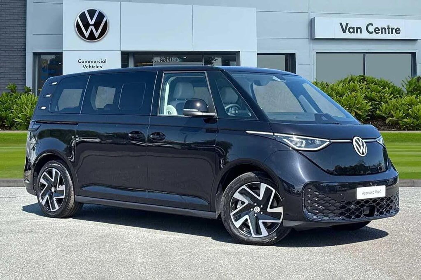 The Volkswagen ID. Buzz Style, finished in elegant Deep Black Pearl, is powered by an 86 kWh battery with an automatic transmission, it offers an impressive range of up to 280 miles*, costing around 10p per mile to run. With an 11 kW AC onboard charger and both Mode 2 and Mode 3 Type 2 charging cables included, recharging is convenient whether you're at home or on the move. *Range depicts brand new model. Current maximum range may differ in line with battery depreciation. Enhancing its sleek, modern exterior are the 20-inch 'Solna' bi-colour alloy wheels and gloss black heated, power-adjustable, and folding mirrors. The IQ.Light LED Matrix headlamps with automatic control ensure exceptional illumination, while the full 360° camera system, with cameras positioned on the front, rear, and both side mirrors, provides complete visibility for effortless manoeuvring and parking. Accessing the cabin is seamless thanks to power-latching sliding doors and a power-operated tailgate with easy open and close functionality. Inside, the clever Multiflex board allows the creation of a flat load surface when the rear seats are folded, adding to the vehicle's versatility. The seven-seat configuration makes the ID. Buzz ideal for both family adventures and executive travel, with flexible seating options to expand luggage space as needed. Heated front seats, a heated leather-wrapped multi-function steering wheel with touch controls, and adaptive cruise control with stop-and-go functionality ensure comfort and ease on every journey. The keyless start system and intuitively placed controls for windows, mirrors, and lighting enhance driver convenience. Technology takes centre stage with the Discover Pro navigation system, Harman Kardon sound system, DAB digital radio, and Volkswagen App Connect, offering wireless Apple CarPlay and Android Auto integration. A wireless charging pad and multiple USB-C ports, including one positioned ideally for a dash cam, ensure all devices stay powered. To make an enquiry about this vehicle call our friendly sales team today!