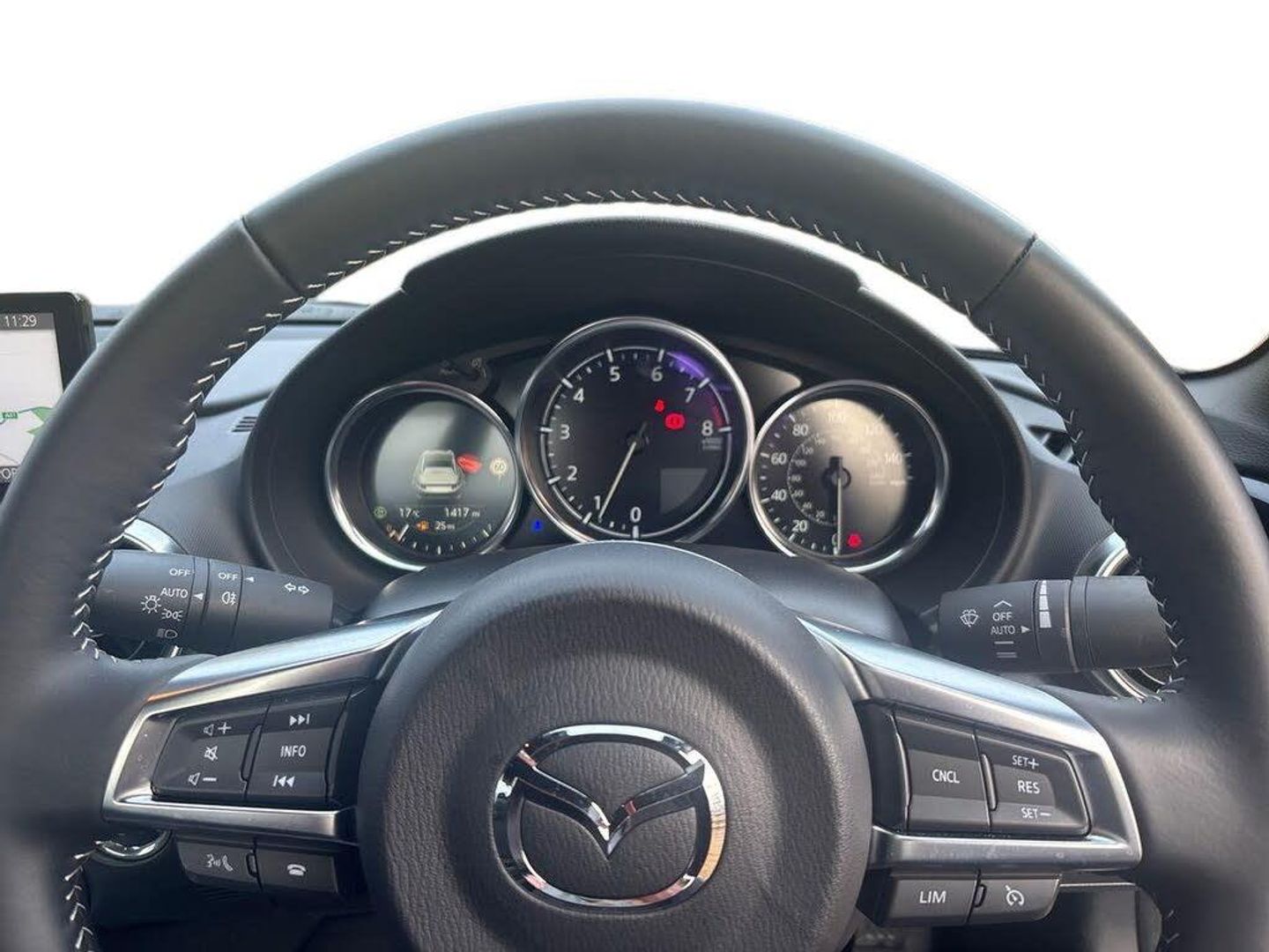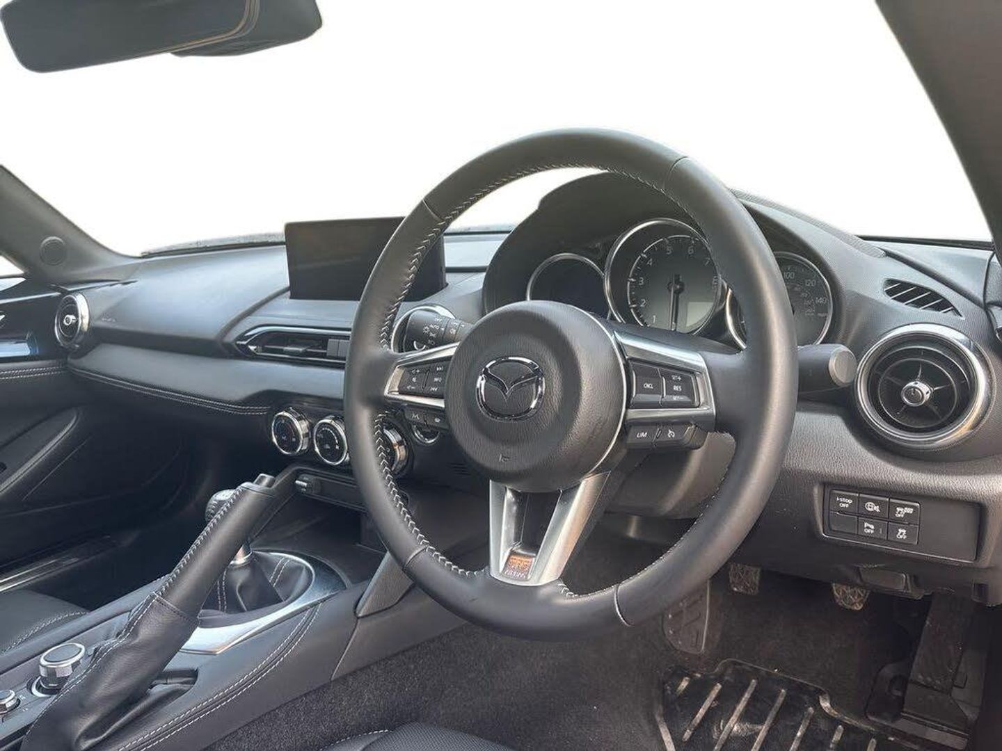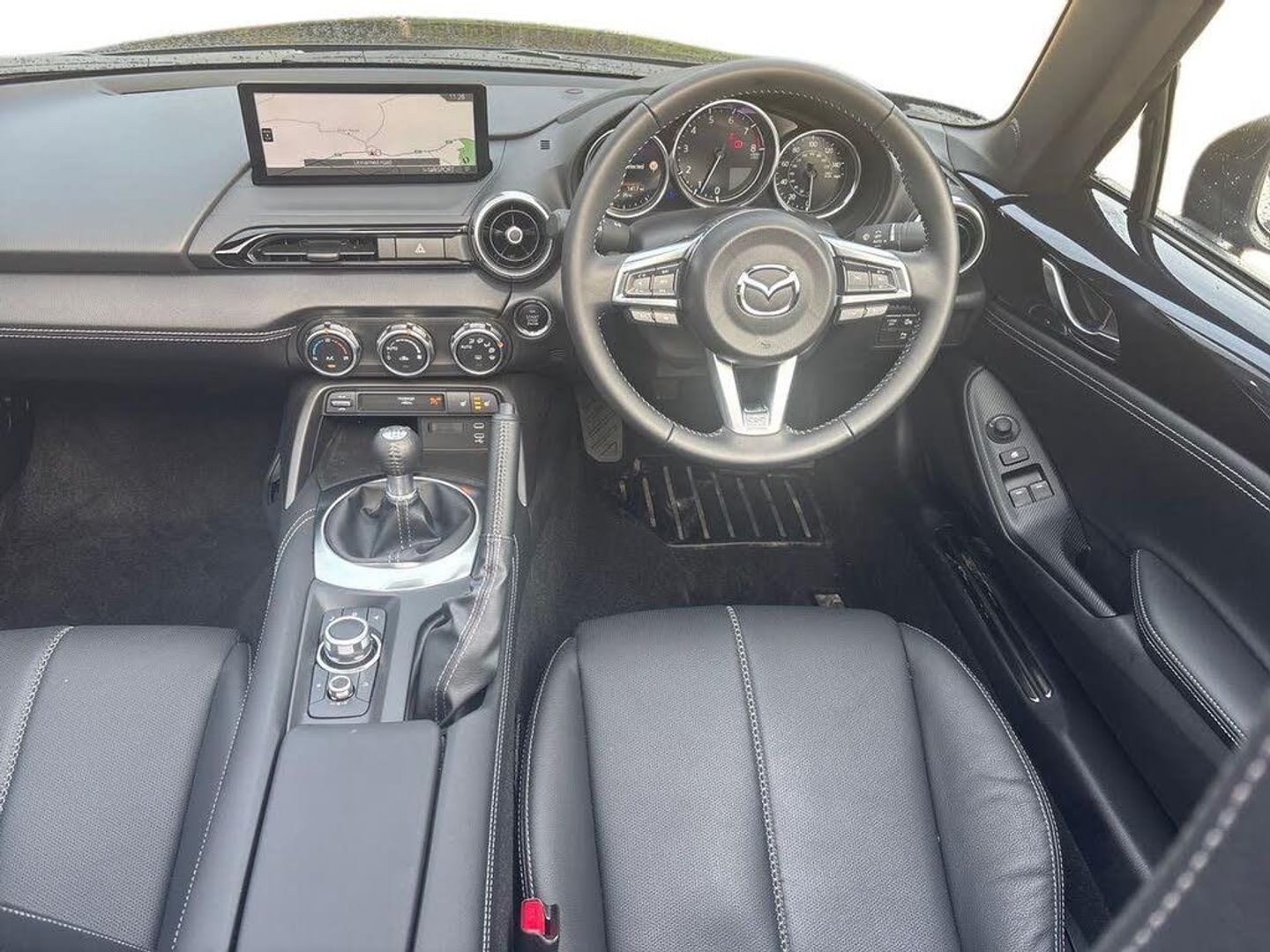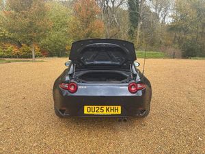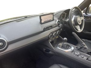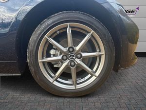 8.8" Colour centre touch screen display with Mazda Connect infotainment, Aha and stitcher app, Analogue speedometer, Apple car play/Android Auto, Cruise control with Intelligent speed assist, Driver alert system, eCall emergency call system, Emergency stop signalling system, Engine start/stop button, Hands free phone preparation, Integrated bluetooth with hands-free calling, bluetooth audio and easy access to phone contacts, Integrated navigation system, Kinematic posture control, Lane departure warning system, Lane keep assist, Multi dot display tachometer and electric odometer, PAS, Rear parking sensor, Service indicator, Traffic sign recognition, Trip computer, Water temperature gauge, I-ELOOP, i-stop, 2 x USB Type-C inputs, Multimedia Commander including separate volume dial, Premium Bose sound system with 9 speakers with 2 in each front headrest, AM/FM/DAB radio and MP3, Steering wheel mounted audio/bluetooth controls, Adaptive front lighting system, Automatic headlamp levelling, Black scuff plates with stainless steel insert, Body colour bumpers, Body colour co ordinated interior upper door trim, Body coloured electric/heated door mirrors, Coming/leaving home lighting function, Dual exhaust pipes, Dusk sensitive headlamps, Electric front windows/one touch facility, Exterior body colour co ordinated upper door panel trim with black vinyl and silver stitching, Frameless auto dimming rear view mirror, Front intermittent wipers, LED 3rd brake light, LED daytime running lights, LED headlights with automatic headlight levelling, LED indicator lights, LED rear lights, Manually operated black premium cloth soft top with heated rear glass window, Piano Black fashion bars, Rain sensing front wipers, Rear boot, 12V socket, Centre console storage box, Chrome Air conditioning dials, Climate control air conditioning, Coin Box, Driver and front passenger sunvisors with covered vanity mirror and driver ticket holder, Driver seat manual slide, recline and tilt adjustment, Front centre armrest, Front head restraints, Gear shift indicator, Heated front seats, in 3 heat levels, Interior courtesy light, ISOFIX front passenger seat child seat compliance, Leather gear knob, Leather handbrake lever, Leather steering wheel, Lockable rear centre box with lid, Passenger seat + manual slide/recline adjust, Perforated leather upholstery, Single front passenger seat, Tilt/telescopic steering column, Two cupholders, Windblocker, 3 point ELR front seatbelts with pretensioners, ABS+Electronic Brake force Distribution, Deployable Hood System (DHS), Driver and passenger seatbelt reminder audible warning, Dynamic stability control with track mode, Front dual stage driver and single stage front passenger airbags, Front smart city brake support with autonomous emergency braking (SCBS), Hill hold assist, Passenger airbag deactivate switch, Side airbags, Smart city brake support - Rear (SCBS-R), Traction control, Tyre pressure monitor, Remote central locking with deadlocking and remote boot release, Smart keyless entry, Superlocking, Thatcham category 1 alarm + immobiliser, Centre Console - Vinyl leather, Chrome air vent surrounds, Dashboard panel - Black Vinyl, 16" Bright Silver alloy wheels, Tyre puncture repair kit