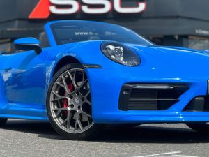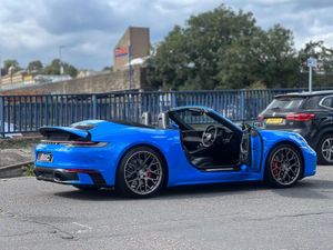 Stunning 911 992 Carrera 4S Cabriolet PDK Finished In Shark Blue With Black Leather. Fantastic Spec Inc: SportDesign Pack, SportDesign Side Skirts, Sports Exhaust System, BOSE Surround Sound, Sport Chrono Pack, Exclusive Design Taillights, Model Designation Painted In Black High Gloss, Power Steering Plus, Porsche Crest On Headrests, 20/21'' RS Spyder Design Alloys, Interior Trim Pack With Decorative Stitching, Electric Folding Mirrors, Stitching Colour Selection, Electric Adaptive Sports Seats Plus, Shark Blue Seat Belts, Porsche Logo LED Door Courtesy Lights, Light Design Pack. This 911 Comes With Remainder Of Manufacturers Warranty. VAT QUALIFYING.